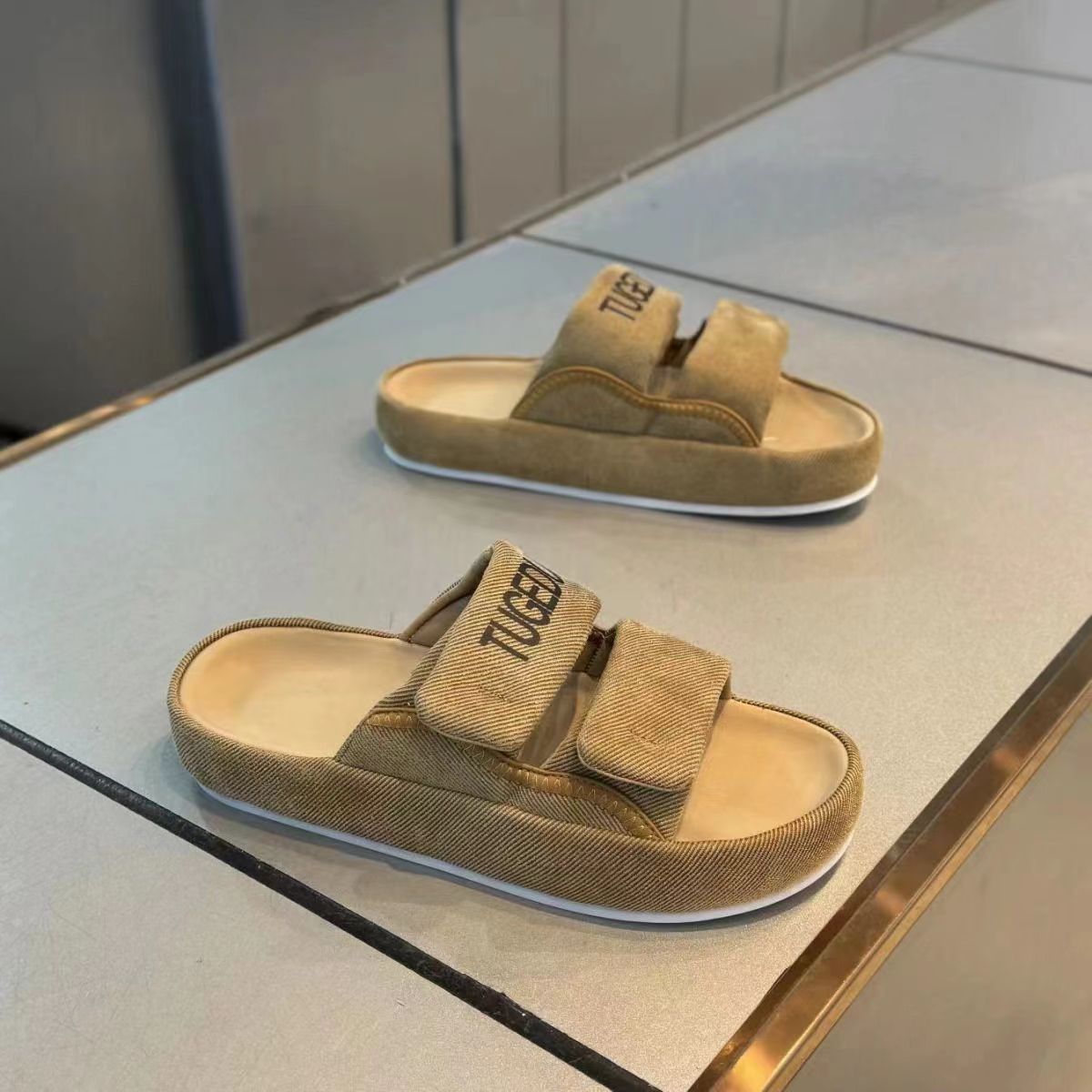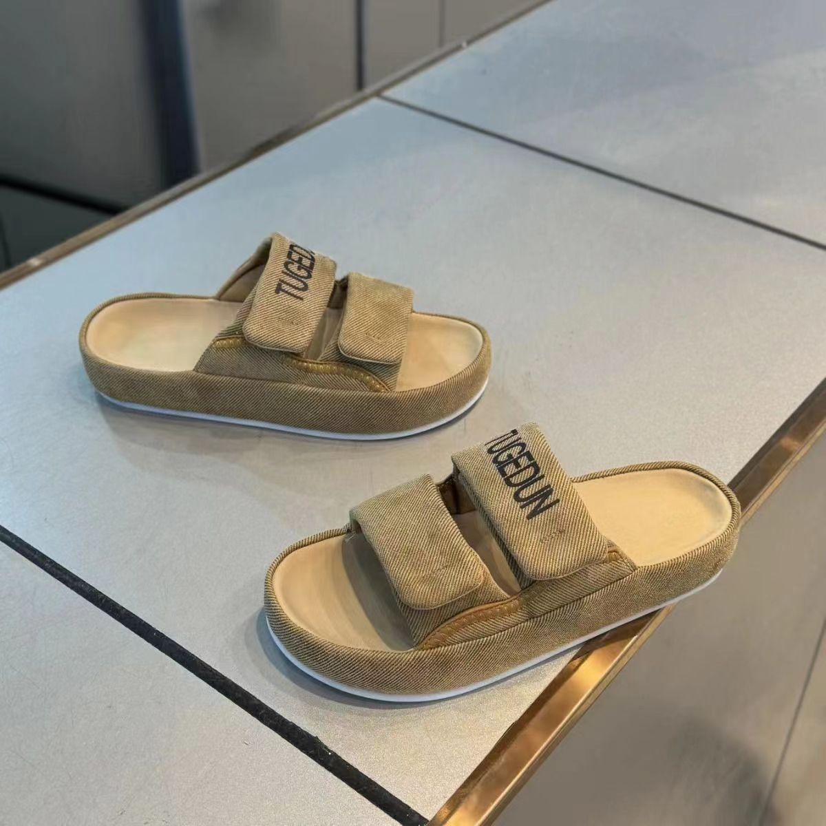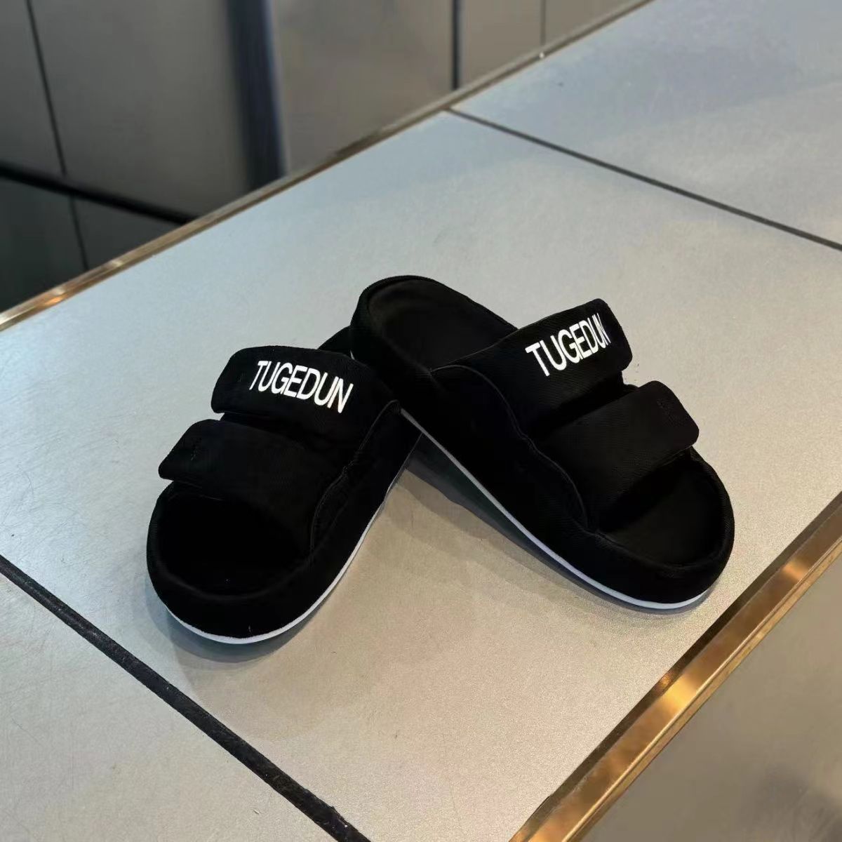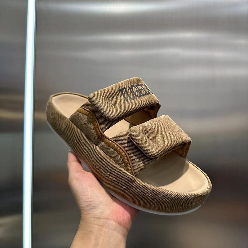 슬리퍼 고급 센스 아웃웨어 2024 여름 새 샌들 한국식 트렌디 밑창 증가 샌들 벨크로 슬라이드