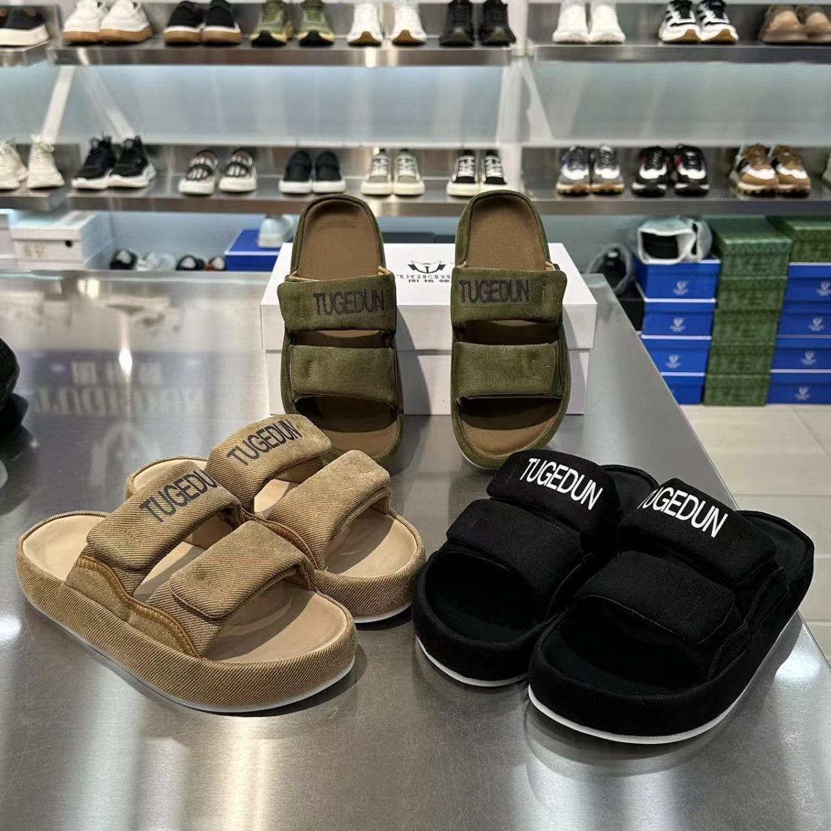 슬리퍼 고급 센스 아웃웨어 2024 여름 새 샌들 한국식 트렌디 밑창 증가 샌들 벨크로 슬라이드스토어 가기