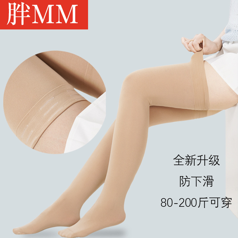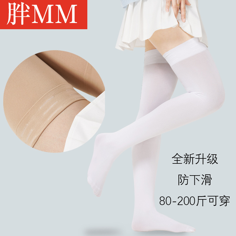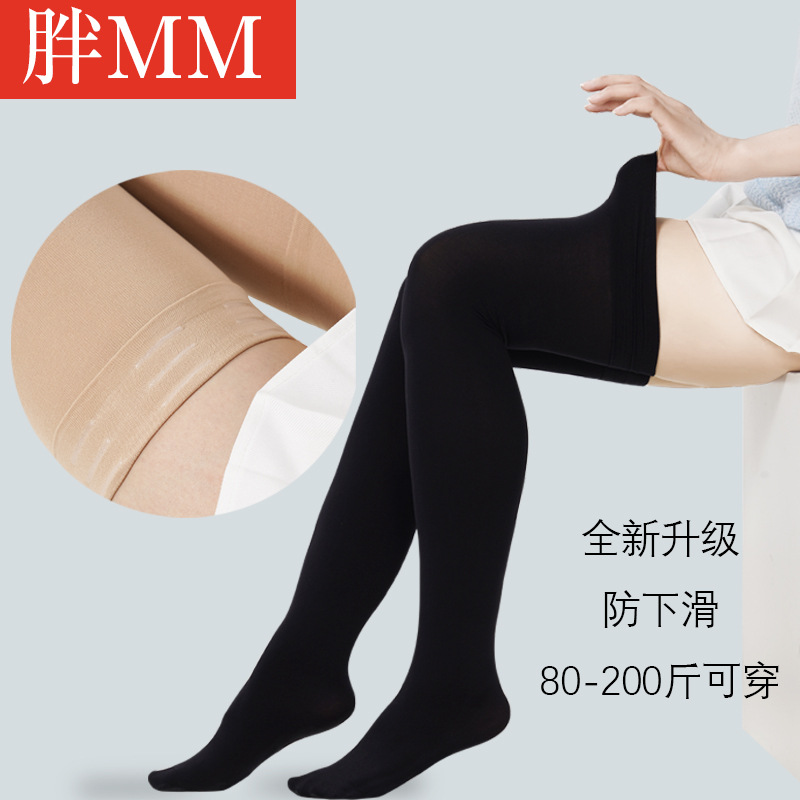업그레이드 된 실리콘 미끄럼 방지 플러스 사이즈 스타킹 여성용 얇은 블랙 고층 통통녀 에어컨 룸 양말 무릎 위 허벅지 양말스토어 가기