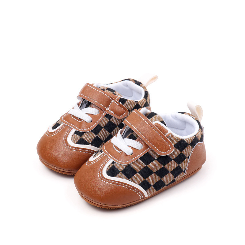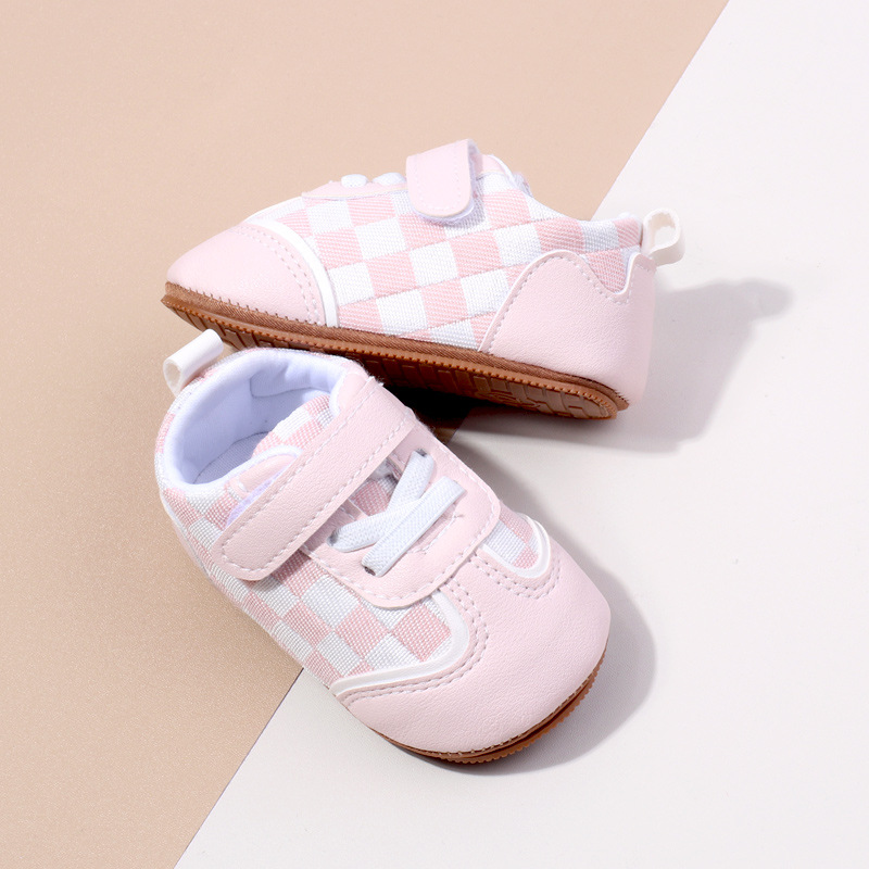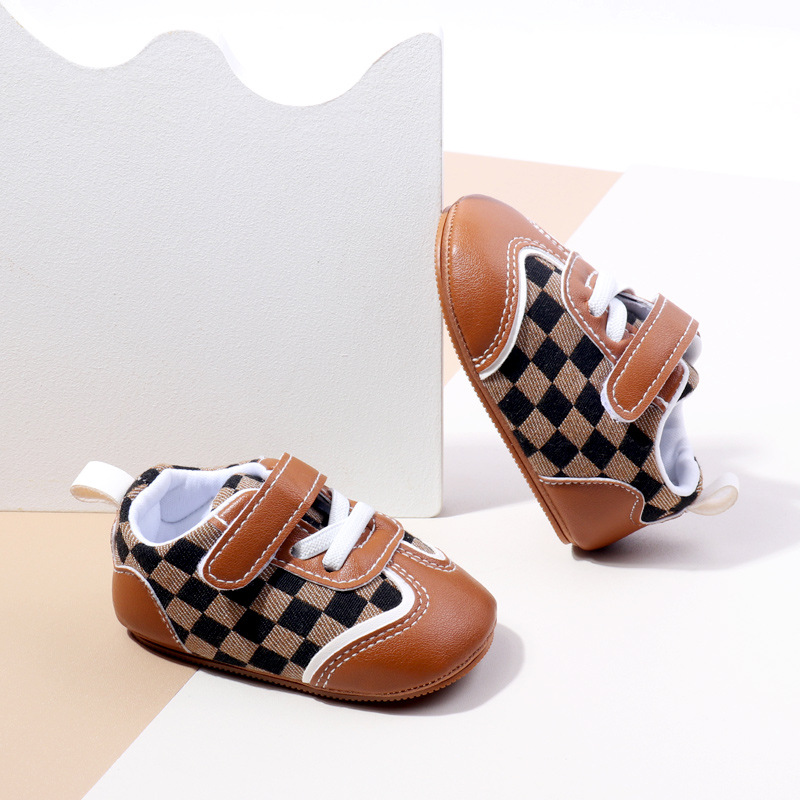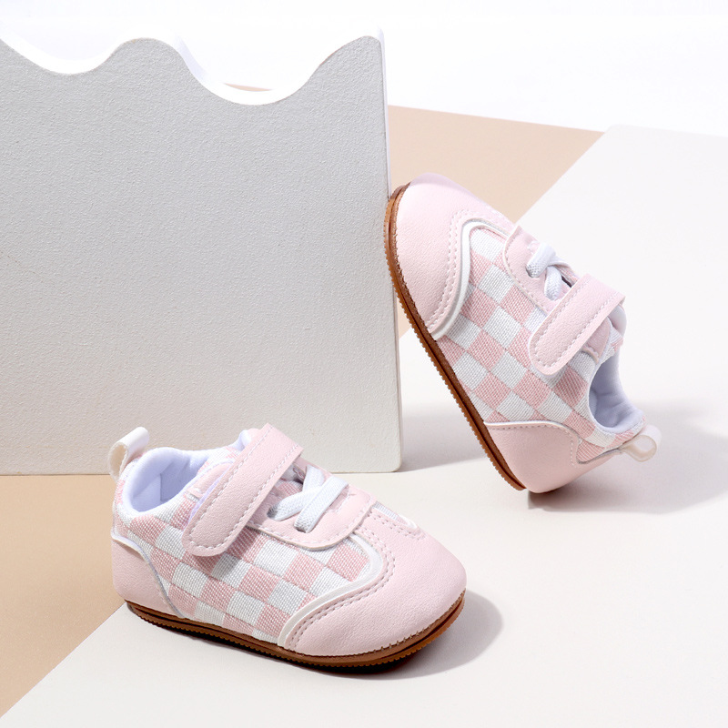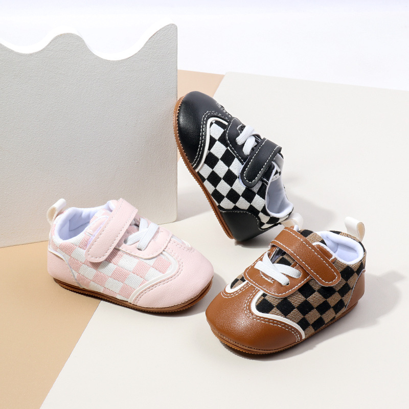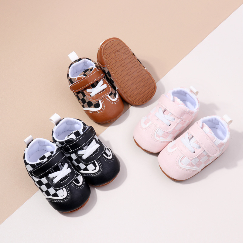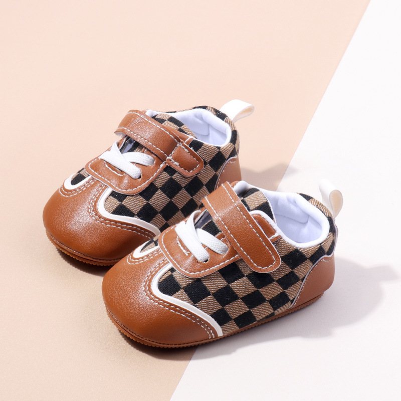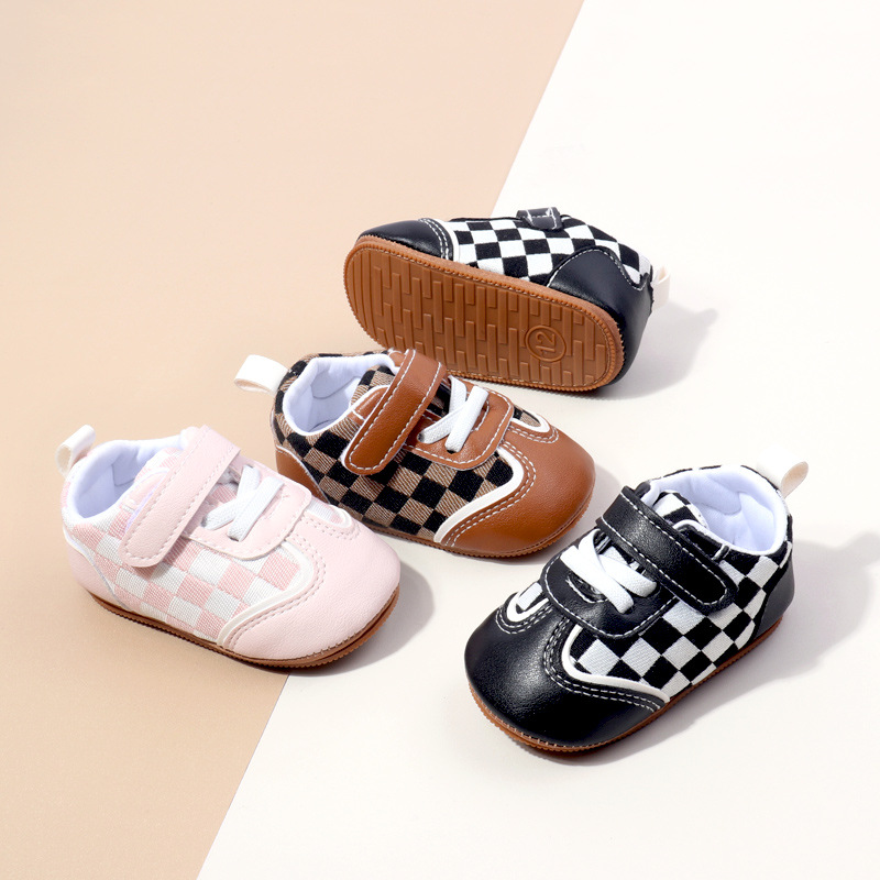 새로운 아기 캐주얼 신발 패션 트렌드 벨크로 격자 무늬 디자인 봄과 가을 통기성 소프트 단독 미끄럼 방지 유아 신발스토어 가기