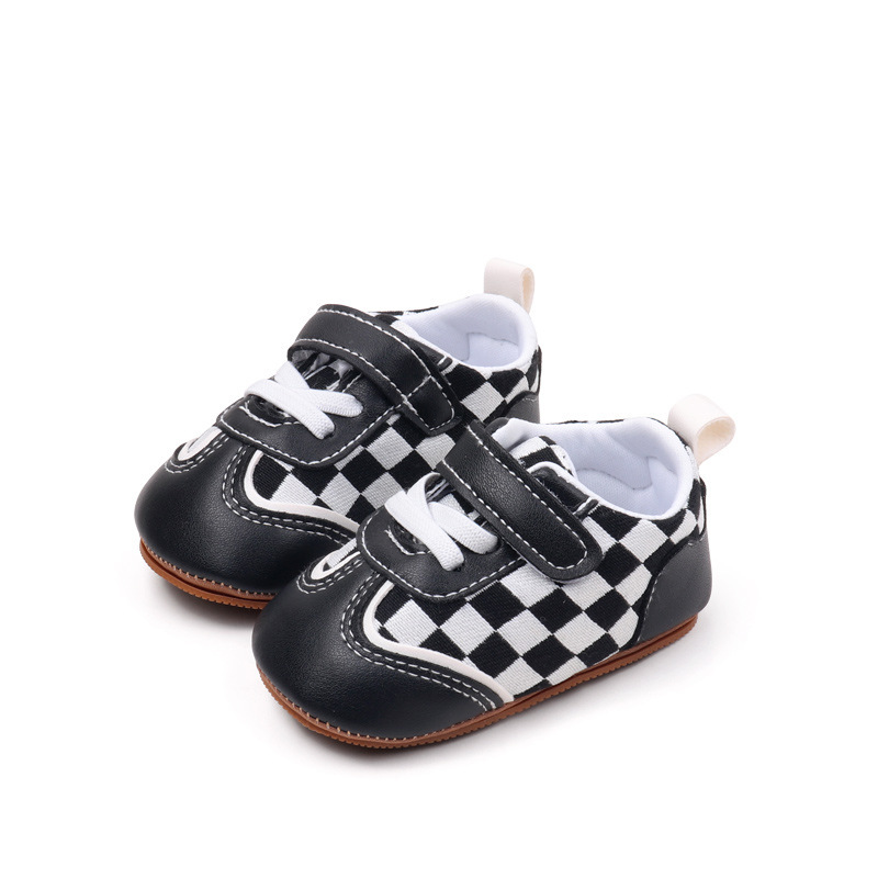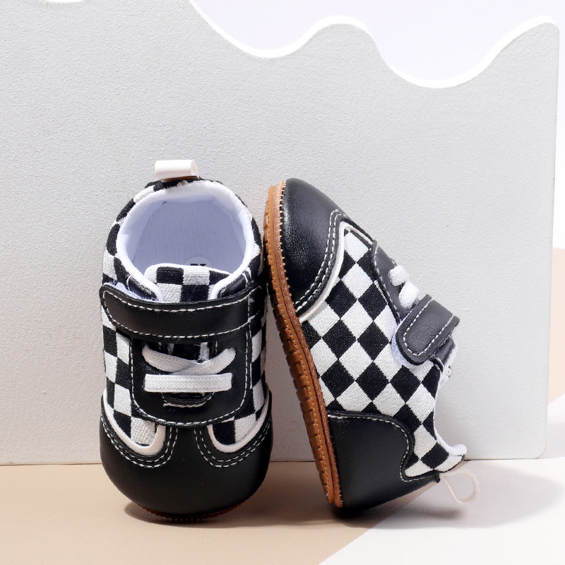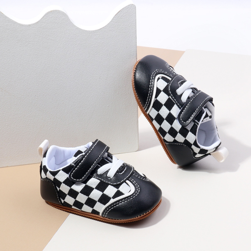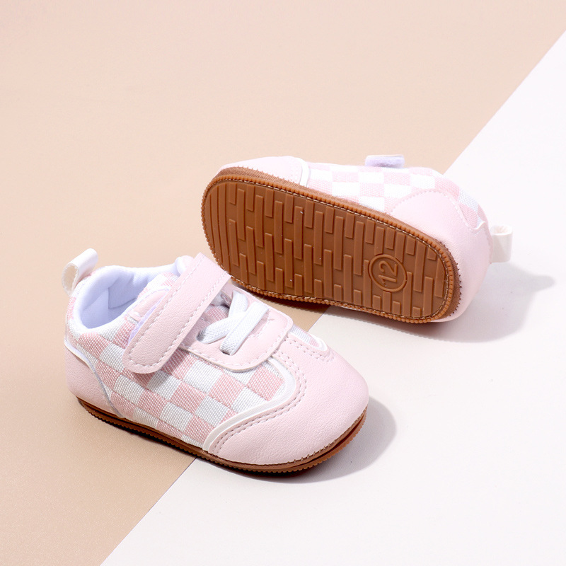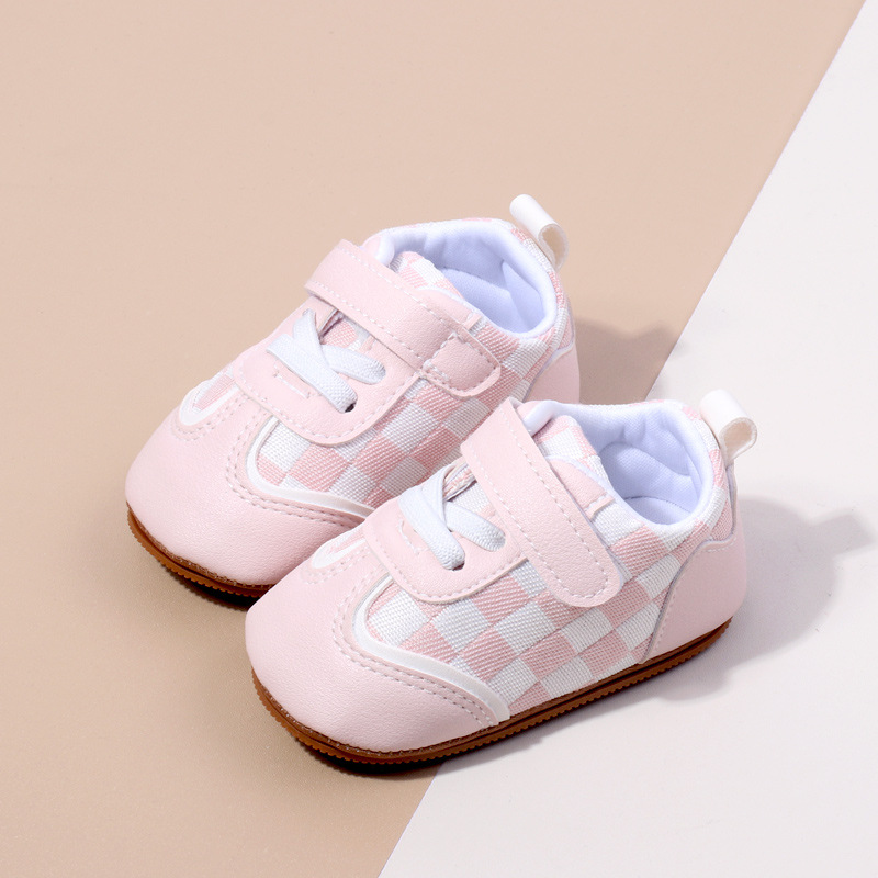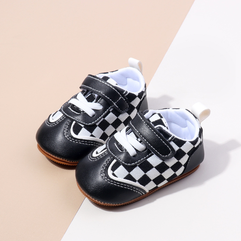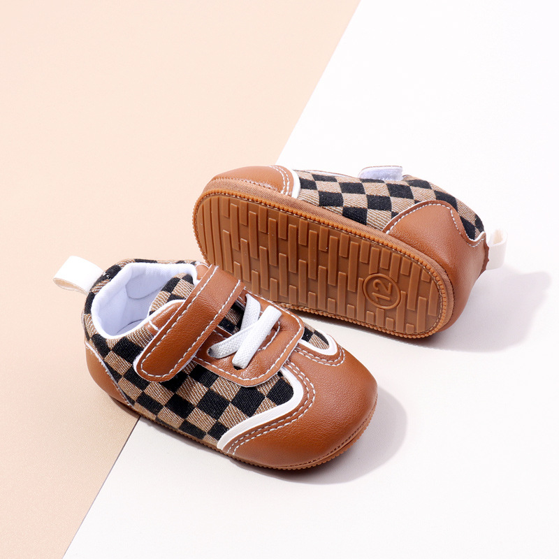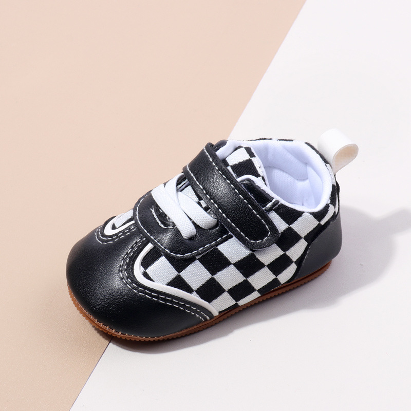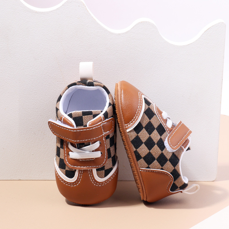 새로운 아기 캐주얼 신발 패션 트렌드 벨크로 격자 무늬 디자인 봄과 가을 통기성 소프트 단독 미끄럼 방지 유아 신발스토어 가기