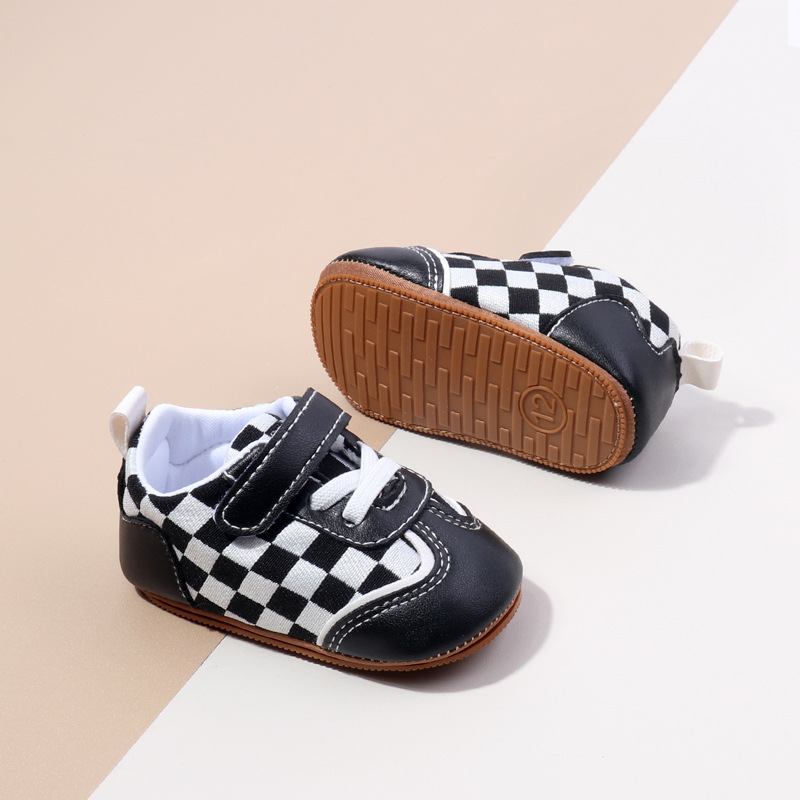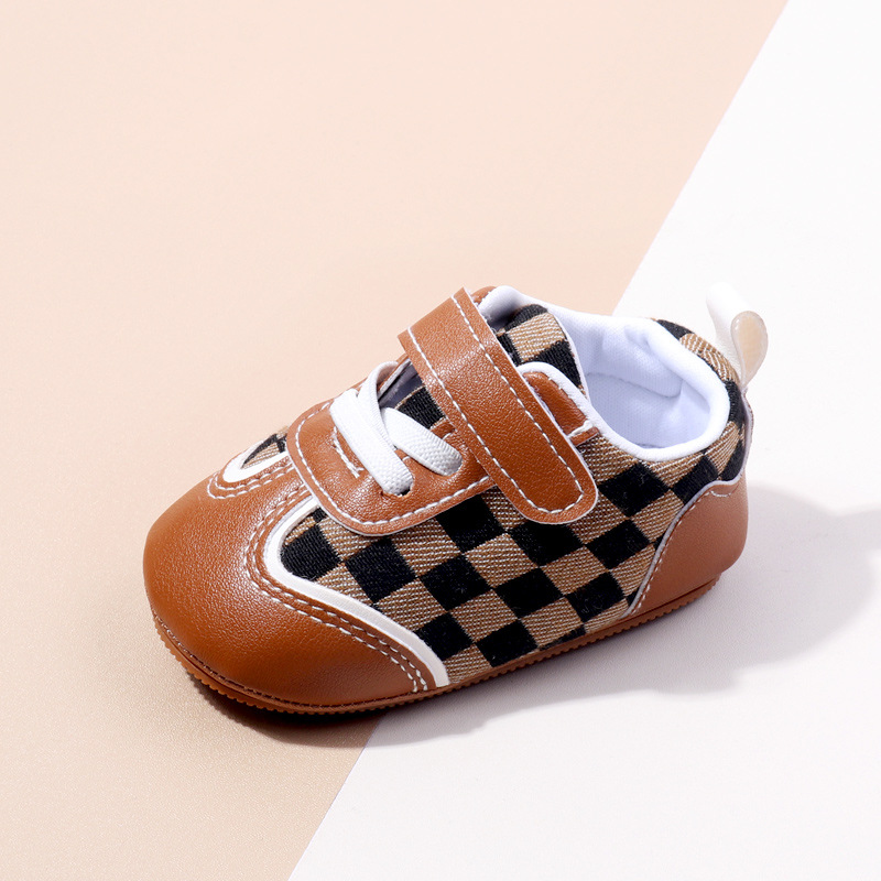새로운 아기 캐주얼 신발 패션 트렌드 벨크로 격자 무늬 디자인 봄과 가을 통기성 소프트 단독 미끄럼 방지 유아 신발