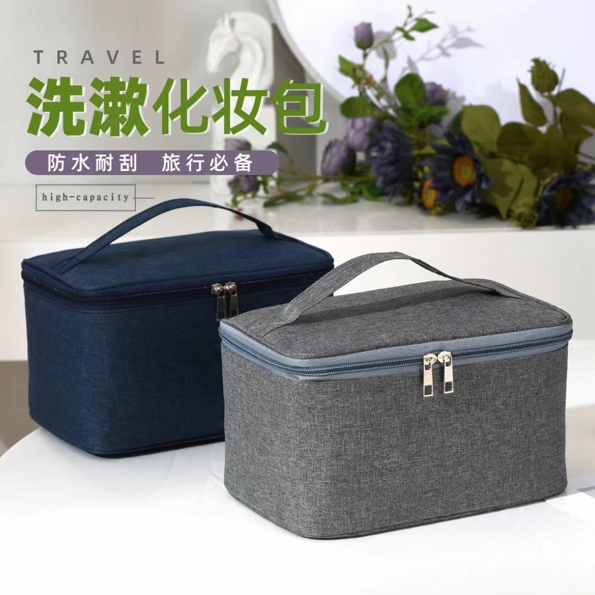 심플한 휴대용 대용량 세면도구/화장품 가방, 스킨케어 제품 수납 가방, 여행용 세트 수납 가방