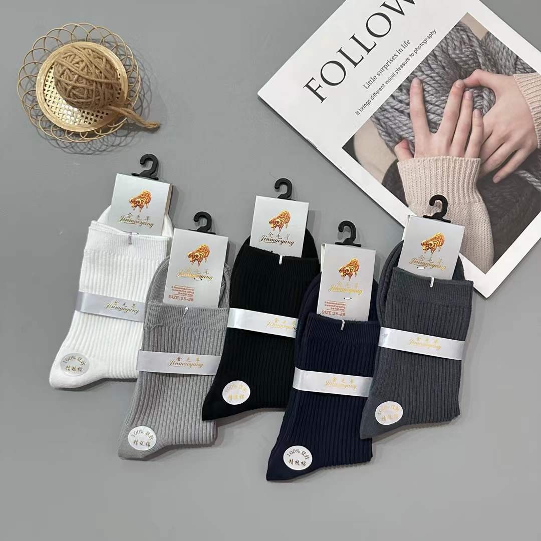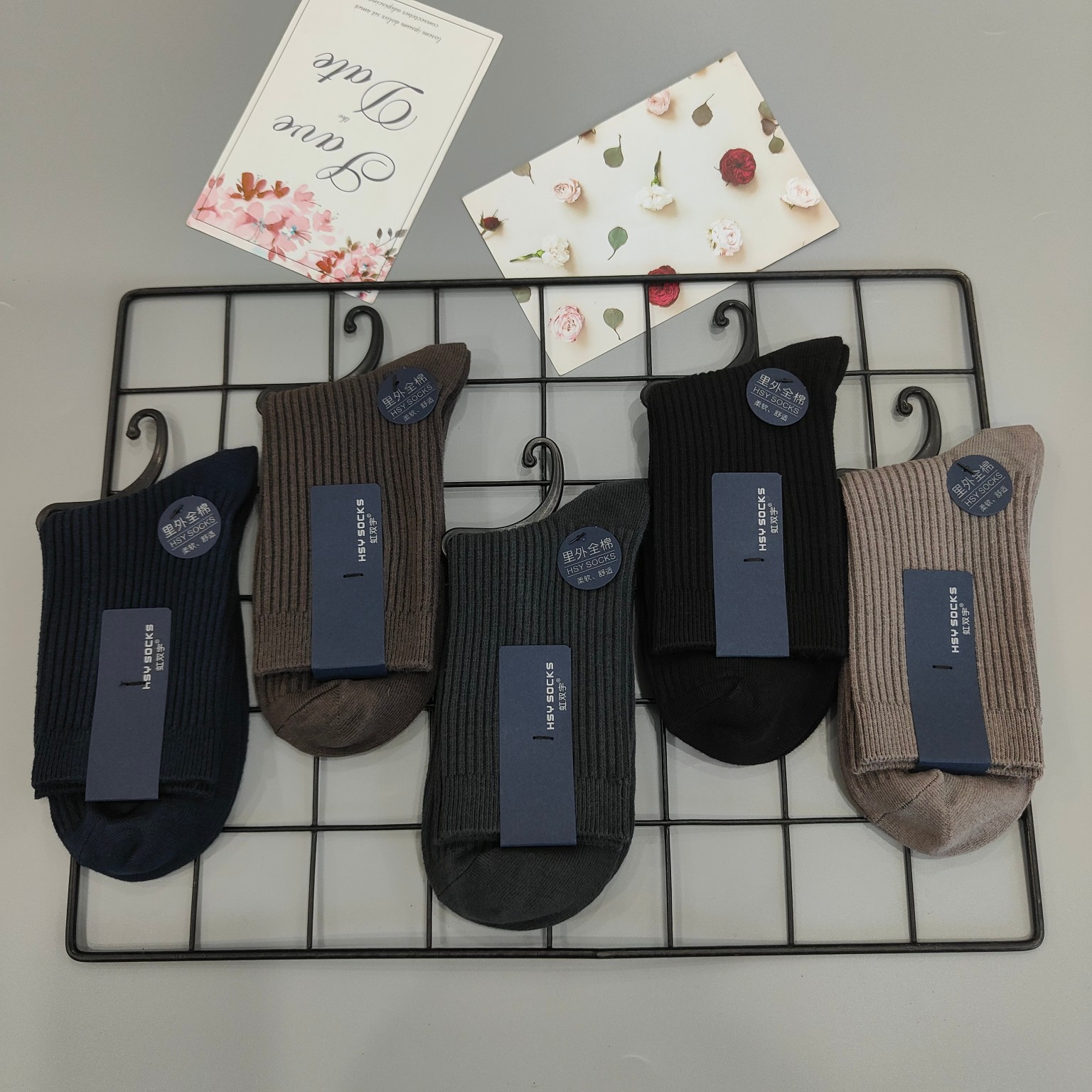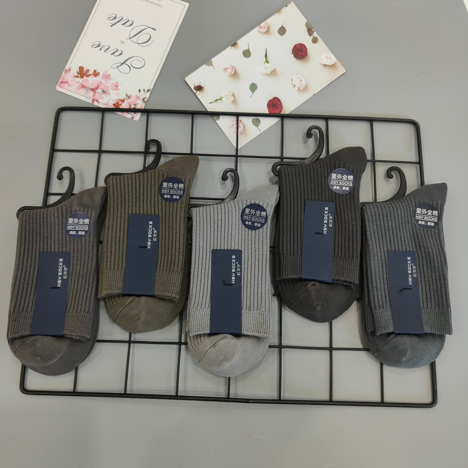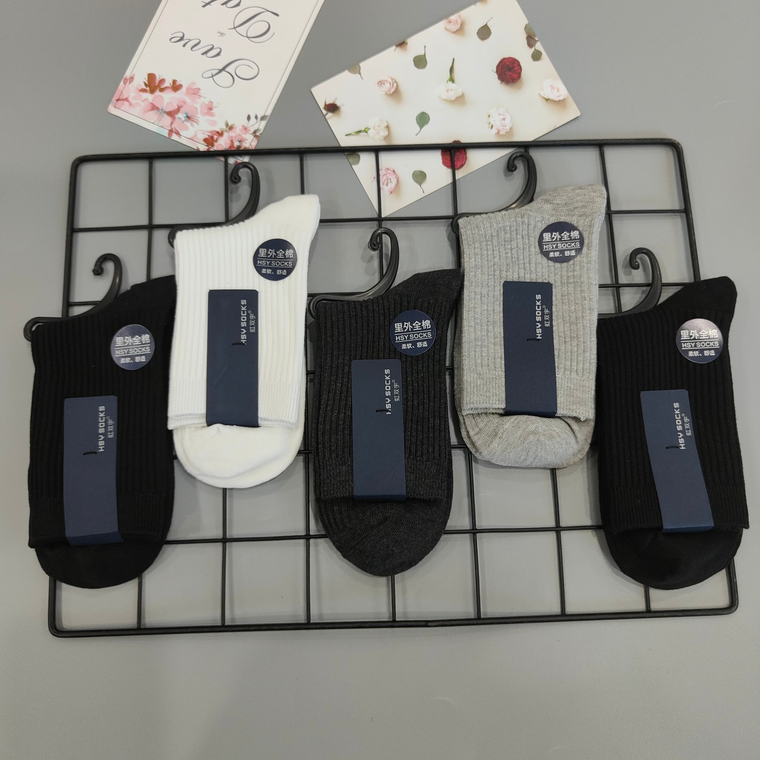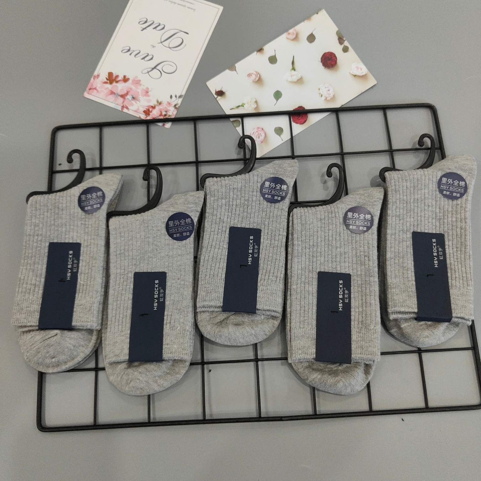 Hongshuangyu 양말 남성과 여성의 더블 바늘 중간 배럴 가을 및 겨울 캐주얼 단색 남성 중통 양말 더블 바늘 수직 스트립 비즈니스 면화 양말스토어 가기