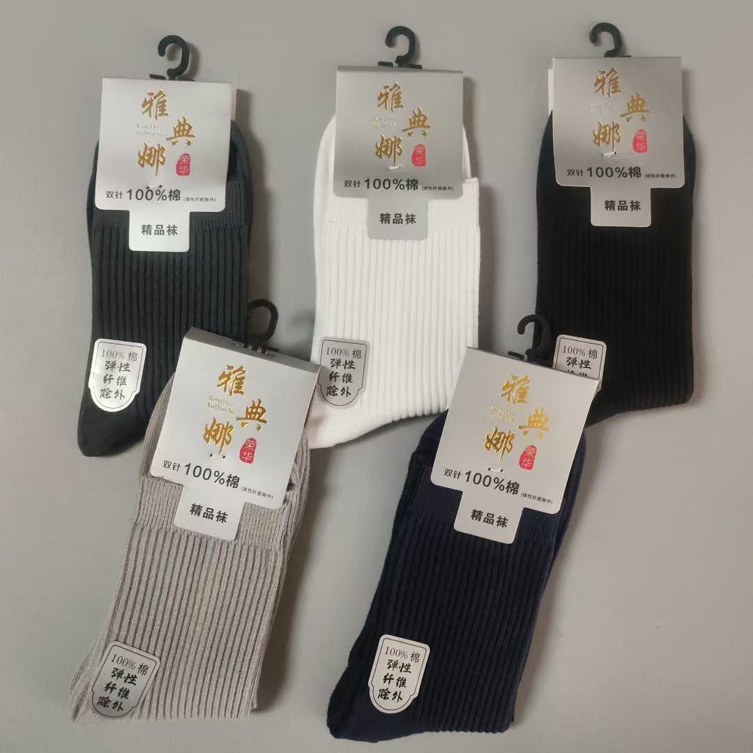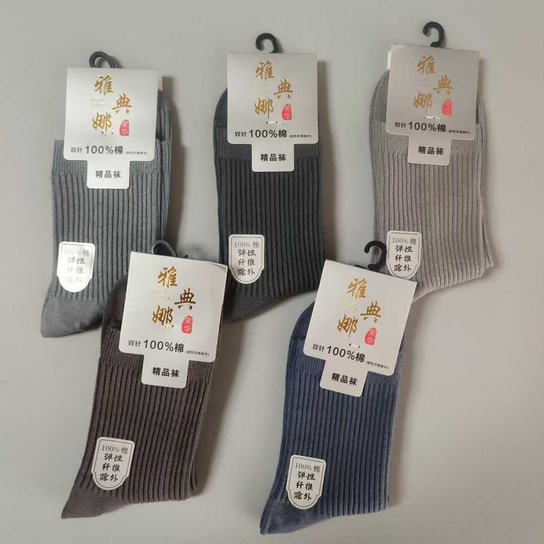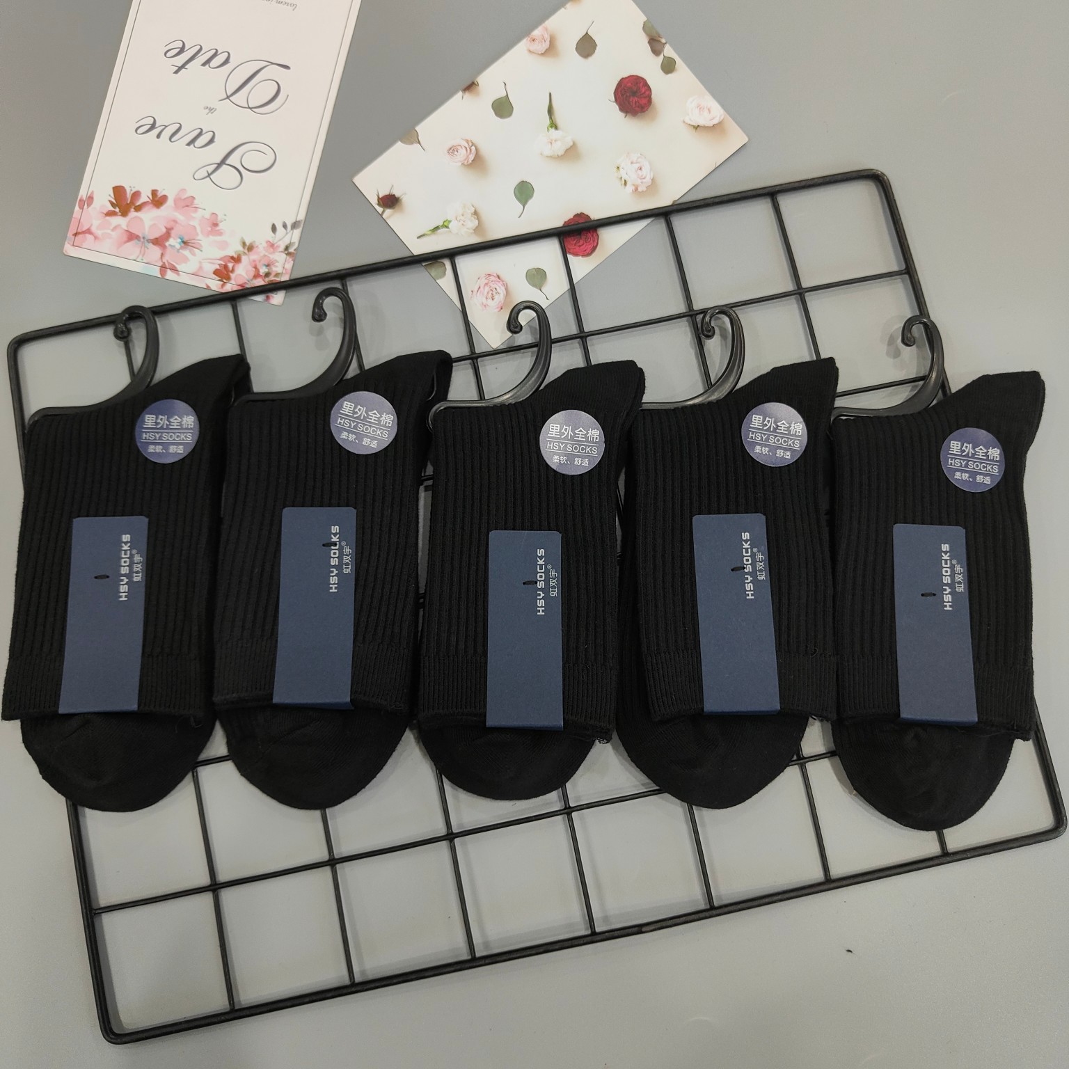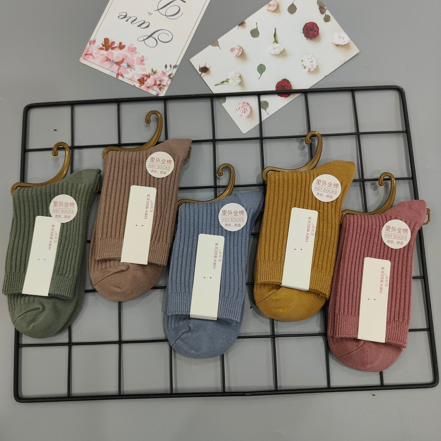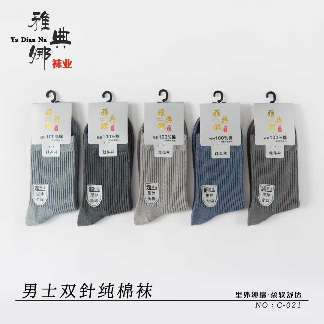 Hongshuangyu 양말 남성과 여성의 더블 바늘 중간 배럴 가을 및 겨울 캐주얼 단색 남성 중통 양말 더블 바늘 수직 스트립 비즈니스 면화 양말스토어 가기