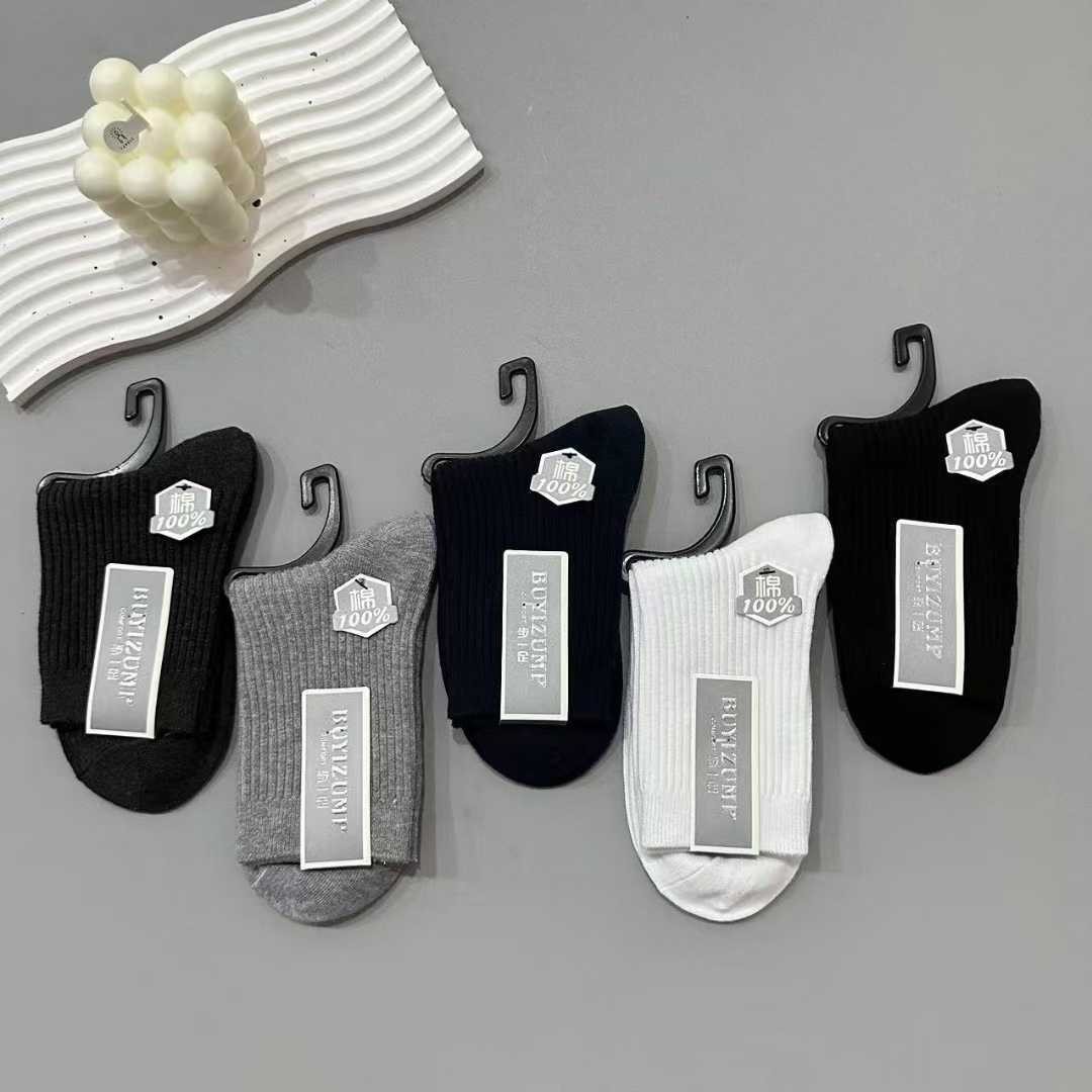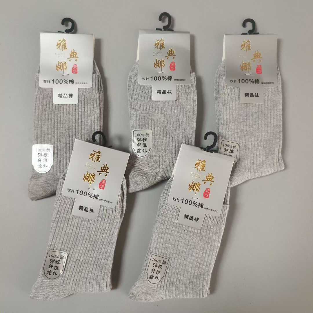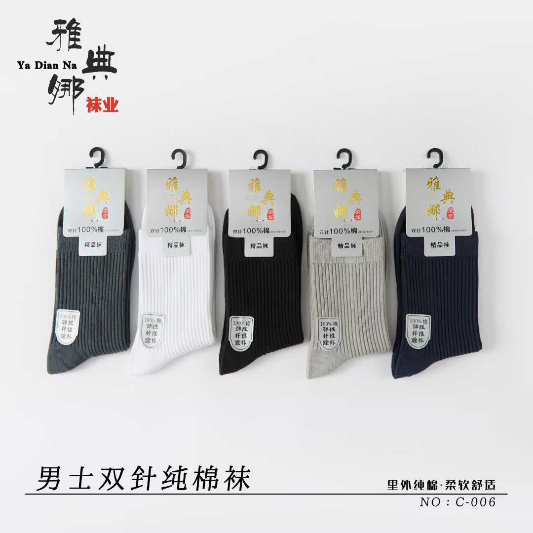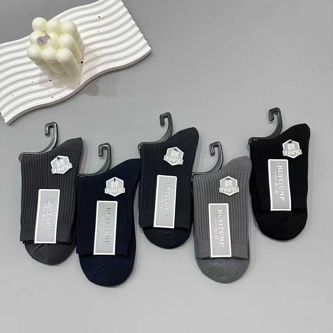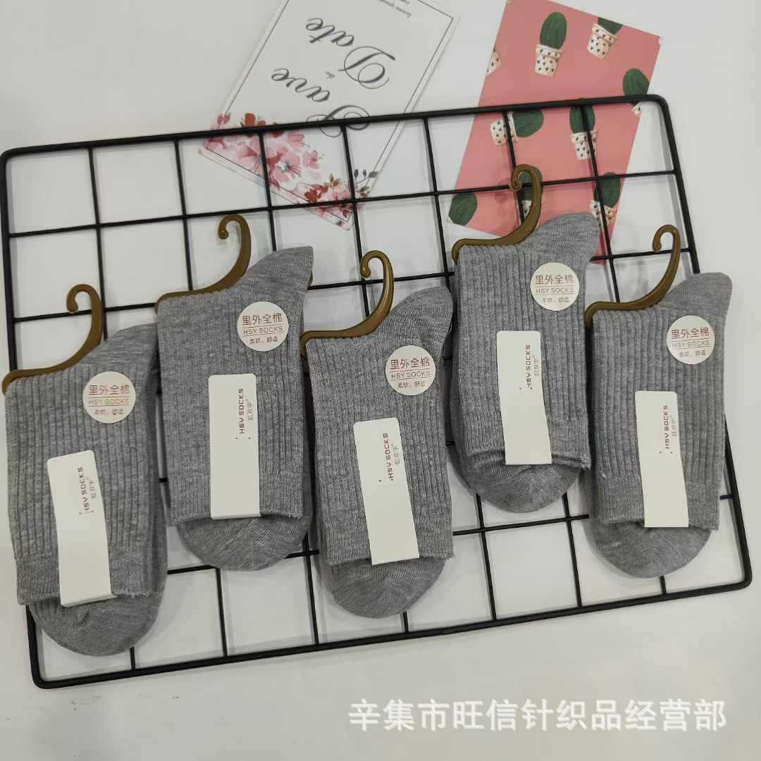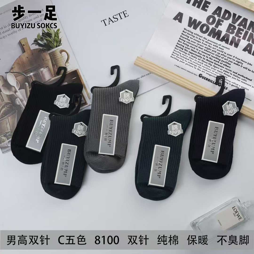 Hongshuangyu 양말 남성과 여성의 더블 바늘 중간 배럴 가을 및 겨울 캐주얼 단색 남성 중통 양말 더블 바늘 수직 스트립 비즈니스 면화 양말스토어 가기