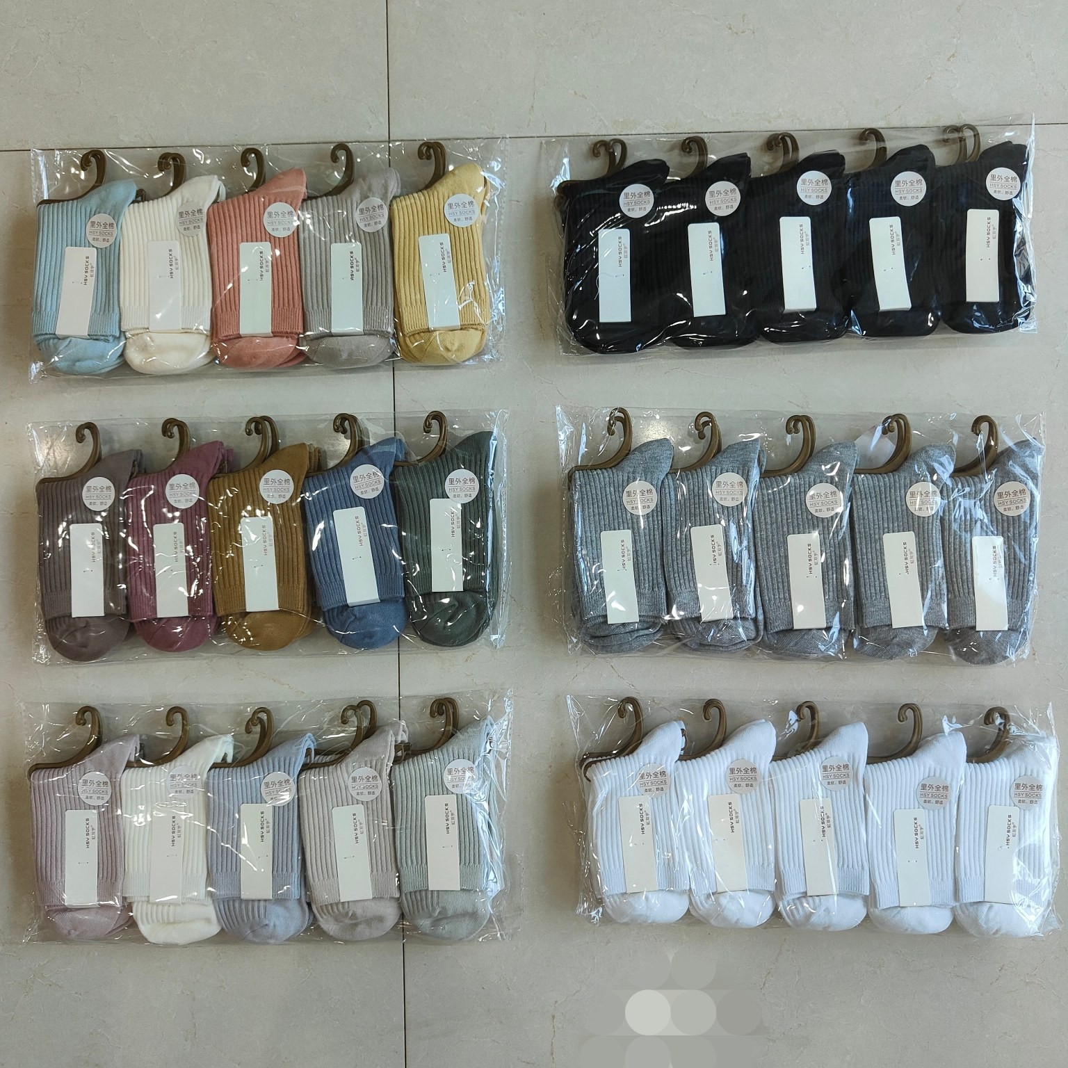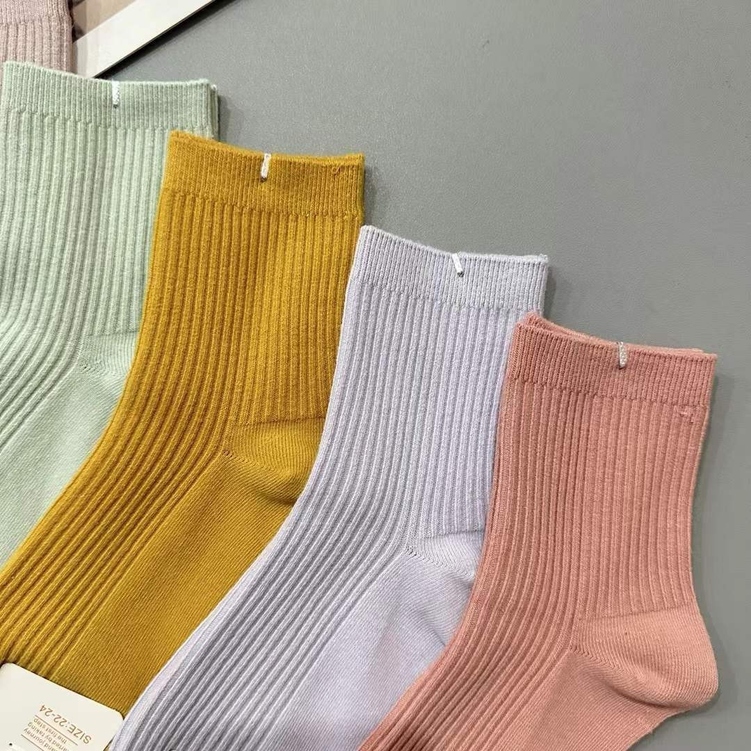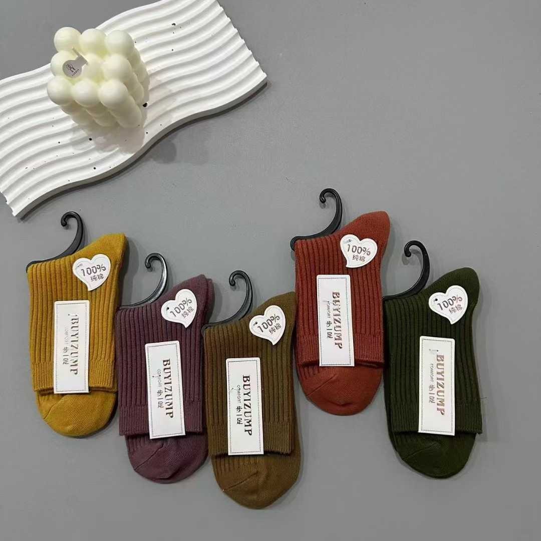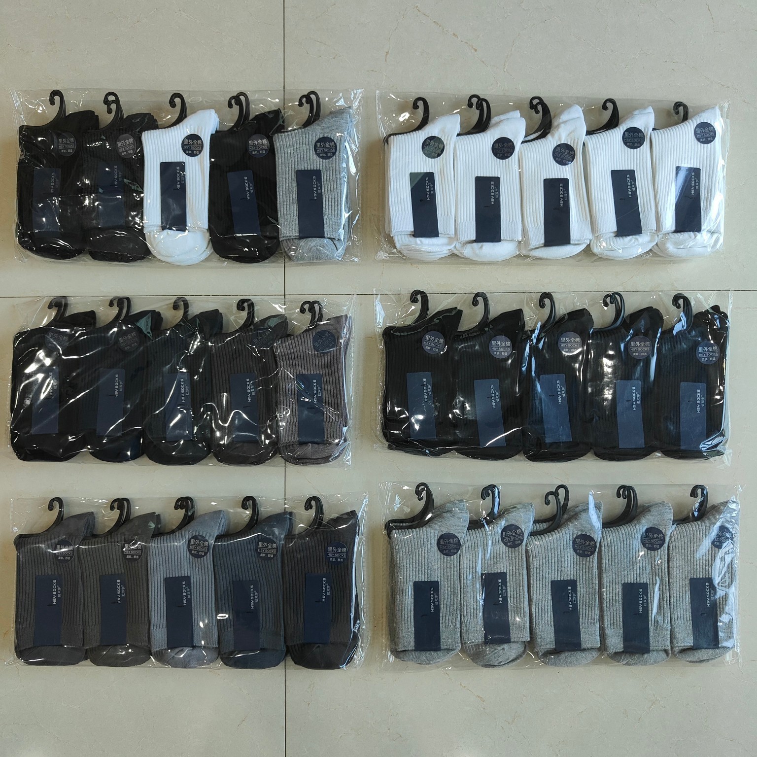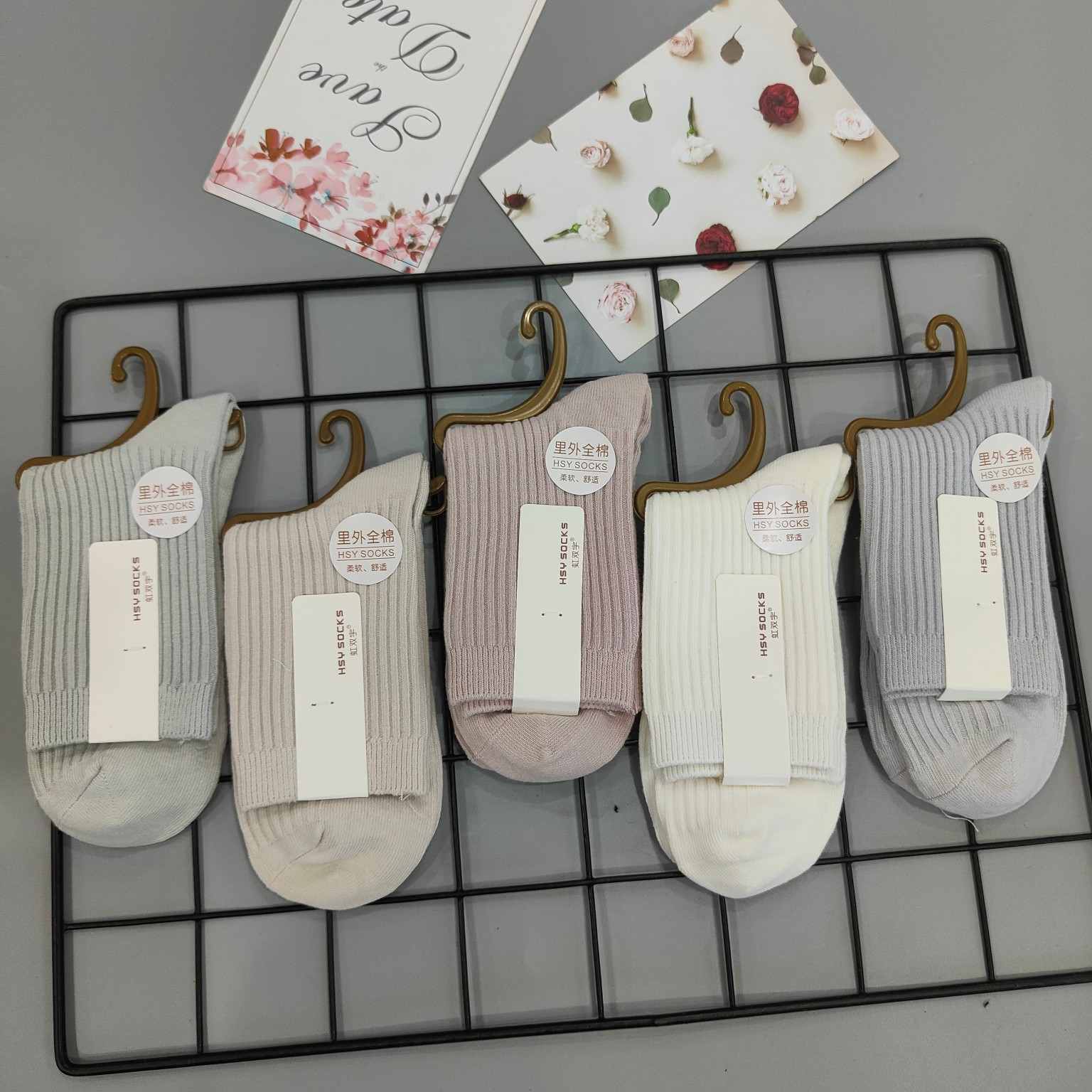 Hongshuangyu 양말 남성과 여성의 더블 바늘 중간 배럴 가을 및 겨울 캐주얼 단색 남성 중통 양말 더블 바늘 수직 스트립 비즈니스 면화 양말스토어 가기