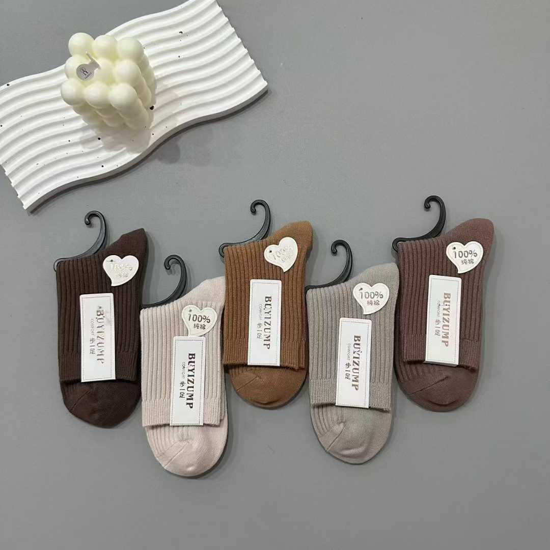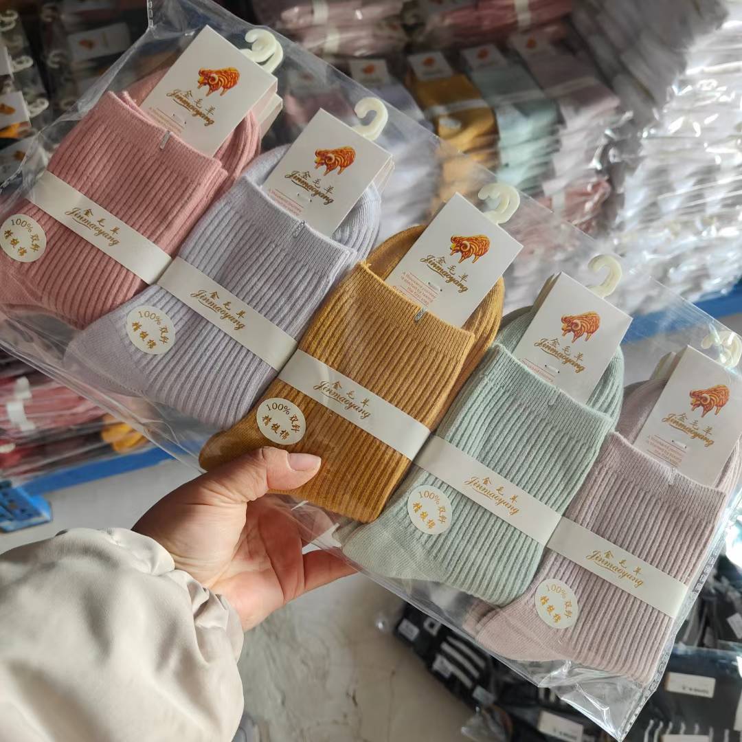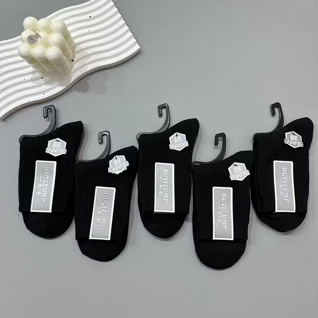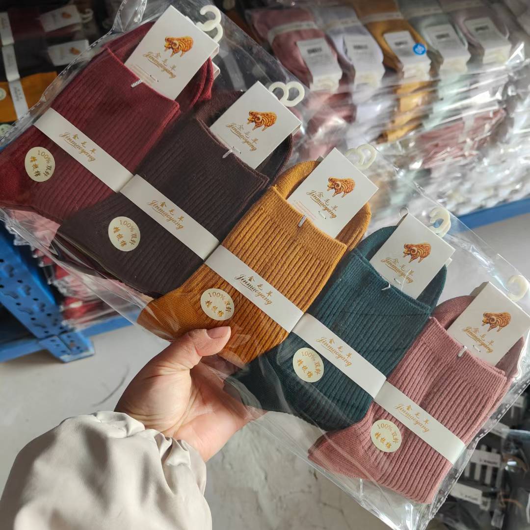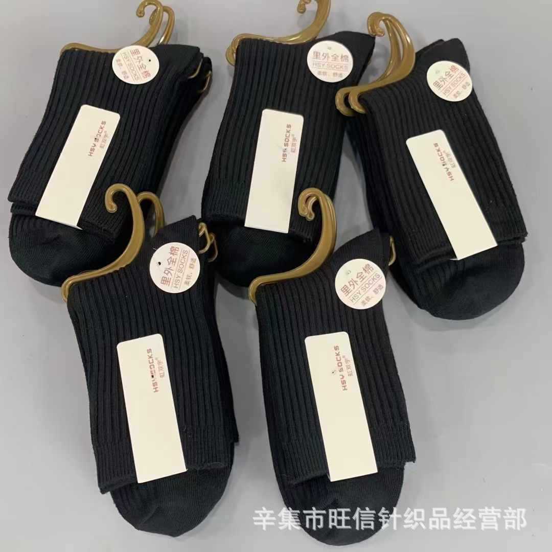 Hongshuangyu 양말 남성과 여성의 더블 바늘 중간 배럴 가을 및 겨울 캐주얼 단색 남성 중통 양말 더블 바늘 수직 스트립 비즈니스 면화 양말스토어 가기