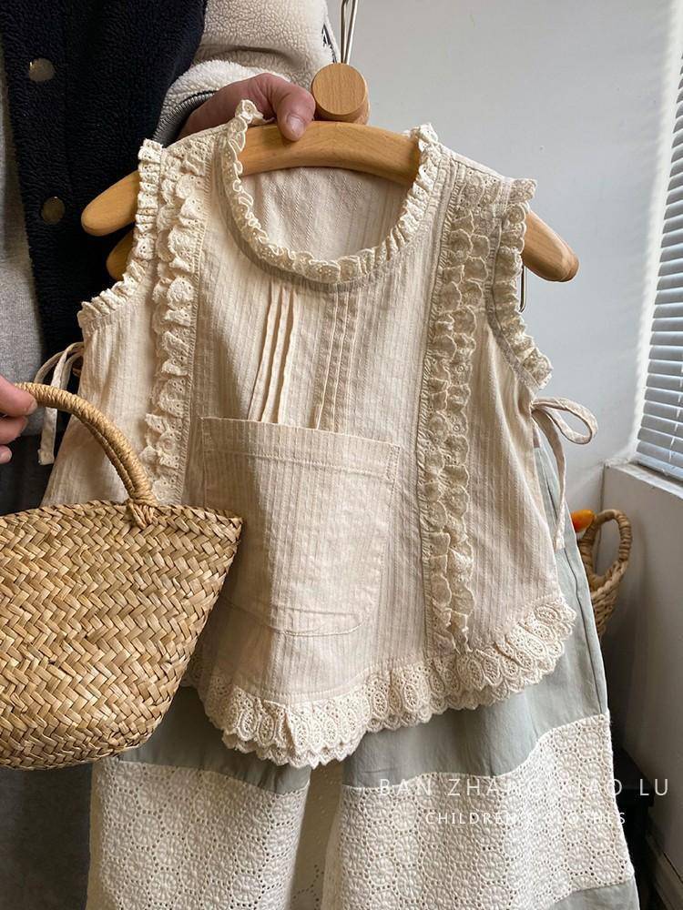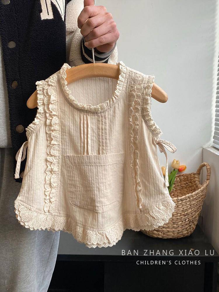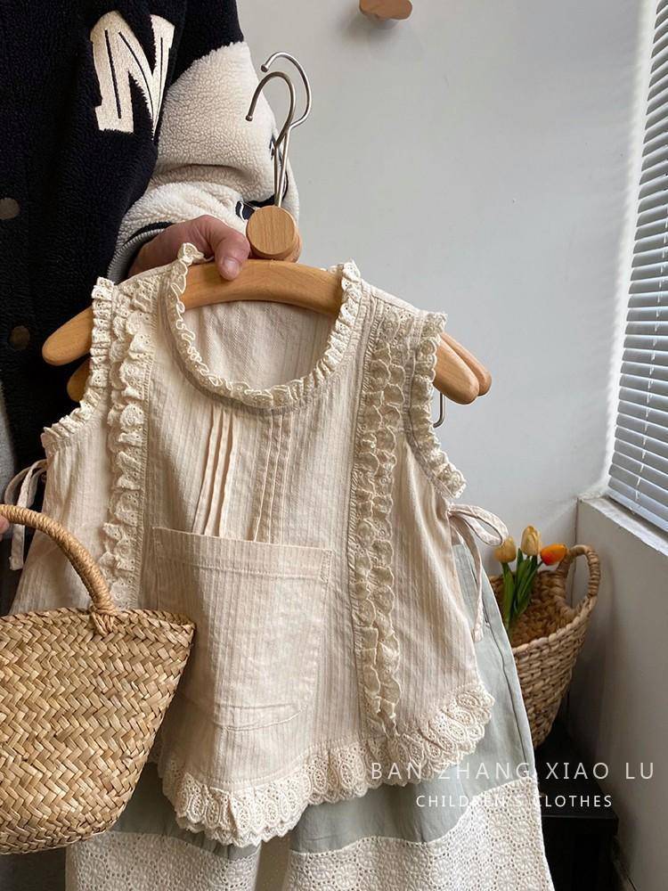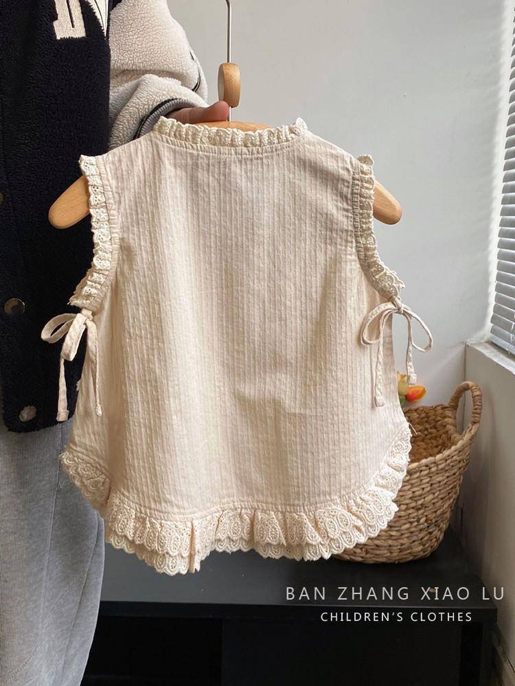 여자 숲 스타일 수 놓은 레이스 조끼 셔츠 한국 스타일 아동 의류 2025 여름 새로운 민소매 얇은 양복 유행