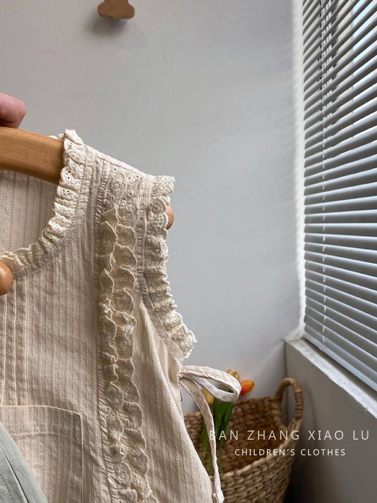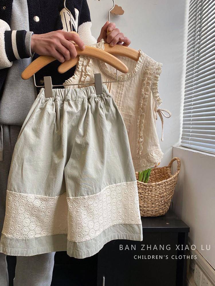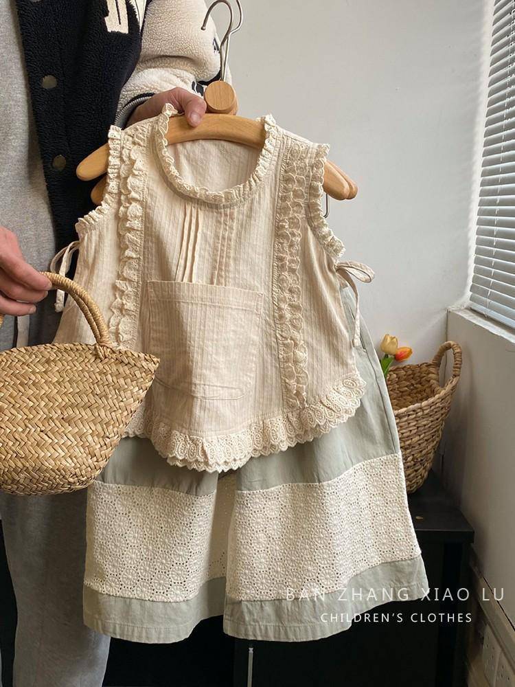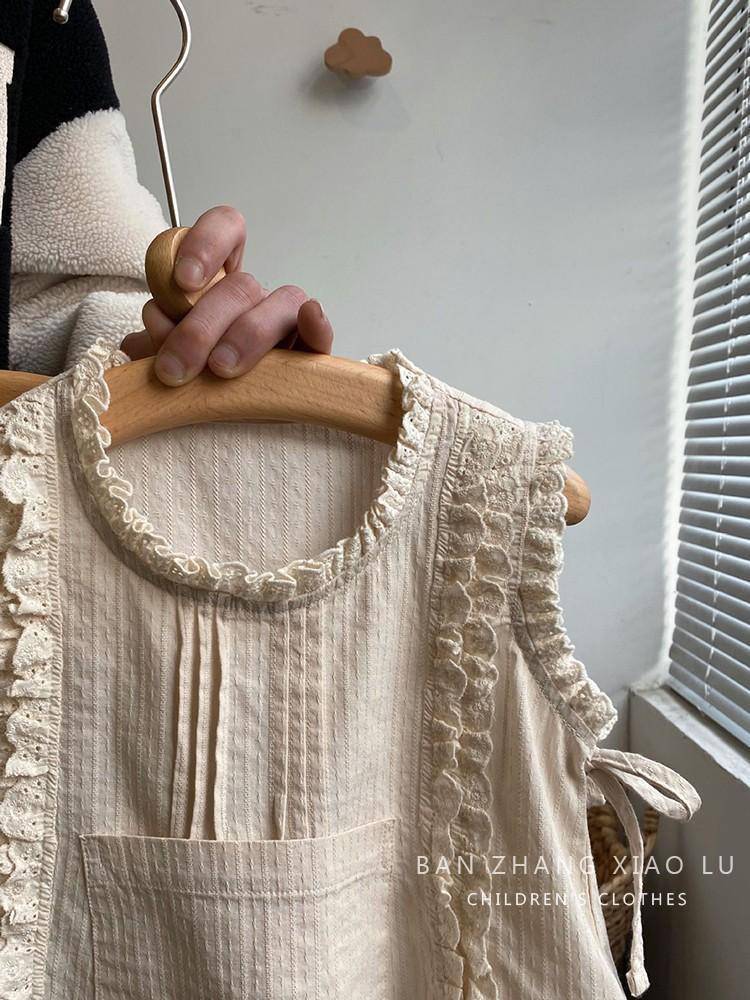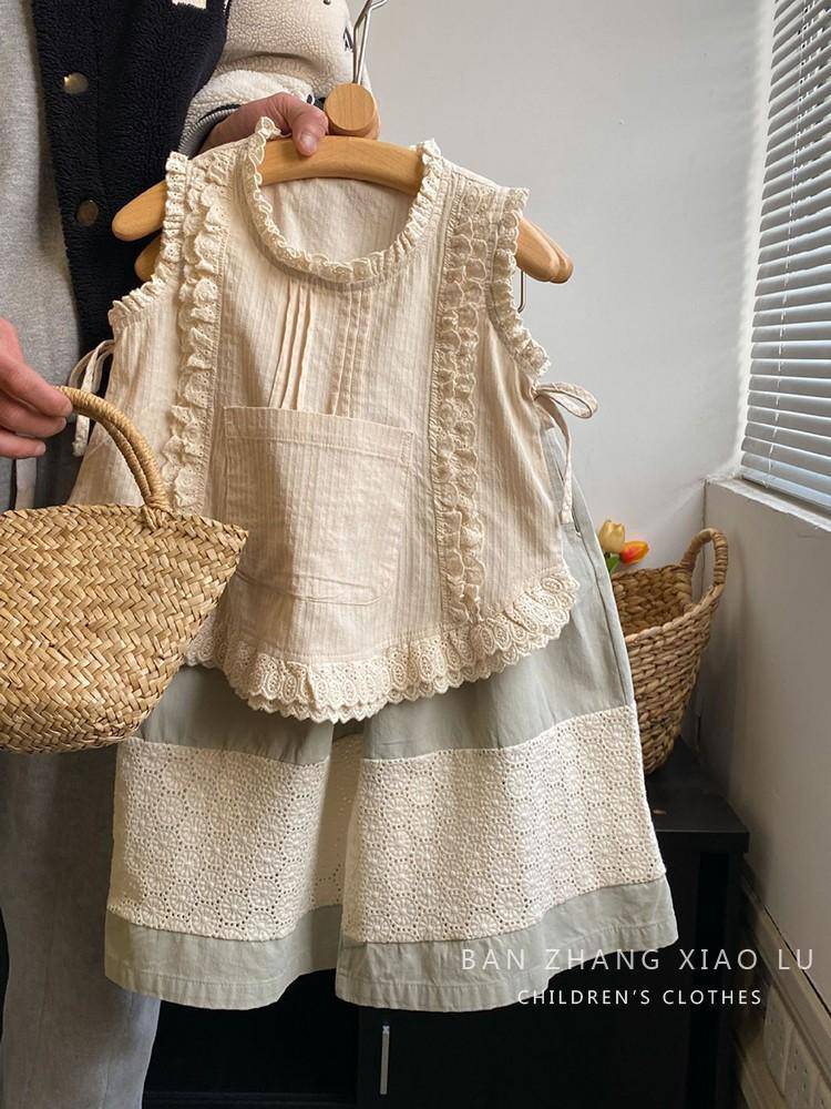 여자 숲 스타일 수 놓은 레이스 조끼 셔츠 한국 스타일 아동 의류 2025 여름 새로운 민소매 얇은 양복 유행