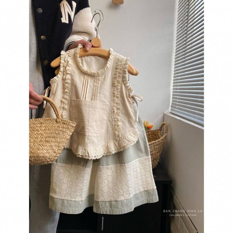 여자 숲 스타일 수 놓은 레이스 조끼 셔츠 한국 스타일 아동 의류 2025 여름 새로운 민소매 얇은 양복 유행스토어 가기