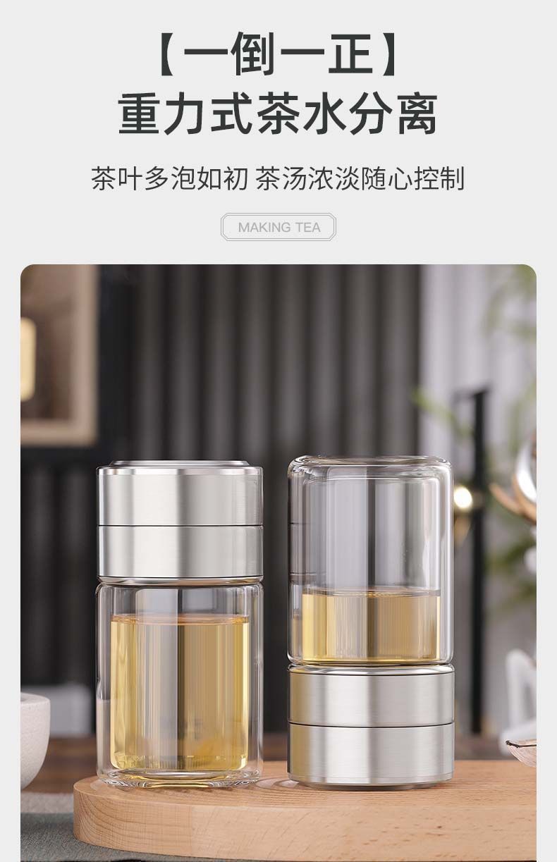 정밀한 차 제조 기능을 갖춘 유리컵, 차와 물 분리형, 고급스러운 미니 휴대용 차통, 다층 필터 차컵