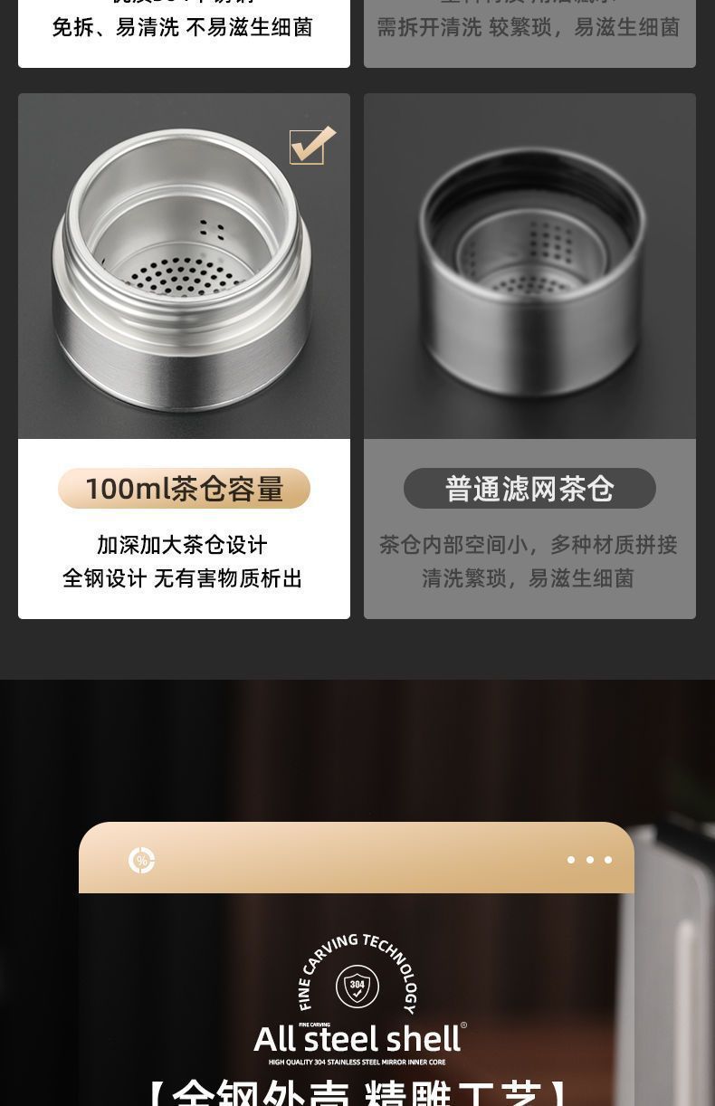 정밀한 차 제조 기능을 갖춘 유리컵, 차와 물 분리형, 고급스러운 미니 휴대용 차통, 다층 필터 차컵스토어 가기