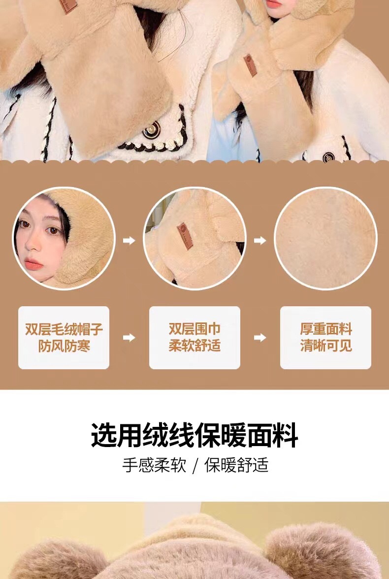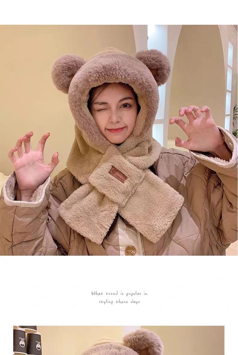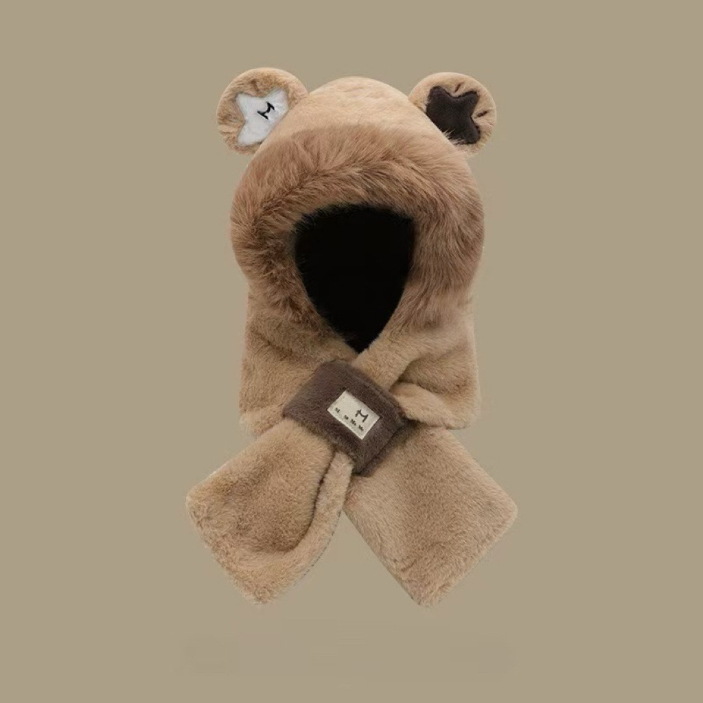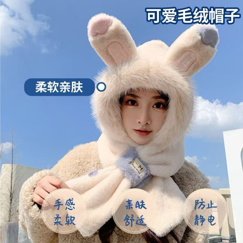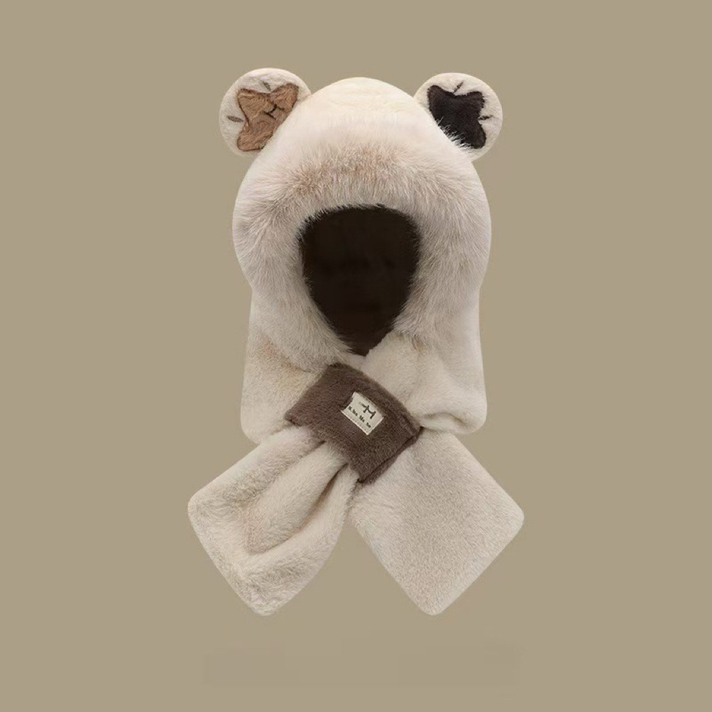 작은 여우 모양 모자 스카프 일체형 여성용 털모자 마스크 후드 넥워머 겨울 보온 트렌디 한국 스타일 털복숭이