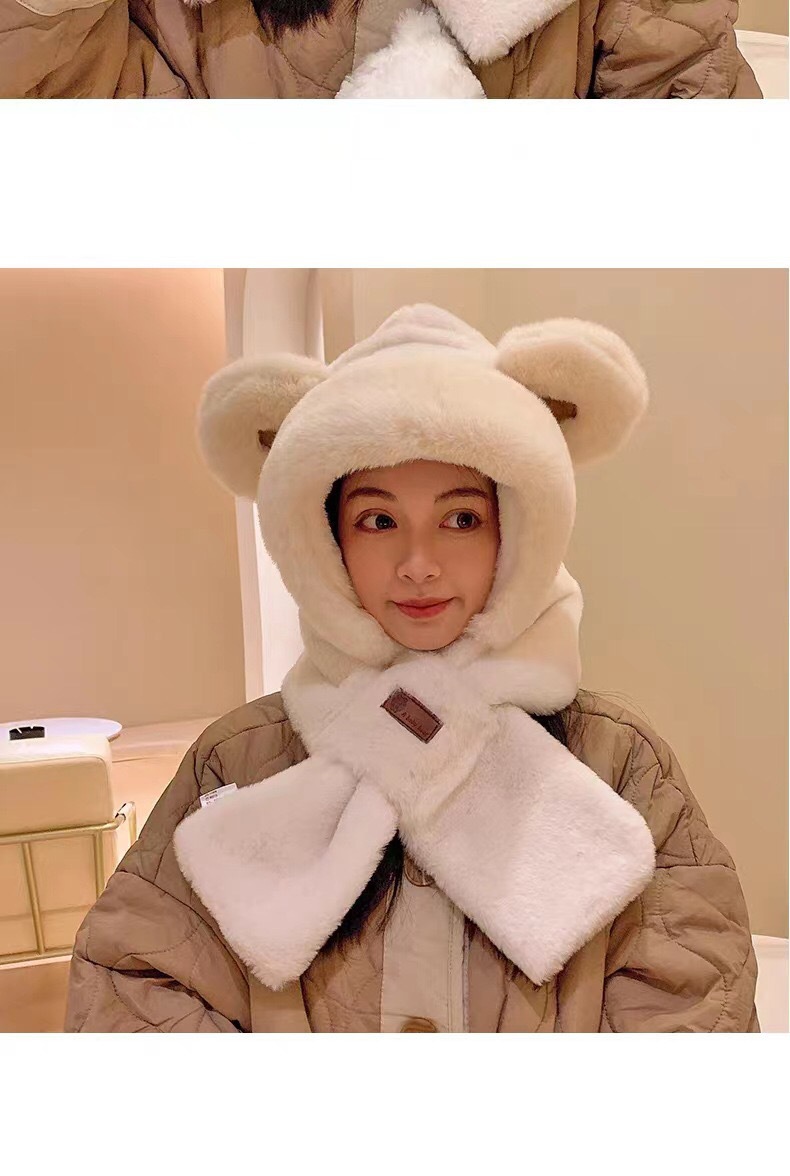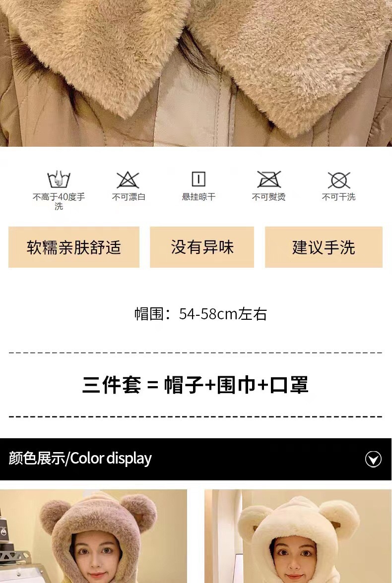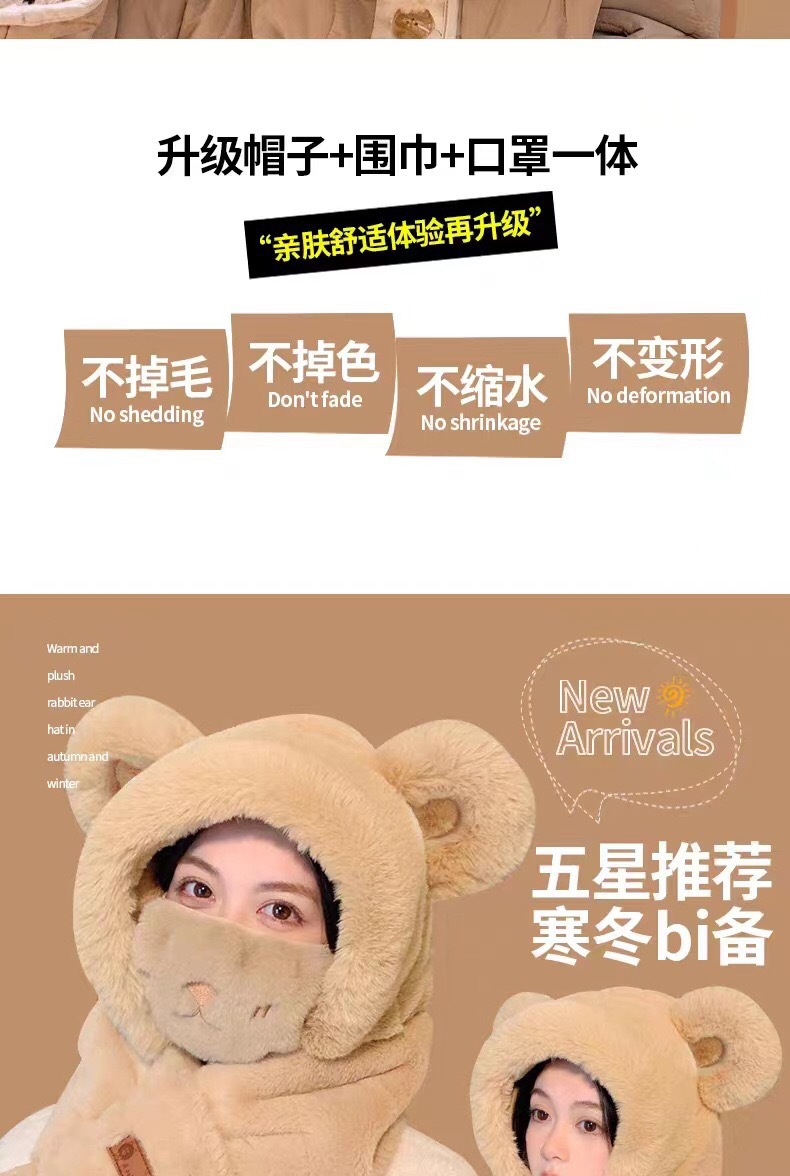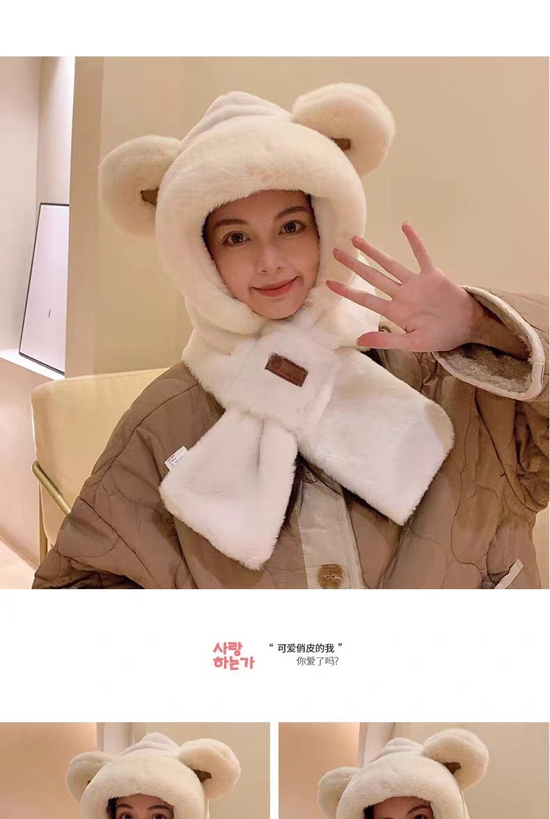 작은 여우 모양 모자 스카프 일체형 여성용 털모자 마스크 후드 넥워머 겨울 보온 트렌디 한국 스타일 털복숭이스토어 가기