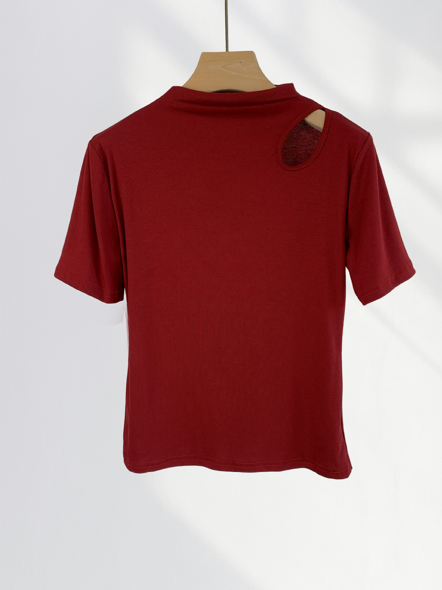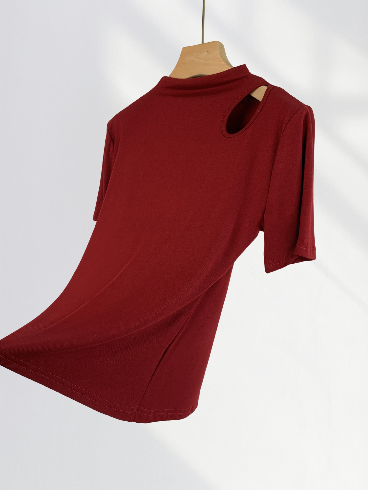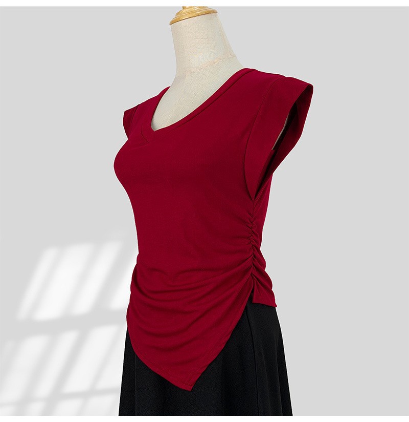 13 Xijie 같은 버건디 반팔 티셔츠 여성용 어깨 세련된 아름다운 작은 셔츠 올해 슬림 탑