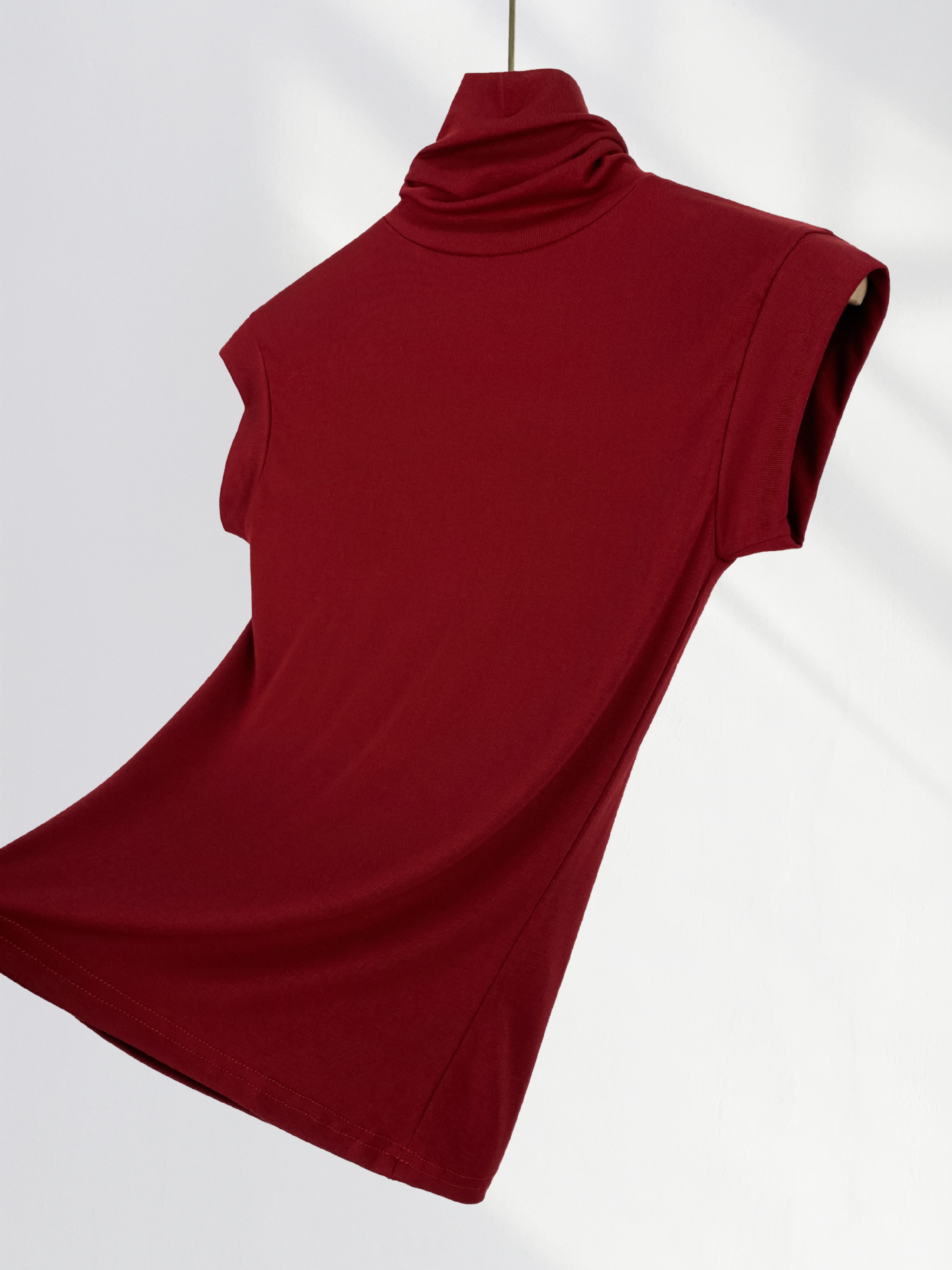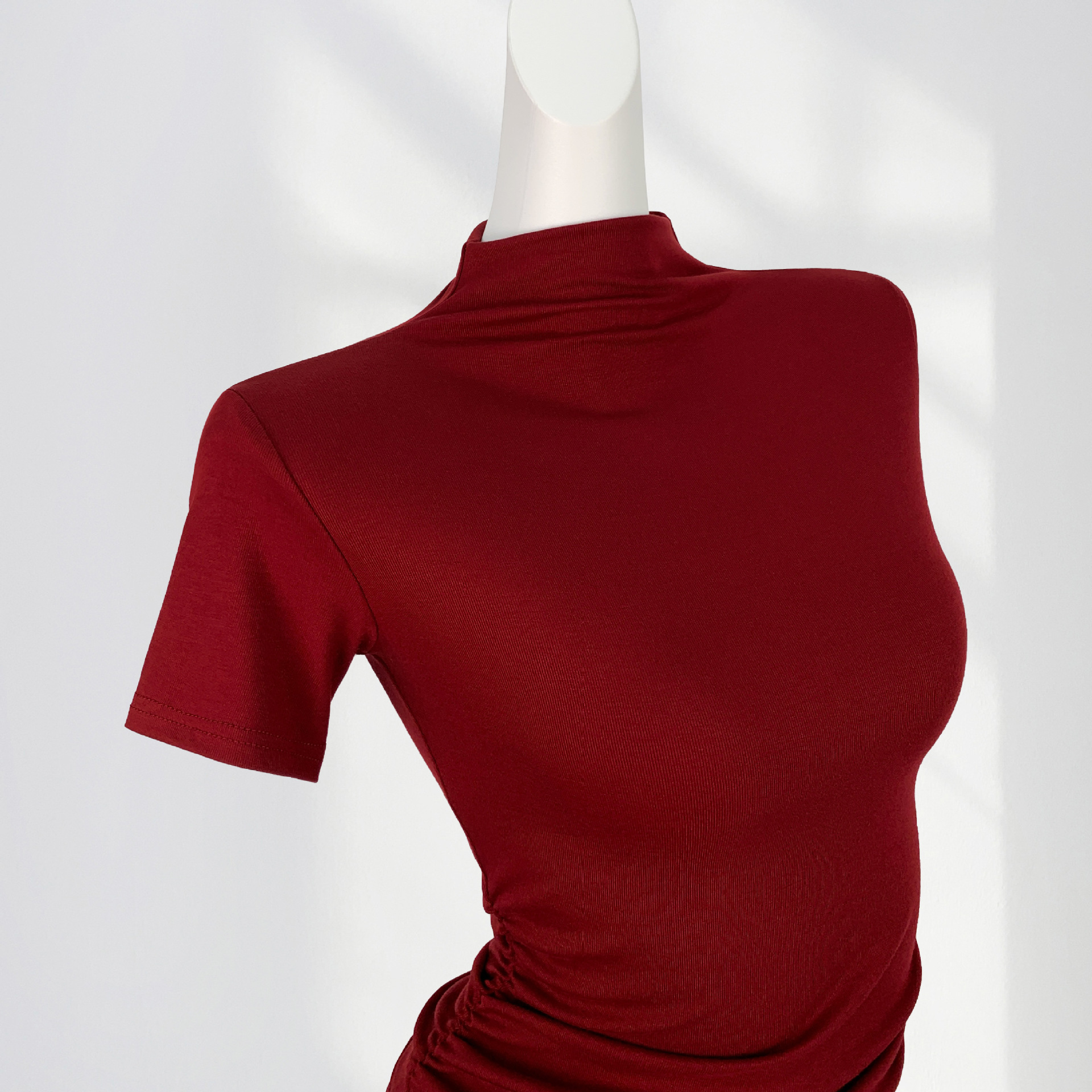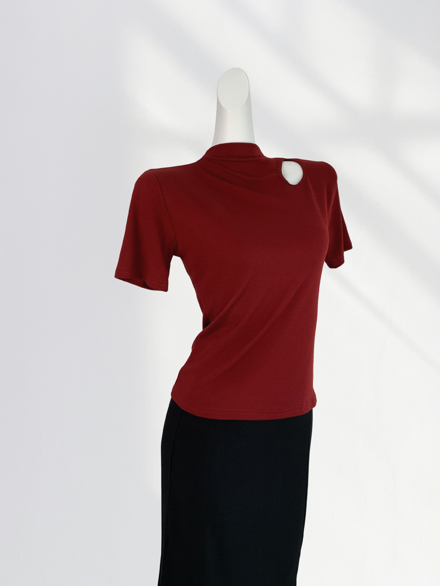 13 Xijie 같은 버건디 반팔 티셔츠 여성용 어깨 세련된 아름다운 작은 셔츠 올해 슬림 탑
