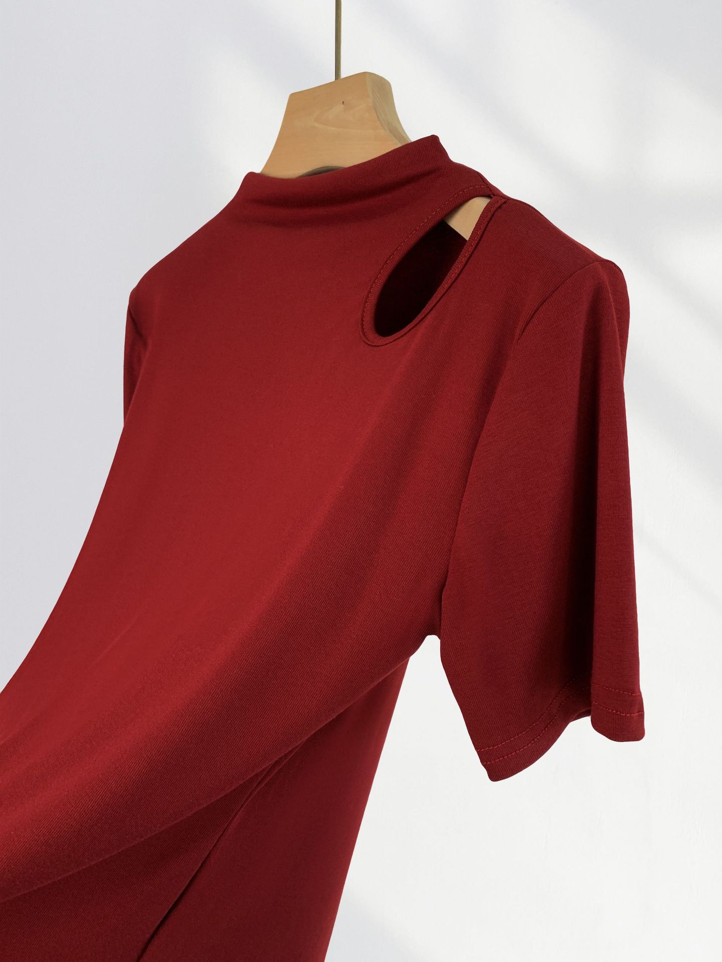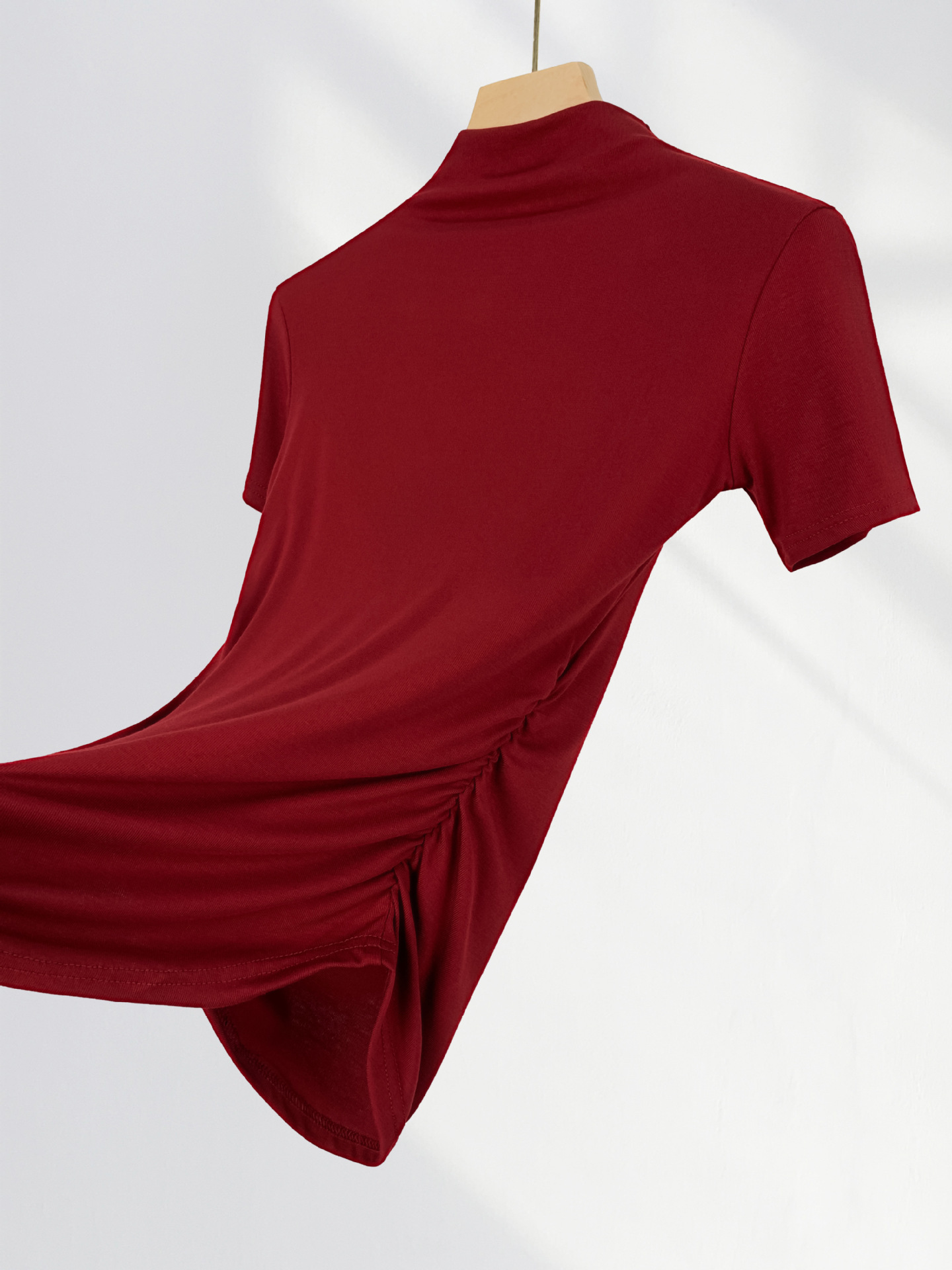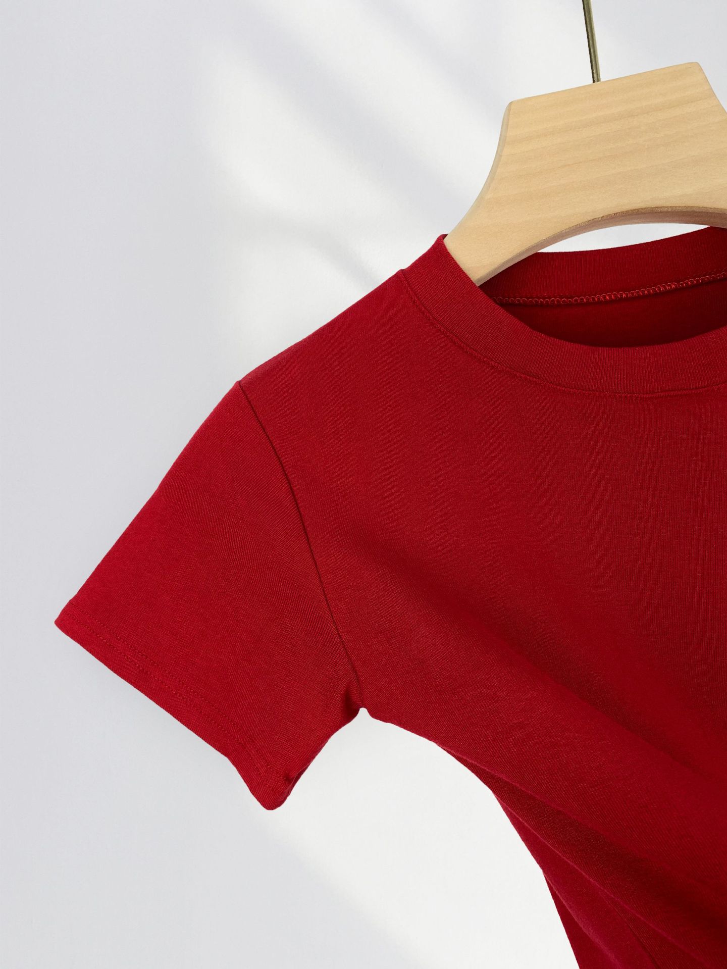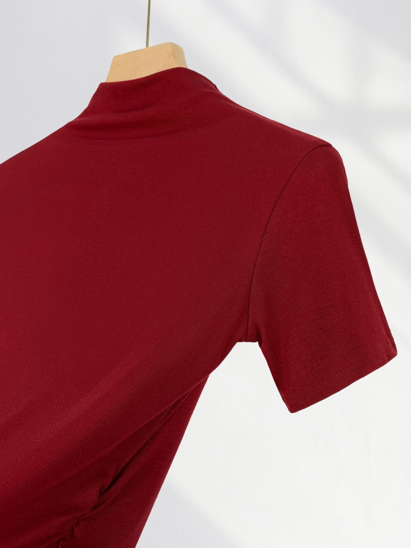 13 Xijie 같은 버건디 반팔 티셔츠 여성용 어깨 세련된 아름다운 작은 셔츠 올해 슬림 탑스토어 가기
