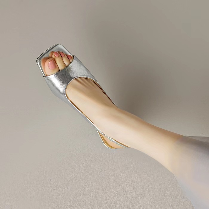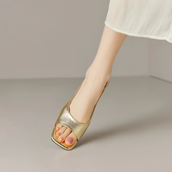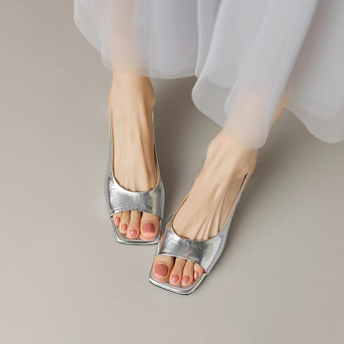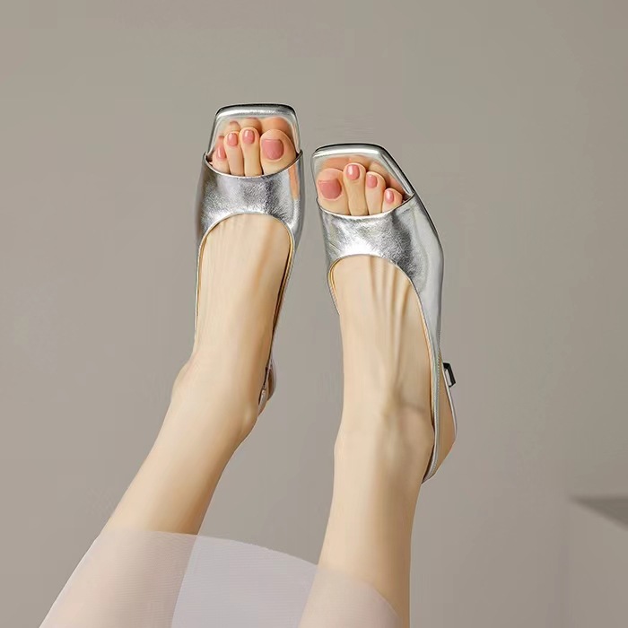 인터넷 축하 새로운 황금 샌들 2024 여름 새로운 여성 신발 여행 스트랩 한국 스타일 간단한 패션 실버 샌들