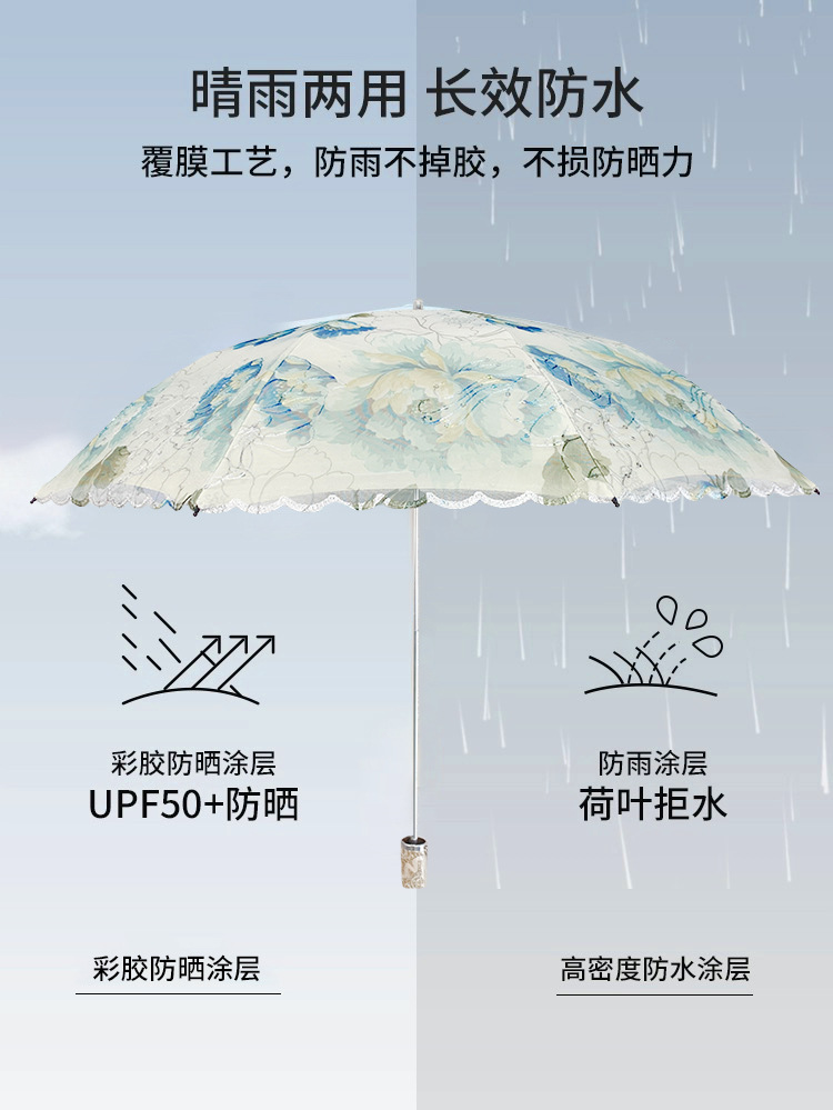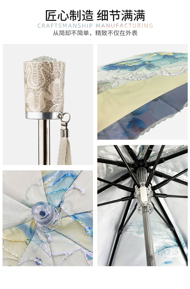 꿈의 태양 우산 햇빛 태양 보호 자외선 보호 햇빛 우산 맑고 비 이중 사용 2 배 자수 우산 여성용