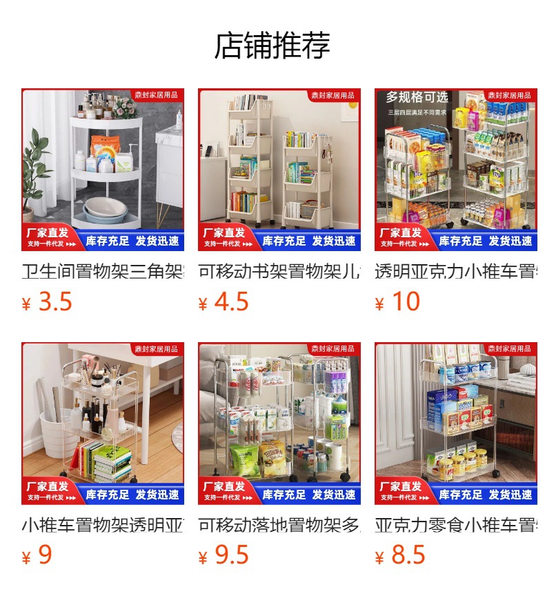 小推车塑料置物架多用途家用客厅零食架书房儿童书本架浴室收纳架