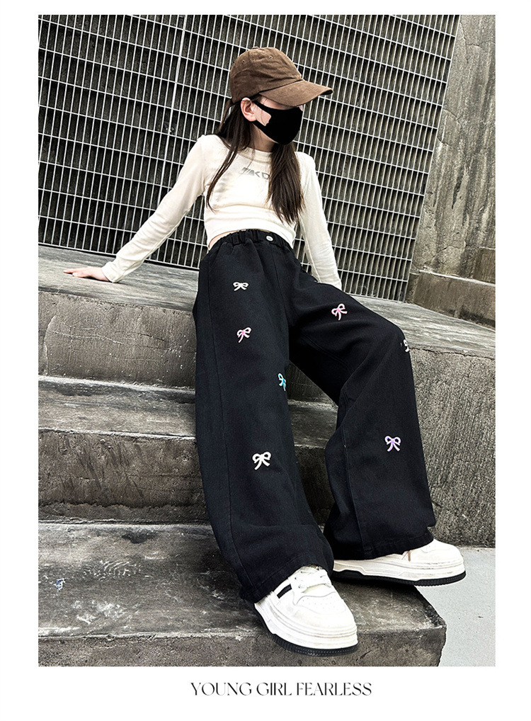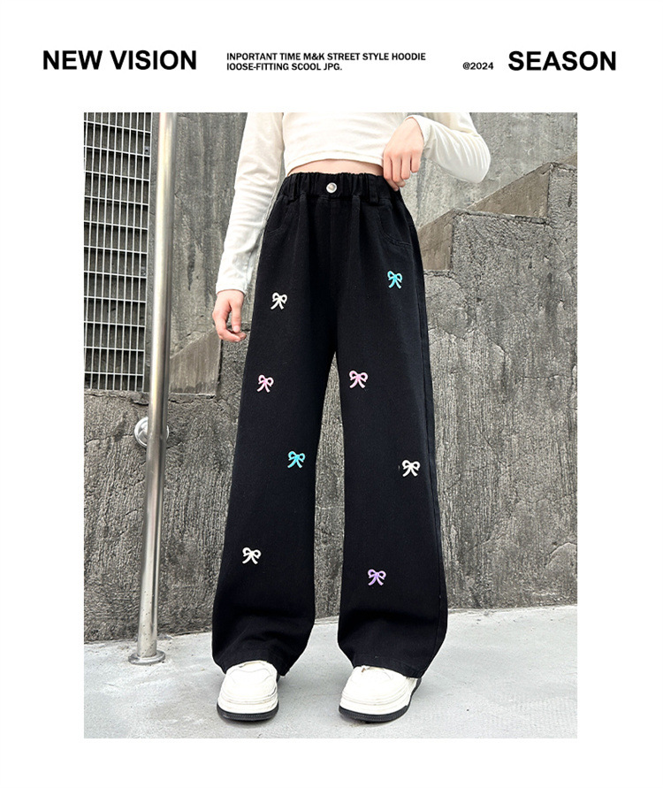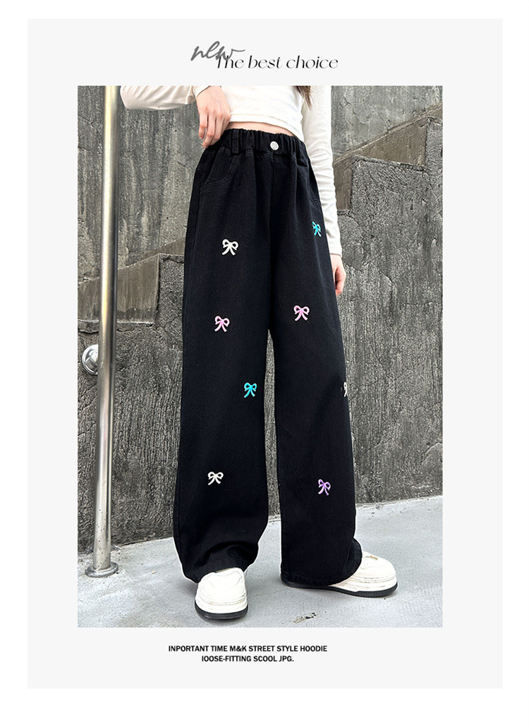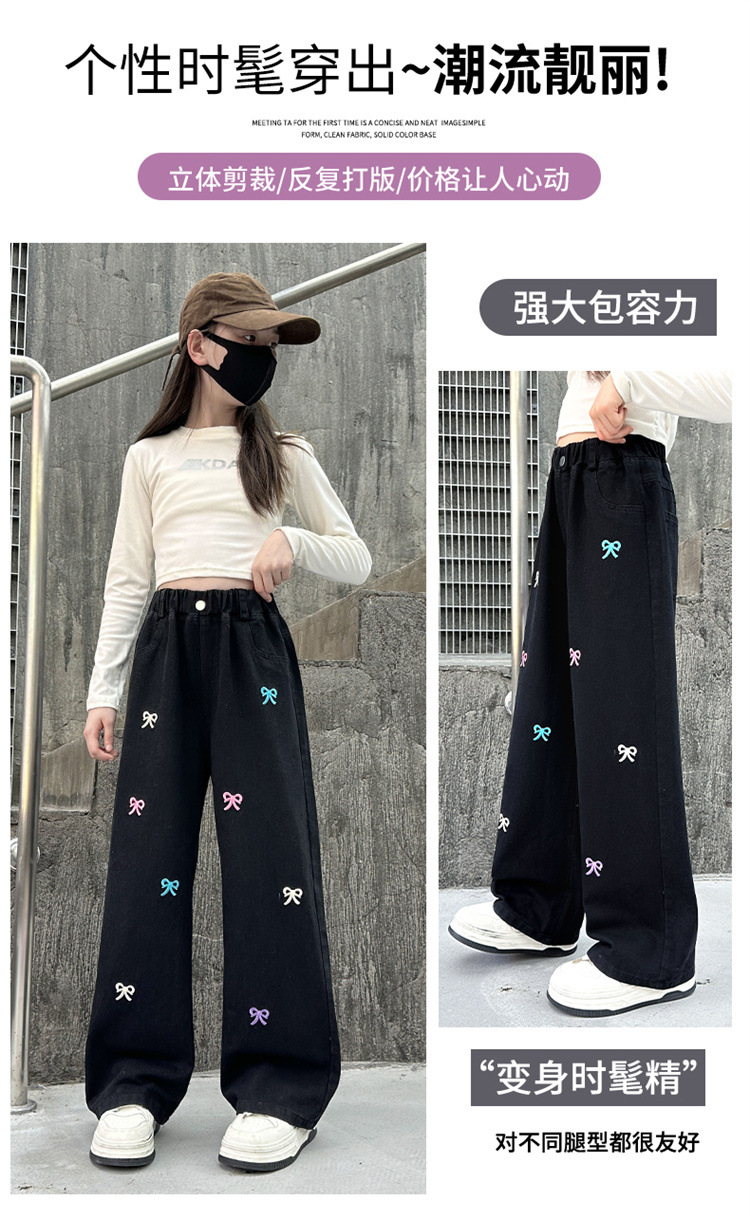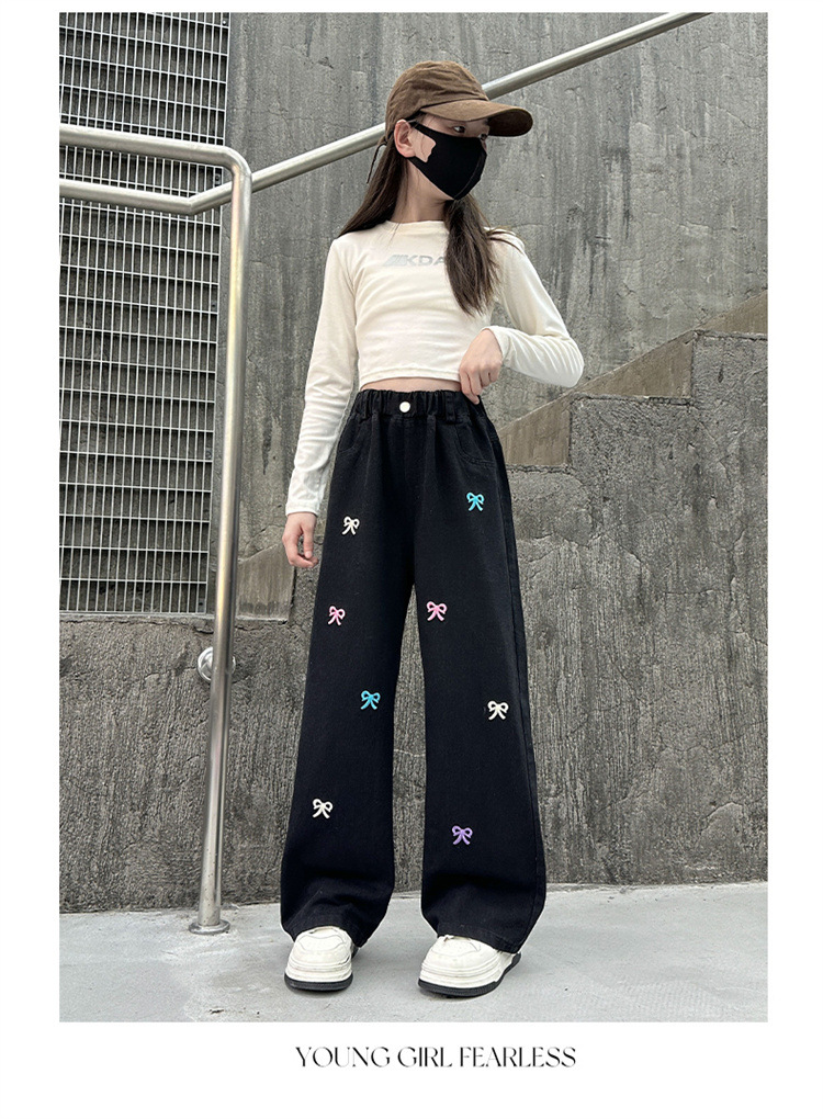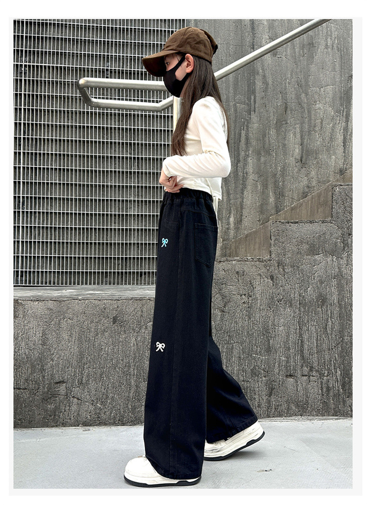 여아 데님 팬츠 2026 봄 신상 중대형 아동용 스타일리쉬하고 트렌디한 봄가을용 아동 스트레이트 팬츠 와이드 팬츠