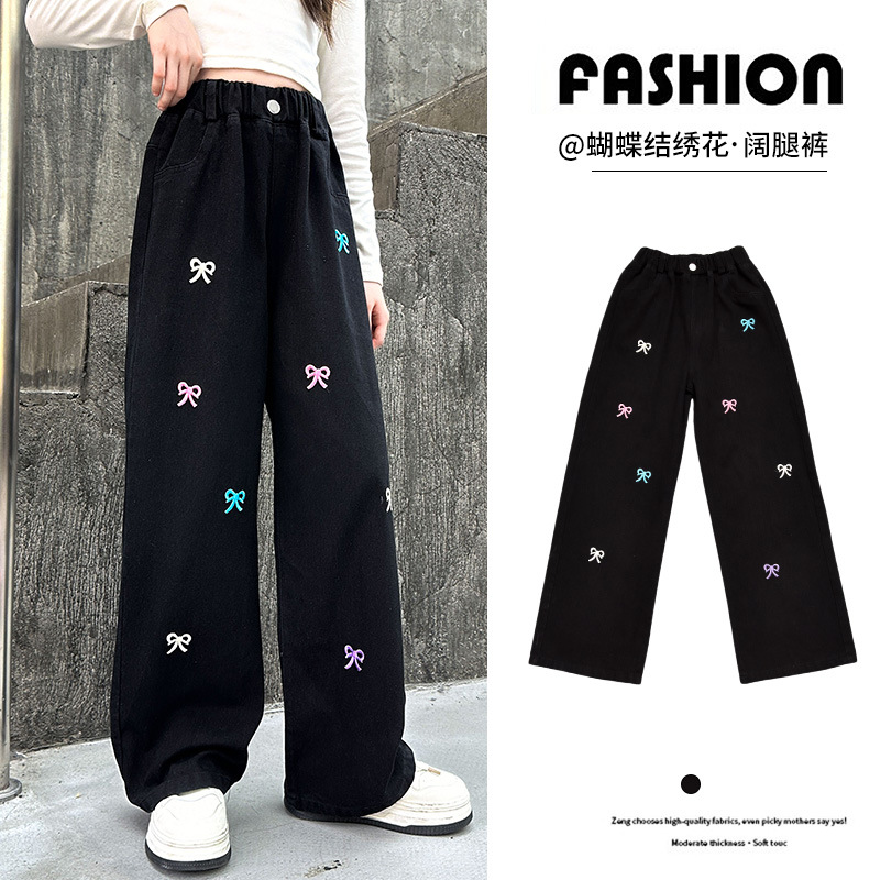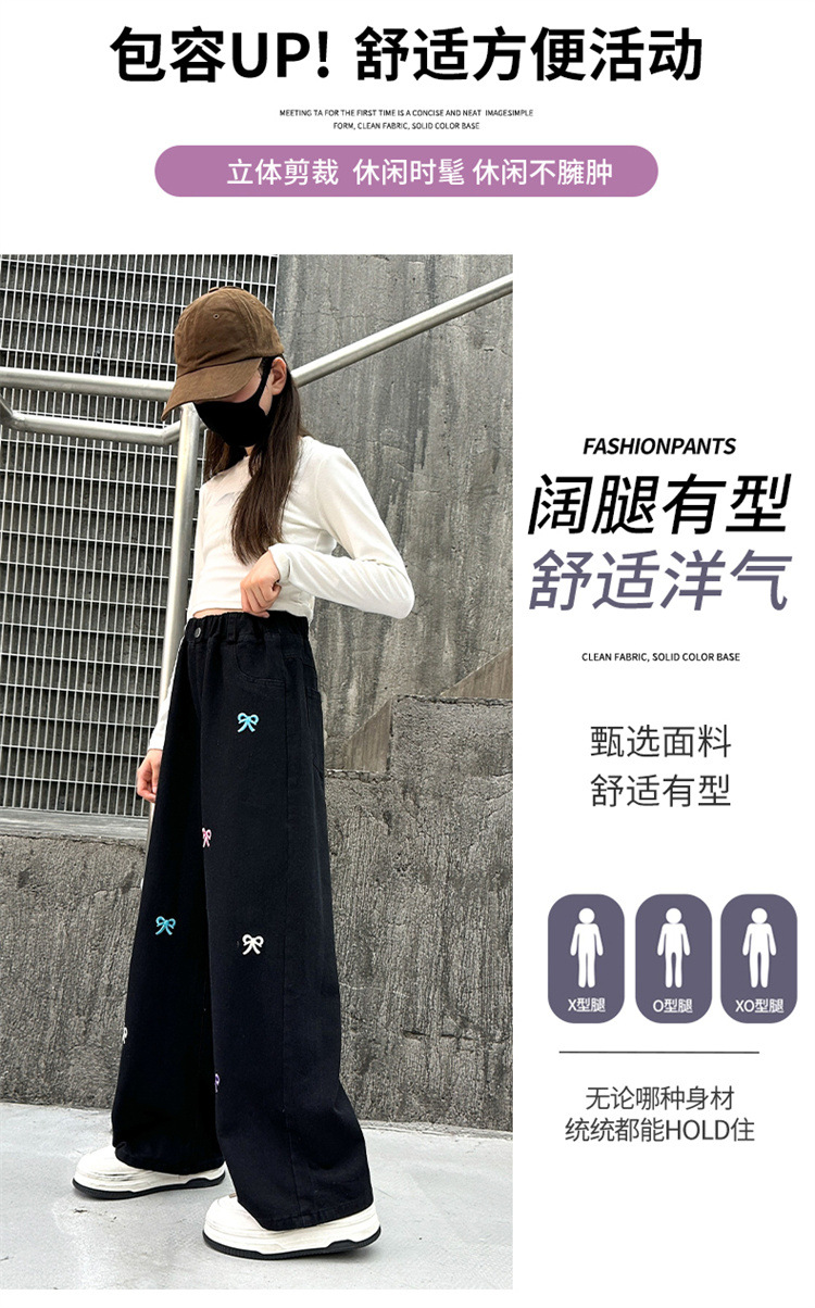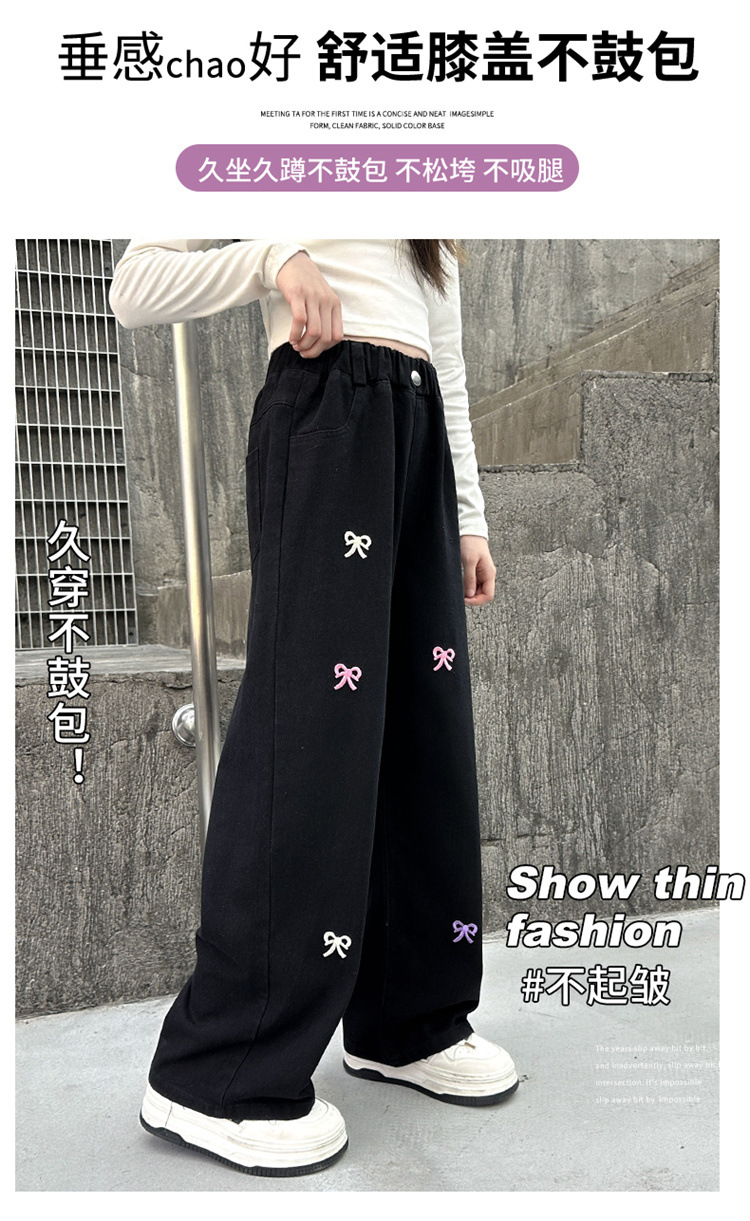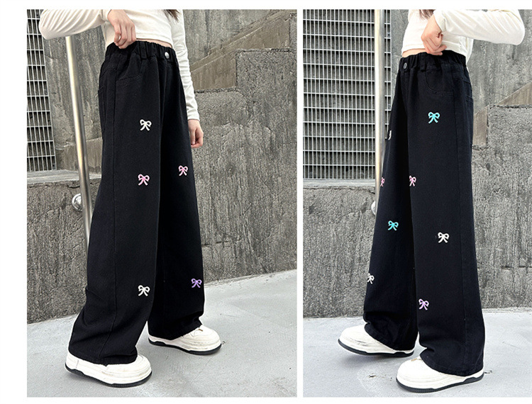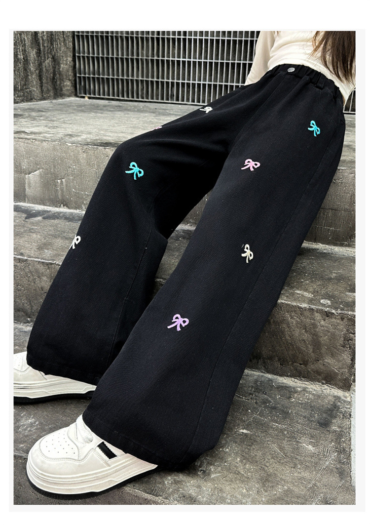 여아 데님 팬츠 2026 봄 신상 중대형 아동용 스타일리쉬하고 트렌디한 봄가을용 아동 스트레이트 팬츠 와이드 팬츠