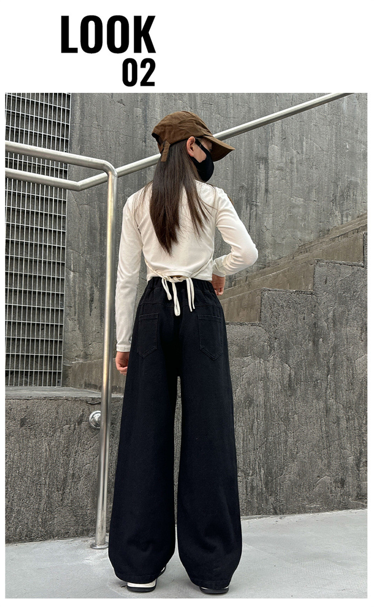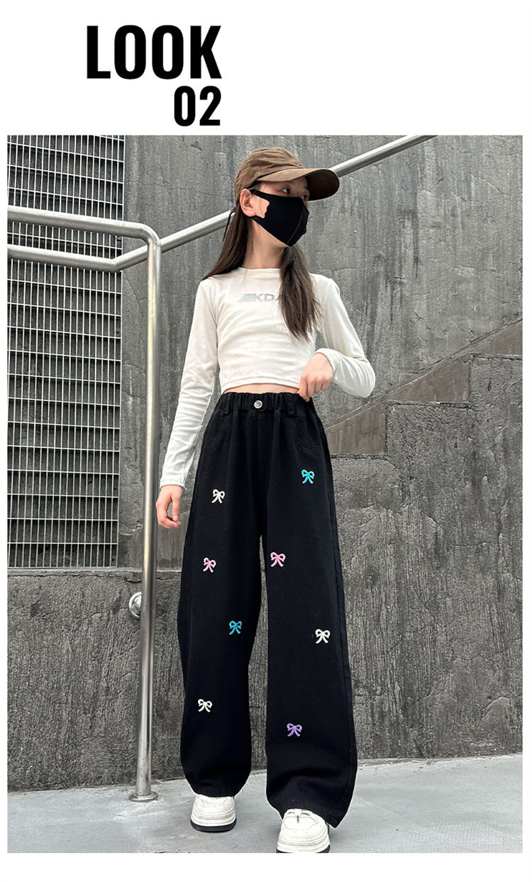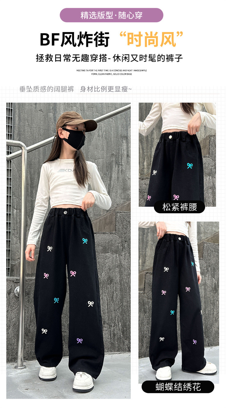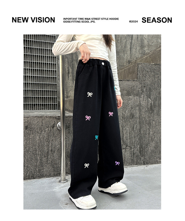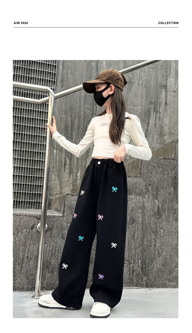 여아 데님 팬츠 2026 봄 신상 중대형 아동용 스타일리쉬하고 트렌디한 봄가을용 아동 스트레이트 팬츠 와이드 팬츠