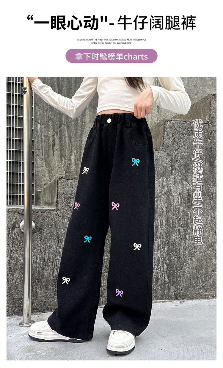 여아 데님 팬츠 2026 봄 신상 중대형 아동용 스타일리쉬하고 트렌디한 봄가을용 아동 스트레이트 팬츠 와이드 팬츠스토어 가기