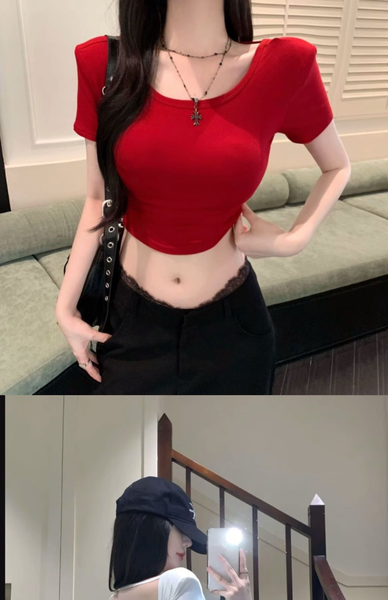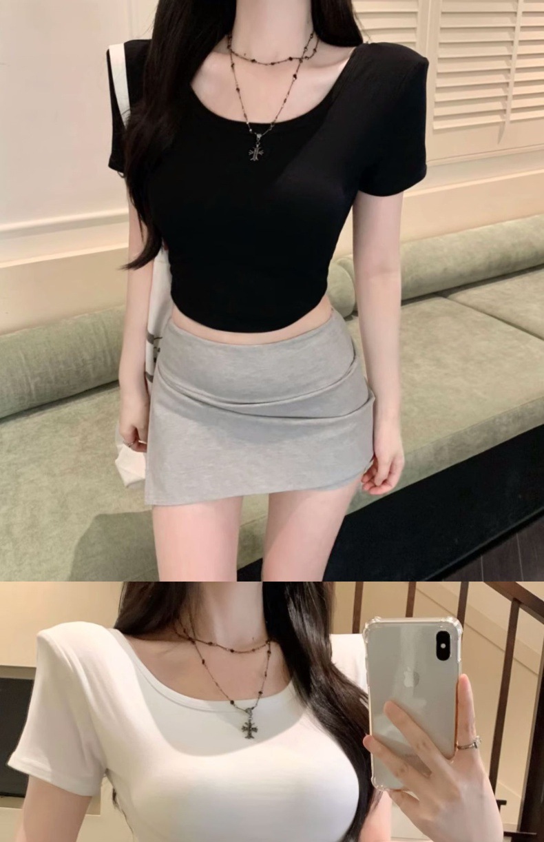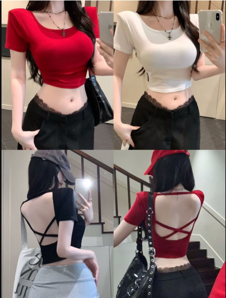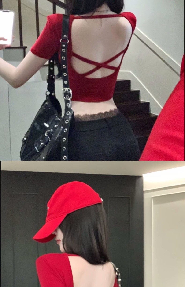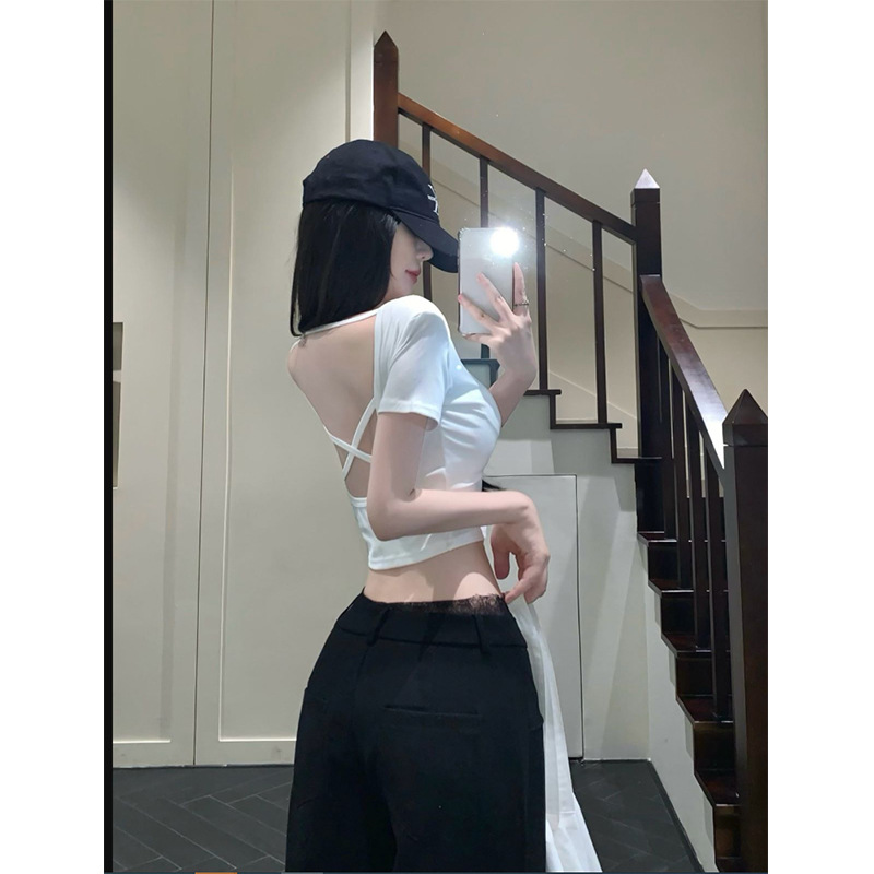 중공 백 패드 반팔 티셔츠 여성용 여름 순수 스위트 스파이스 걸스 Backless Short Tops with Chest Pad Beautiful