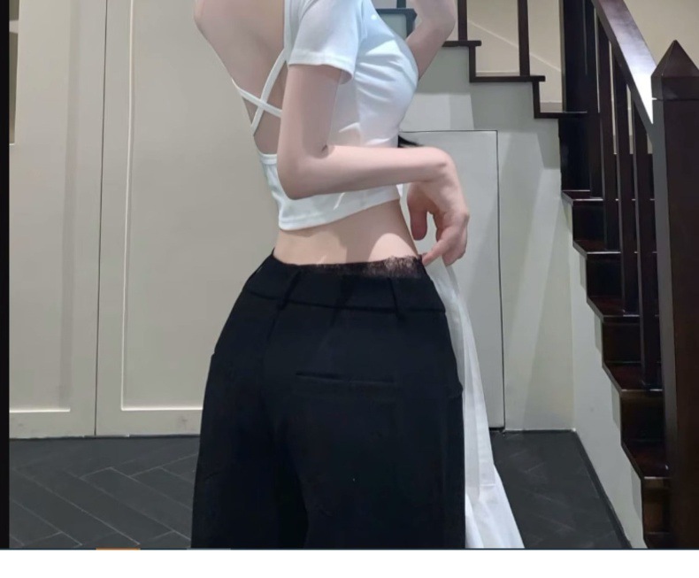 중공 백 패드 반팔 티셔츠 여성용 여름 순수 스위트 스파이스 걸스 Backless Short Tops with Chest Pad Beautiful스토어 가기