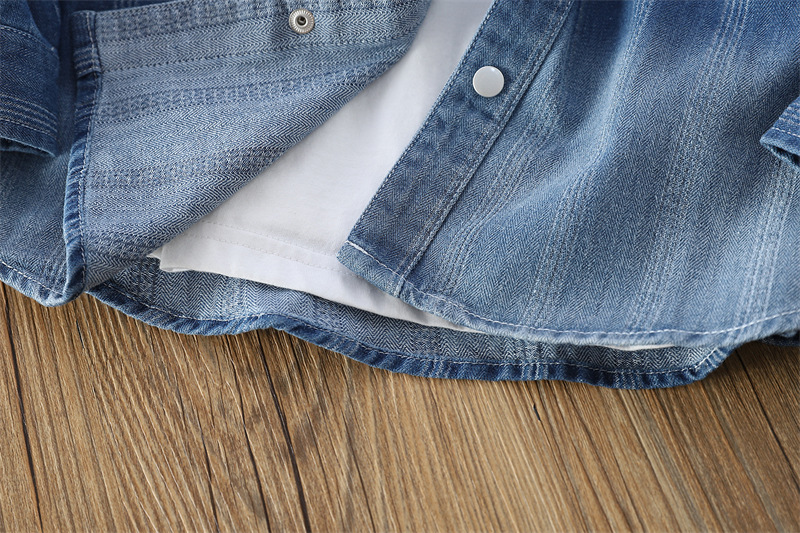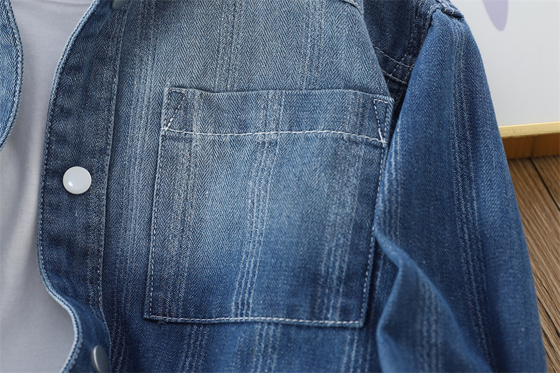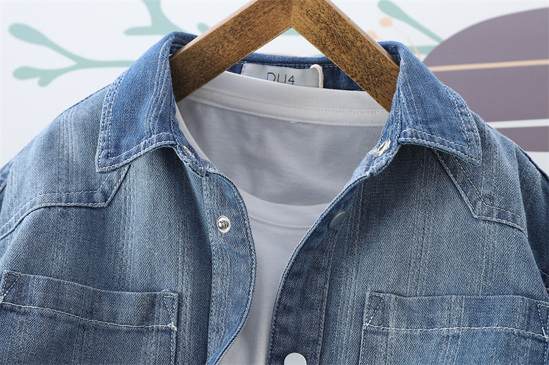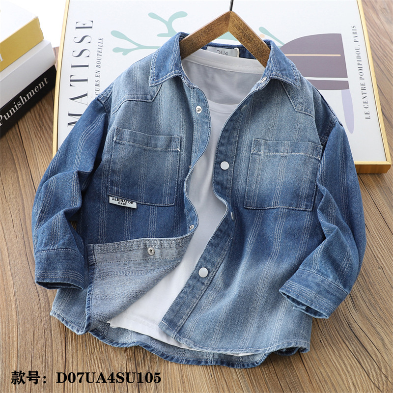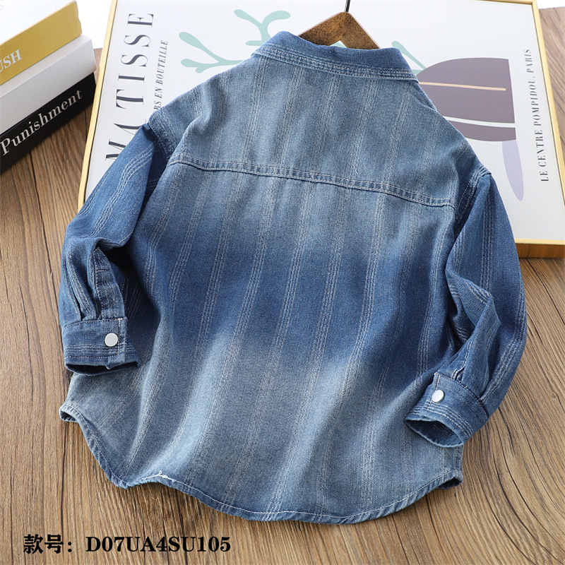 어린이 셔츠 중 큰 어린이 단색 캐주얼 데님 셔츠 대외 무역 아동복 24 가을 두꺼운 톱 4au105
