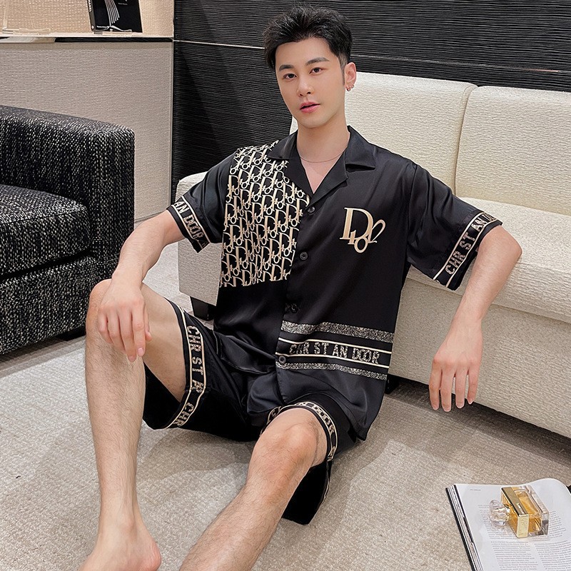 짧은 소매 반바지 아이스 실크 커플 잠옷 여성의 봄 얇은 편지 인쇄 세트 플러스 사이즈 남성 겉옷 홈 옷스토어 가기