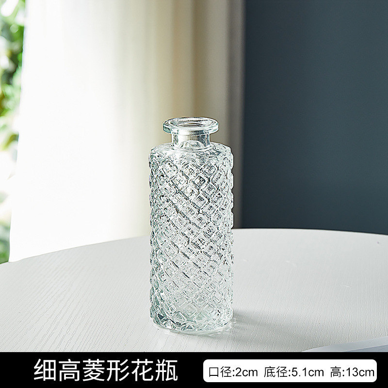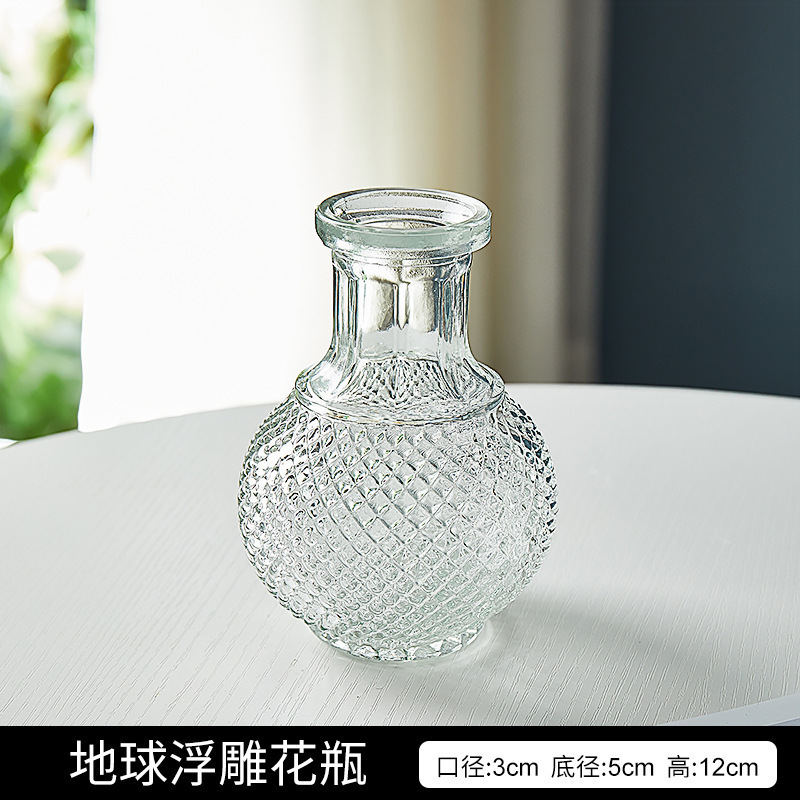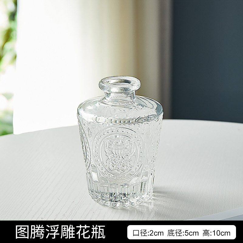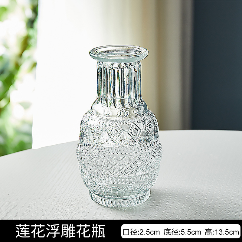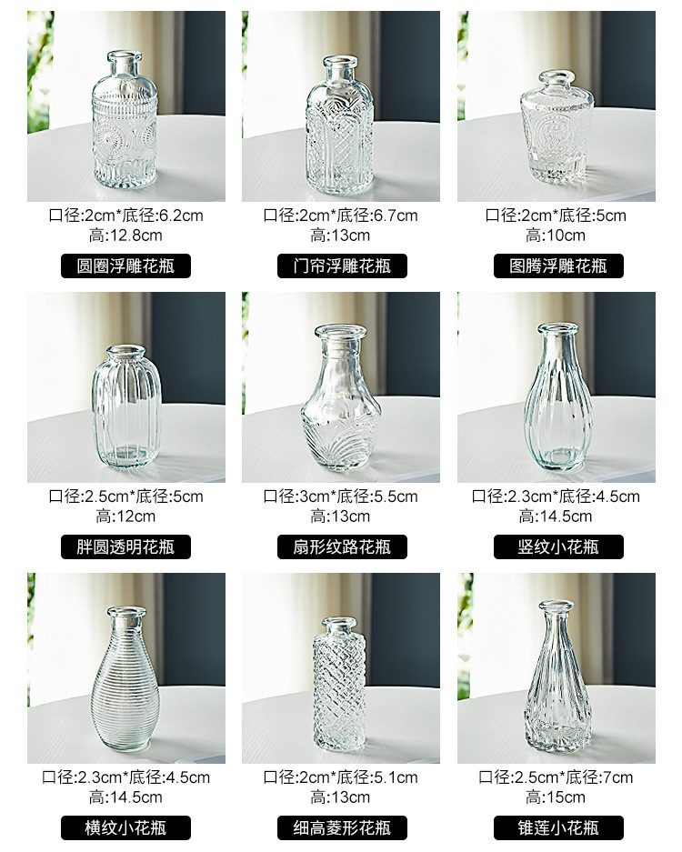 프랑스 빈티지 작은 꽃병 양각 유리 높은 색상 가치 장식 꽃병 투명 수경 꽃 배열 거실 모리 꽃병스토어 가기