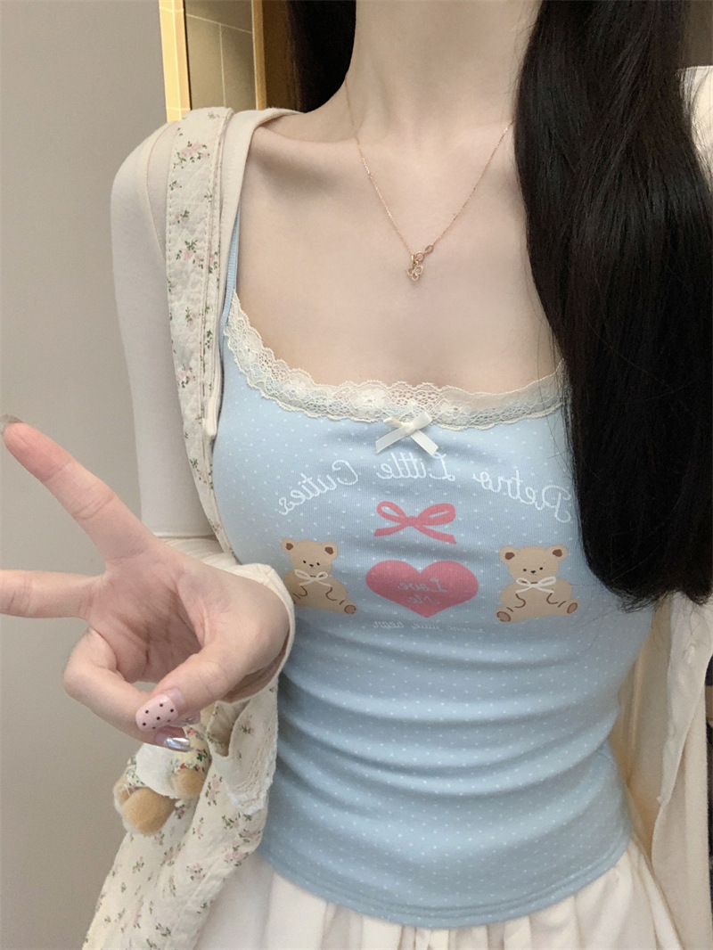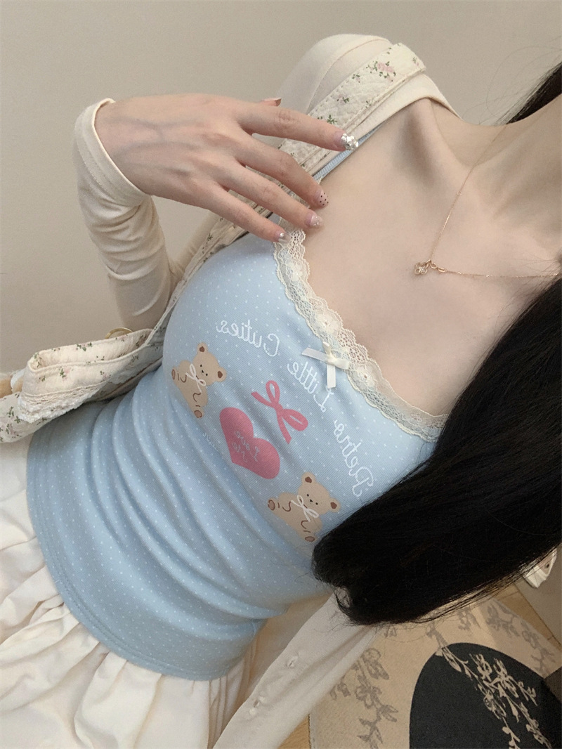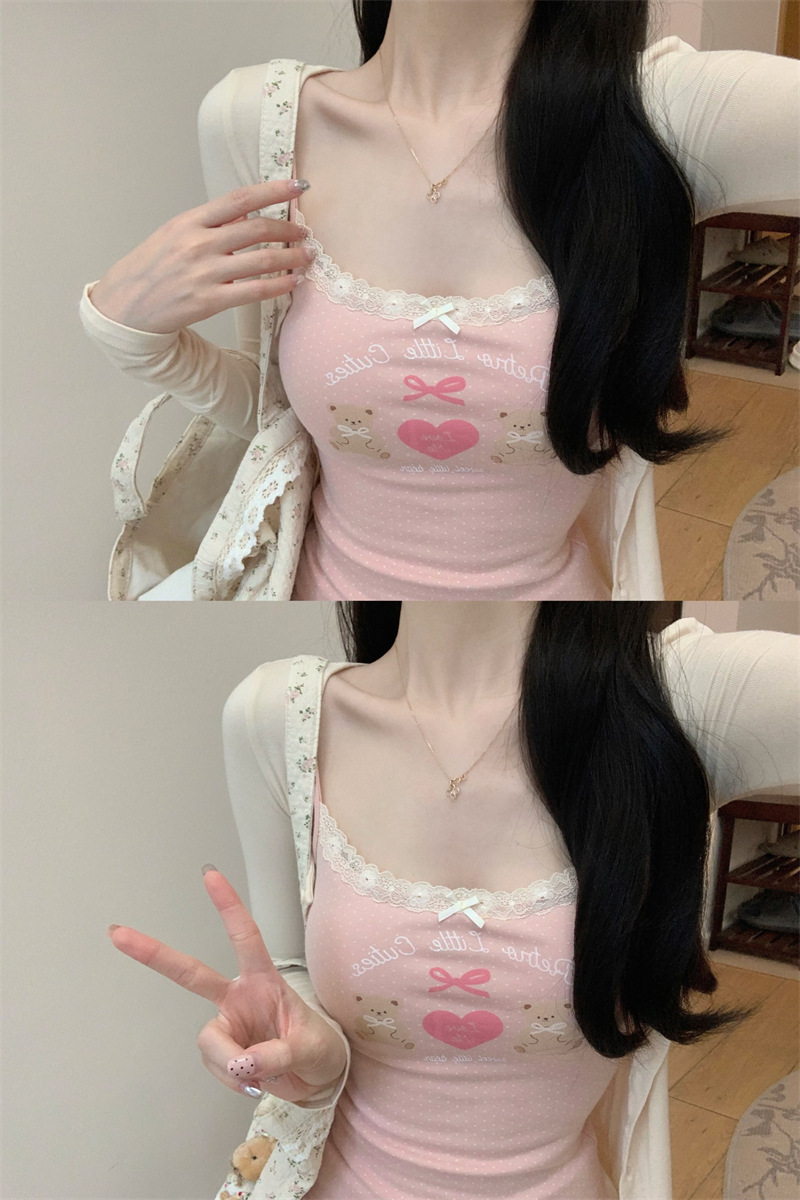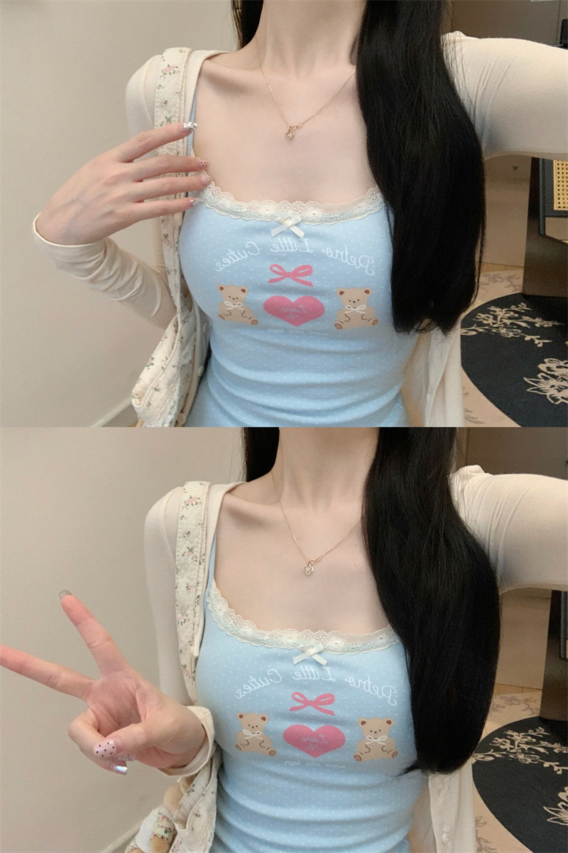 스파이스 소녀 낙서 레이스 활 카미 솔 여성 벨트 가슴 패드 여름 면 민소매 귀여운 최고 여성스토어 가기