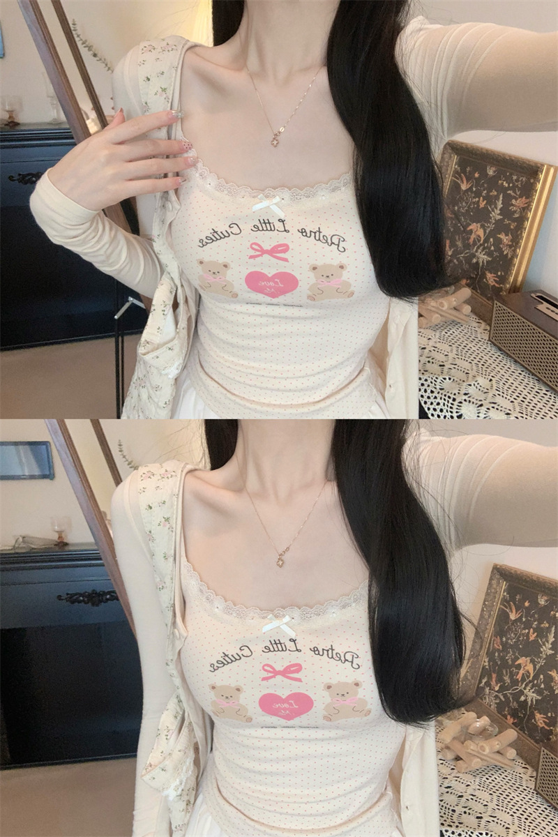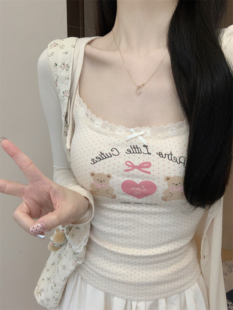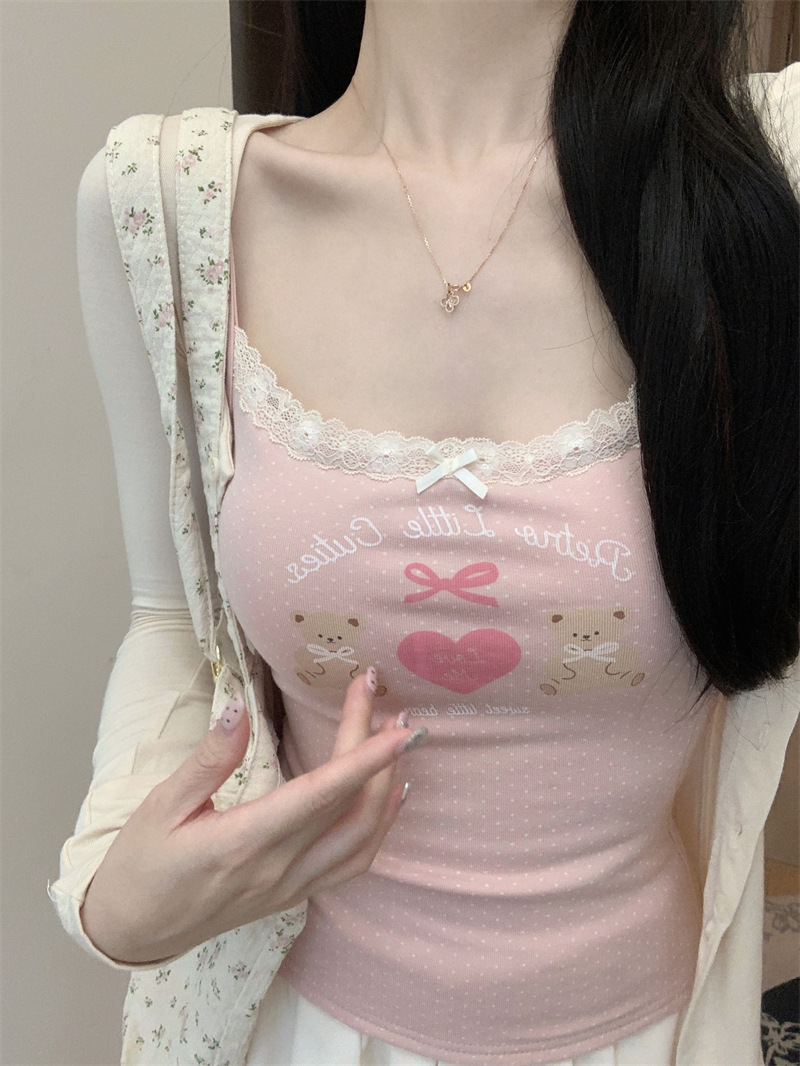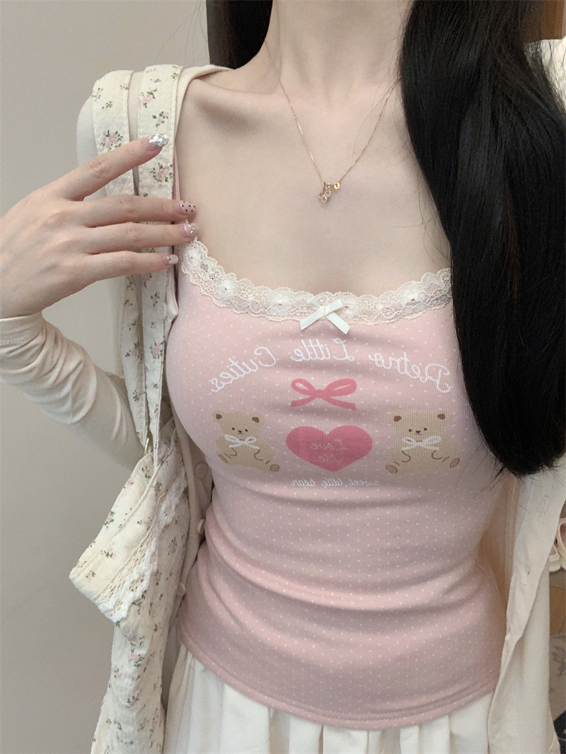 스파이스 소녀 낙서 레이스 활 카미 솔 여성 벨트 가슴 패드 여름 면 민소매 귀여운 최고 여성스토어 가기
