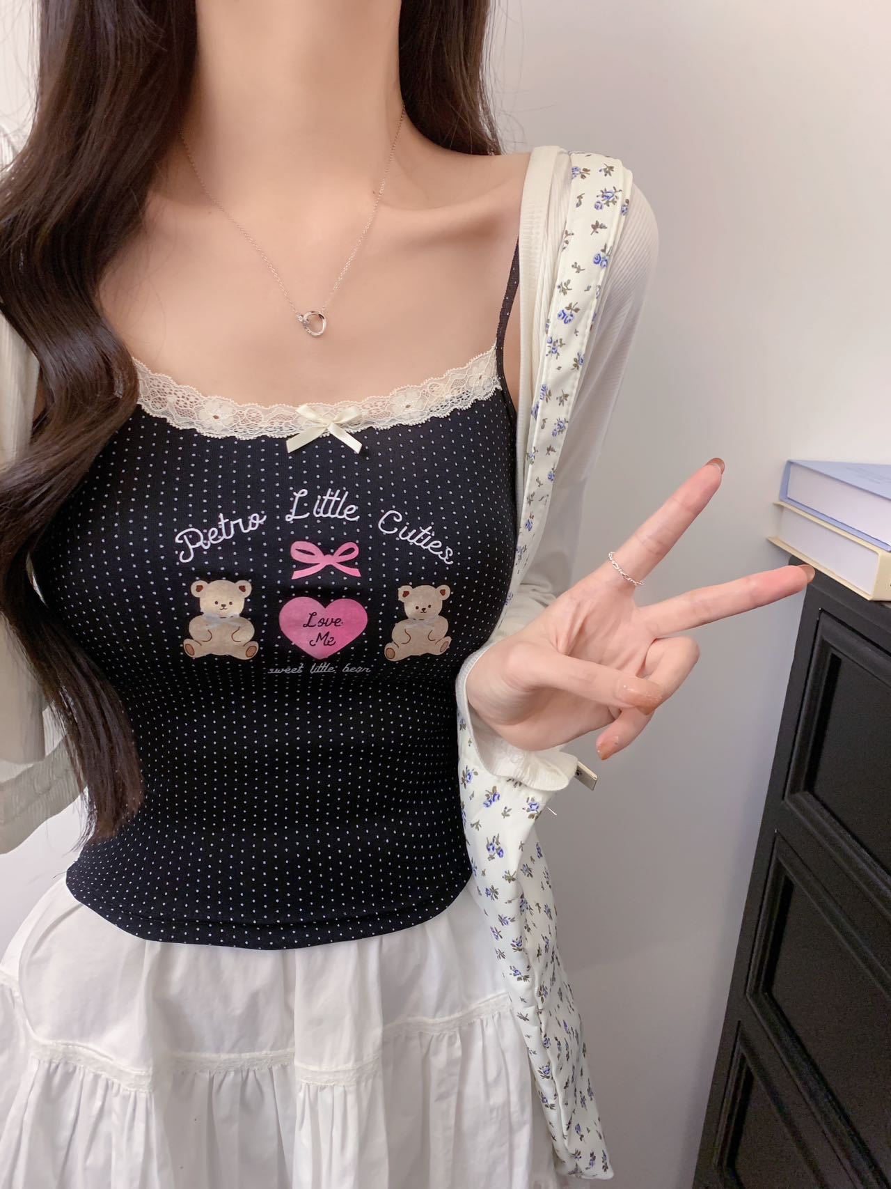스파이스 소녀 낙서 레이스 활 카미 솔 여성 벨트 가슴 패드 여름 면 민소매 귀여운 최고 여성