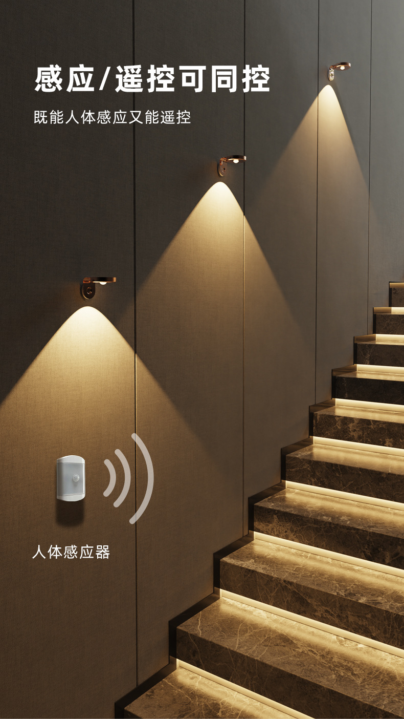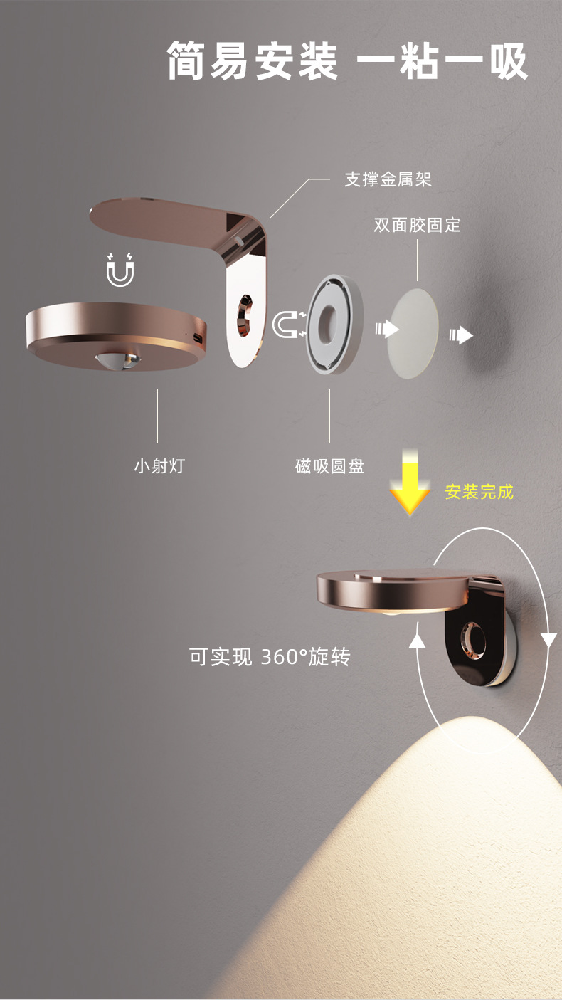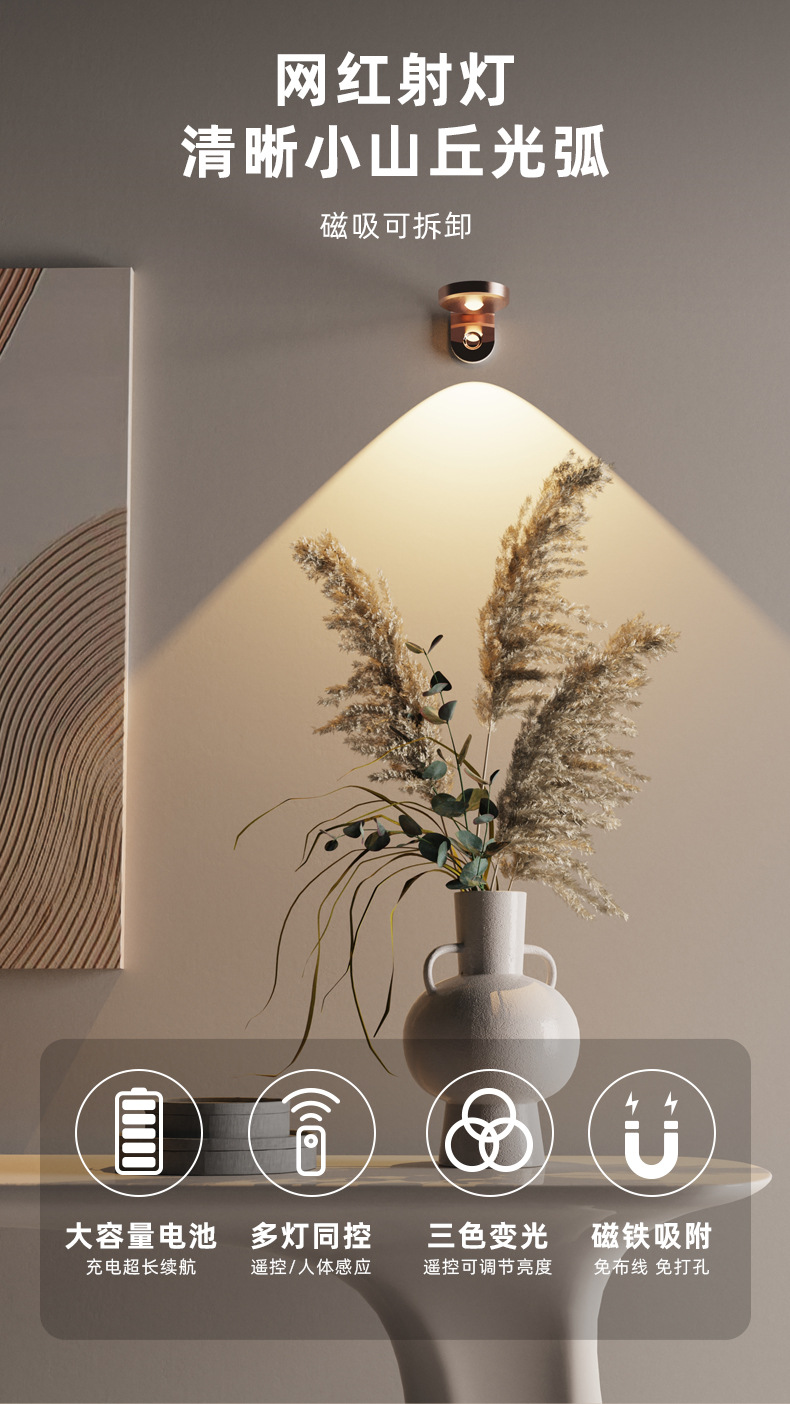 국경 독점 충전식 벽 램프 침실 침실 램프 마그네틱 드로잉 갤러리 램프 복도 구멍없는 야간 조명