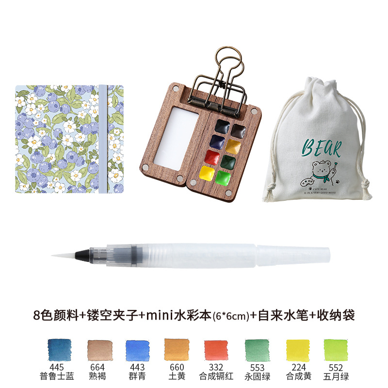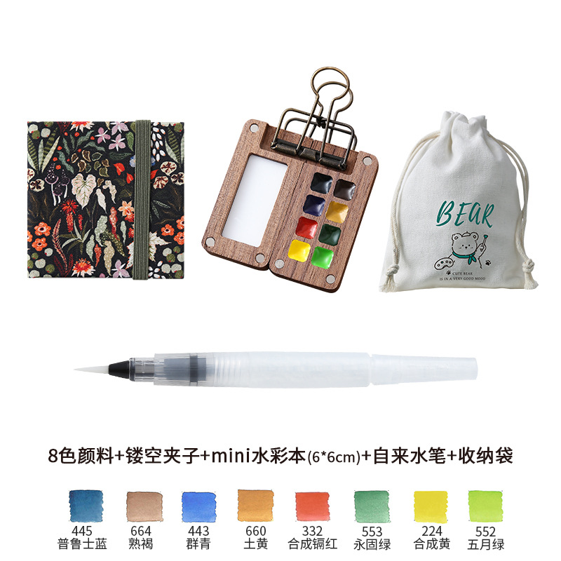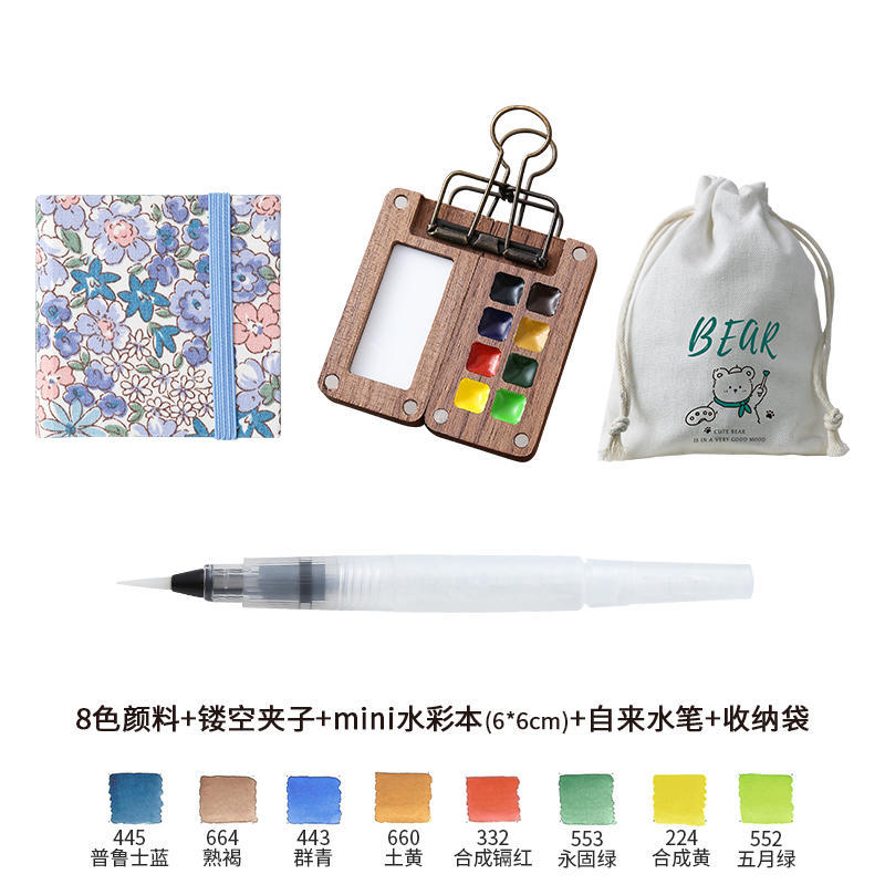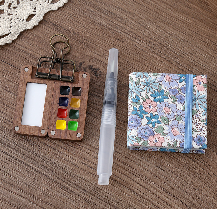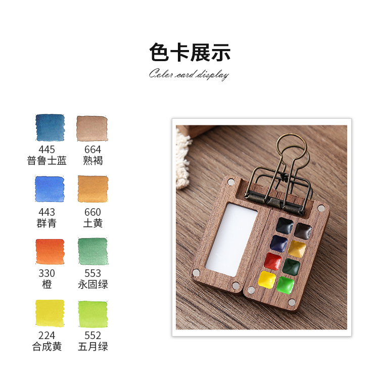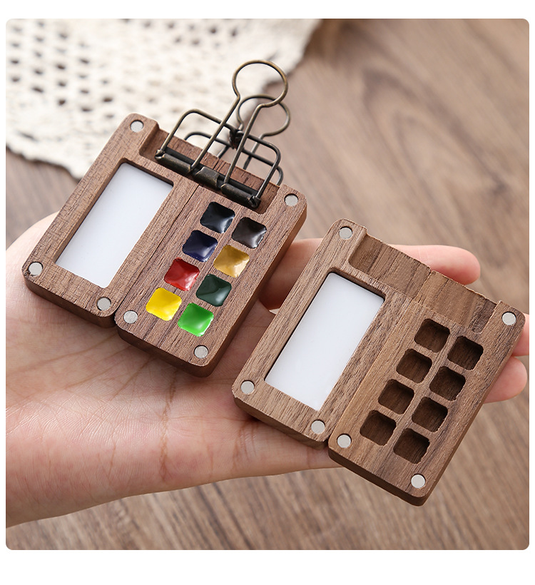 디 홈 미니 호두 팔레트 솔리드 페인트 상자 여행 세트 수채화 포장 8 색 휴대용 스케치