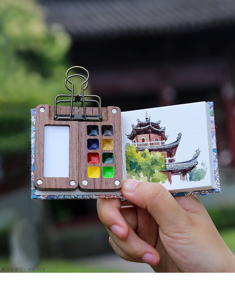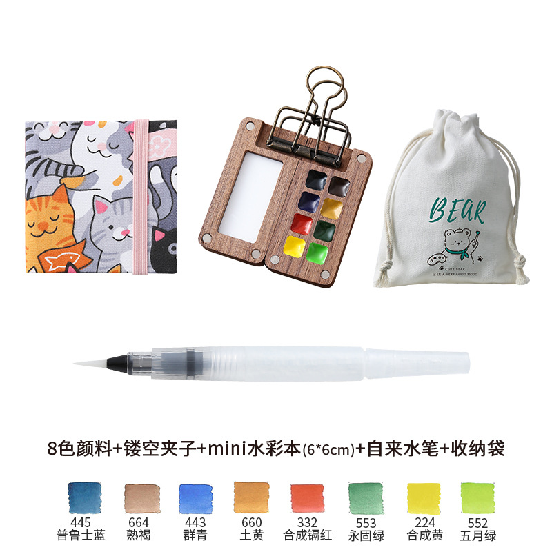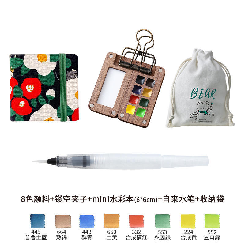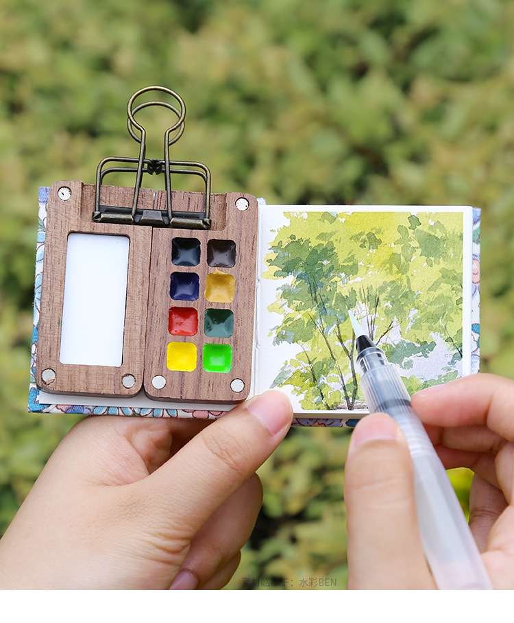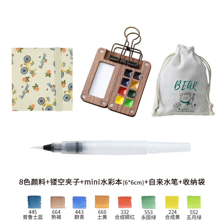 디 홈 미니 호두 팔레트 솔리드 페인트 상자 여행 세트 수채화 포장 8 색 휴대용 스케치