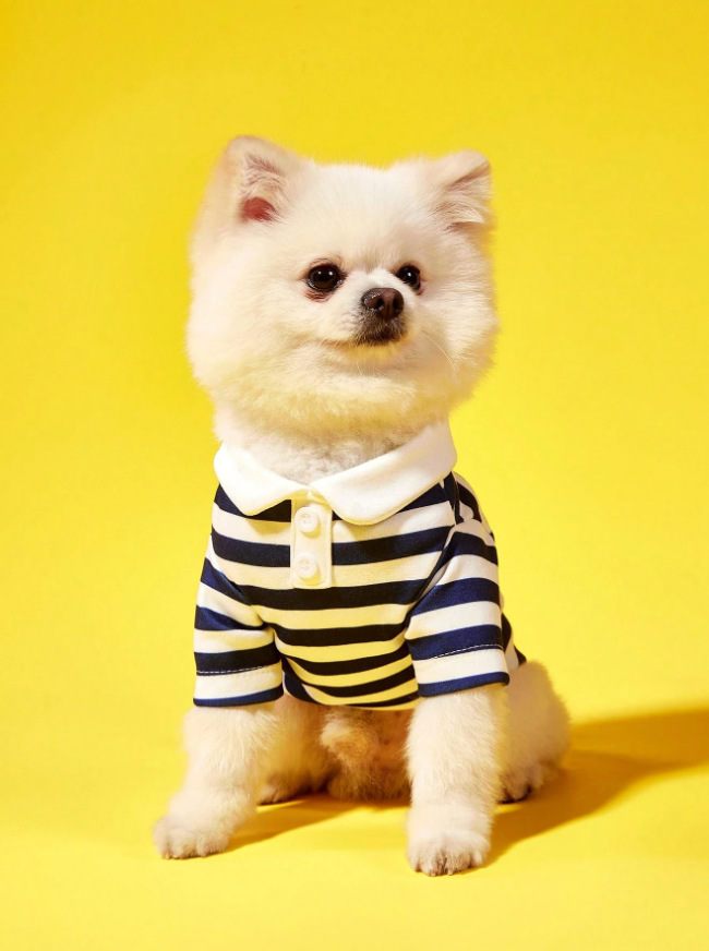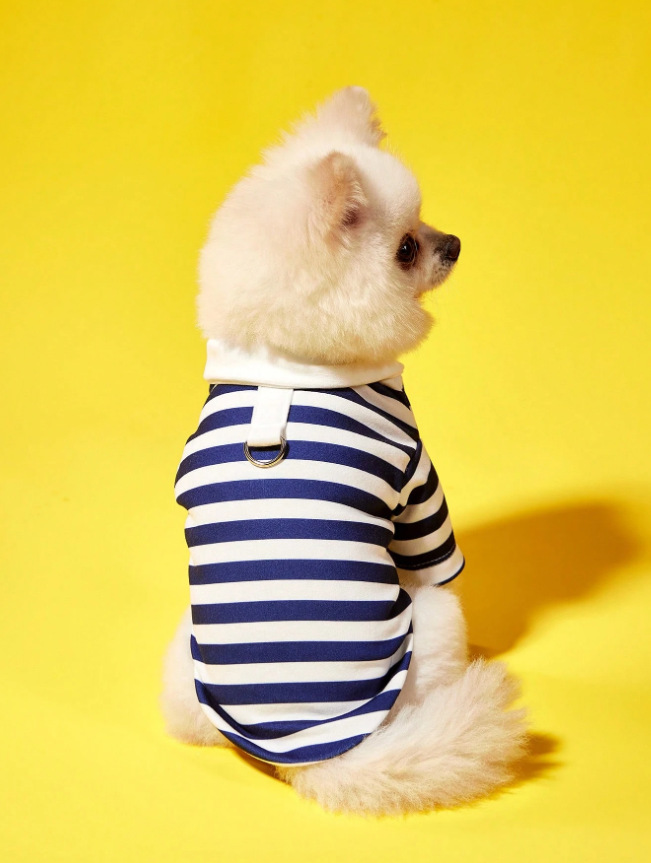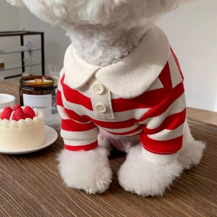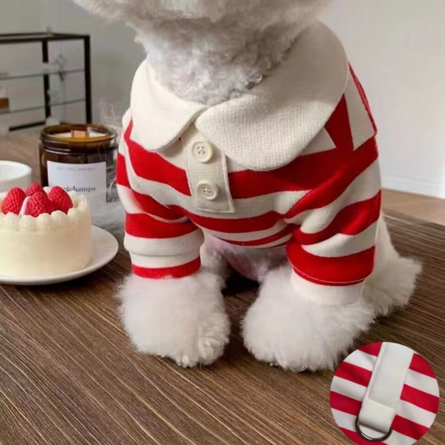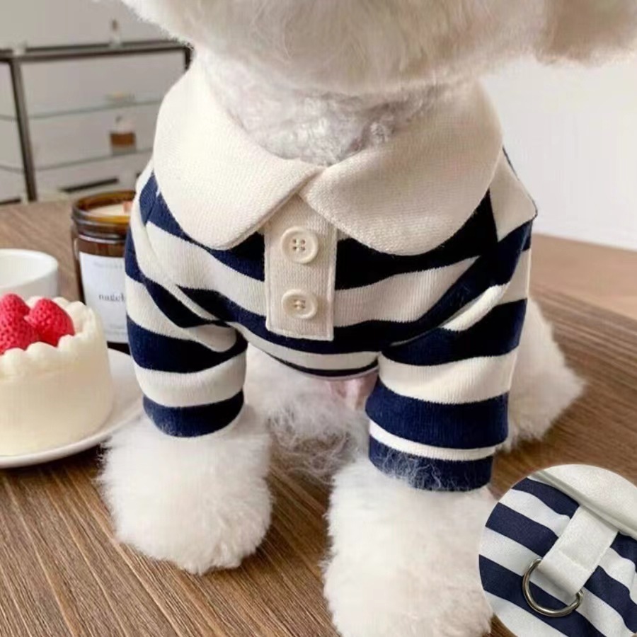해군 애완견 의류 고양이 의류 티셔츠 옷 따뜻한 봄 가을 줄무늬 라운드넥 티셔츠 대형견용스토어 가기