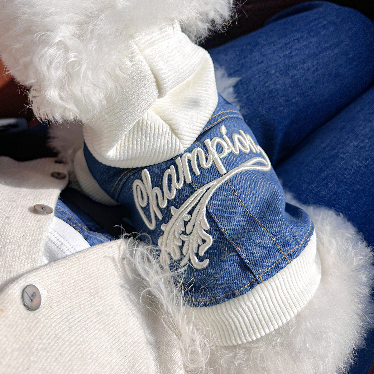 펫서클 애완견 고양이 옷 귀여운 공장제작 봄 가을 캐주얼 데님 재킷 양족복