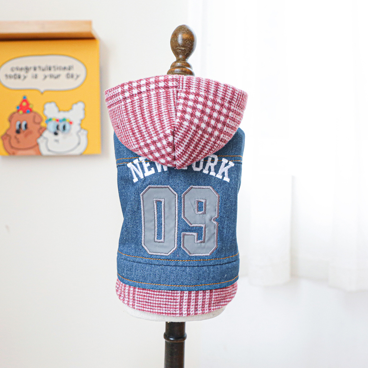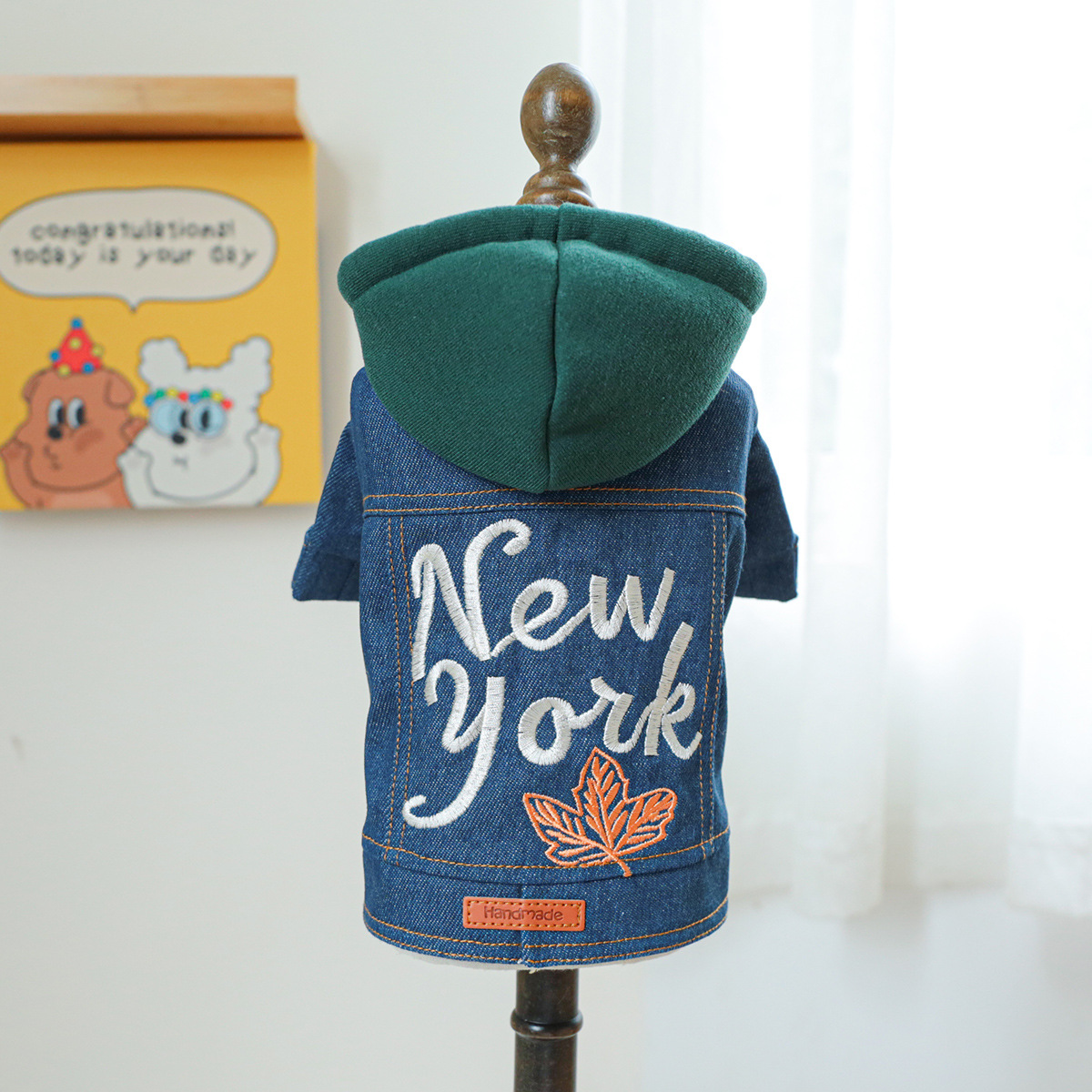 펫서클 애완견 고양이 옷 귀여운 공장제작 봄 가을 캐주얼 데님 재킷 양족복스토어 가기