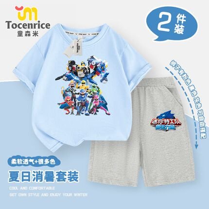 • T001#하늘색 티셔츠+K009#라이트그레이 반바지