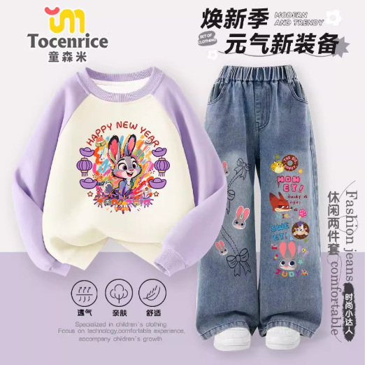 • 912#연한 보라색 스웨트셔츠 + 청바지 정장