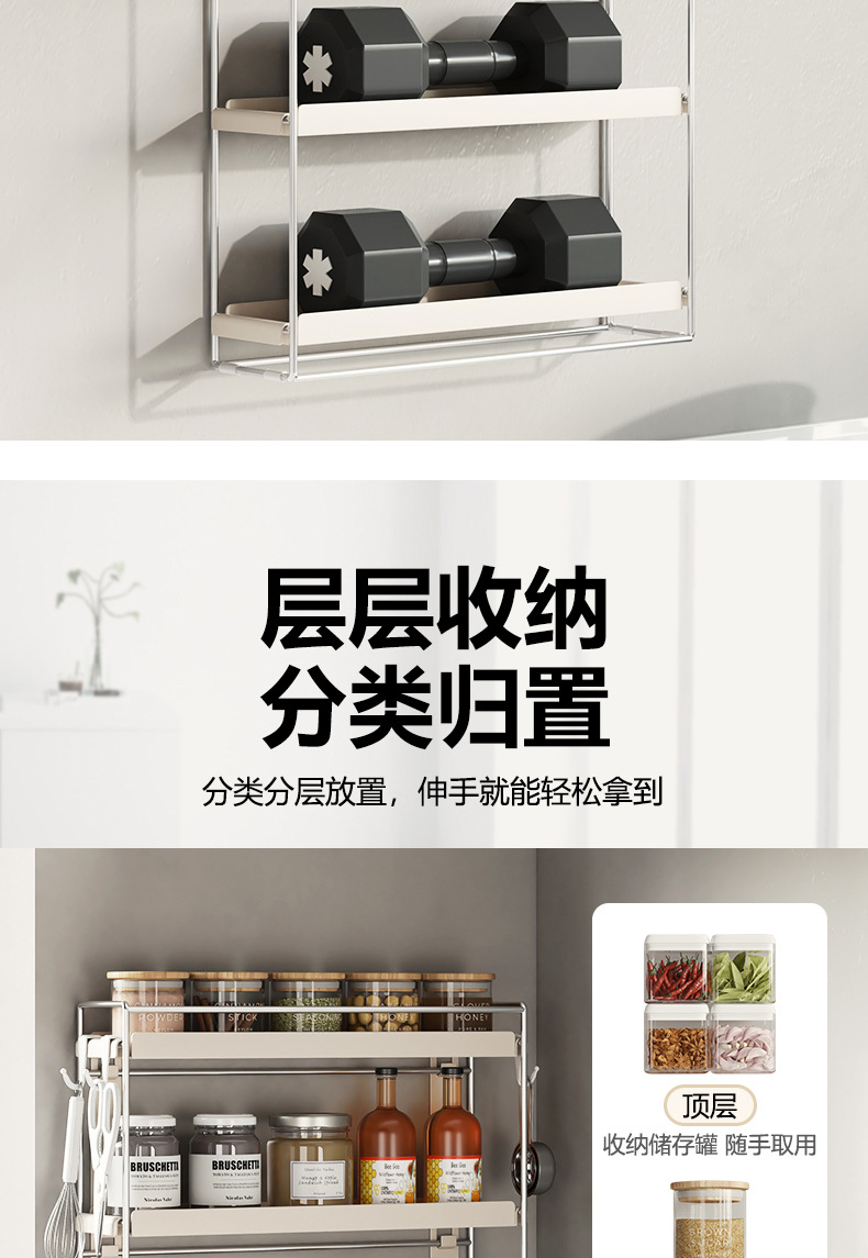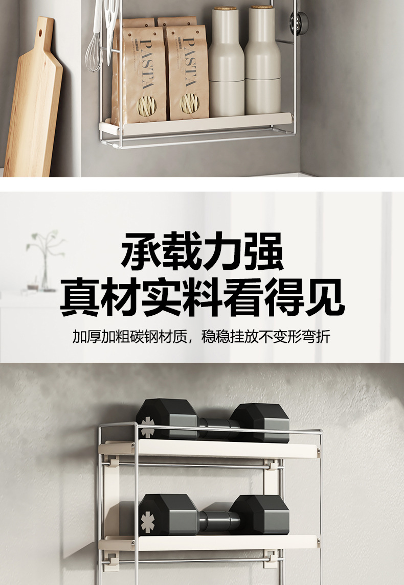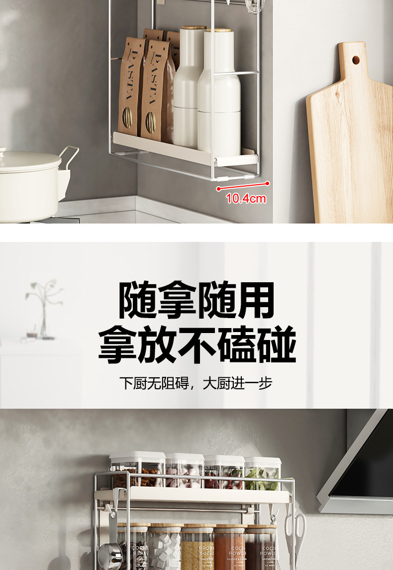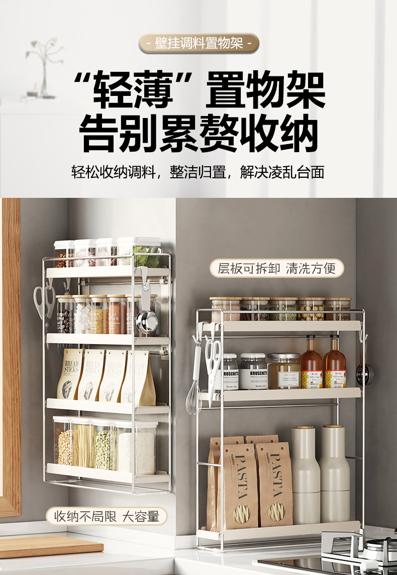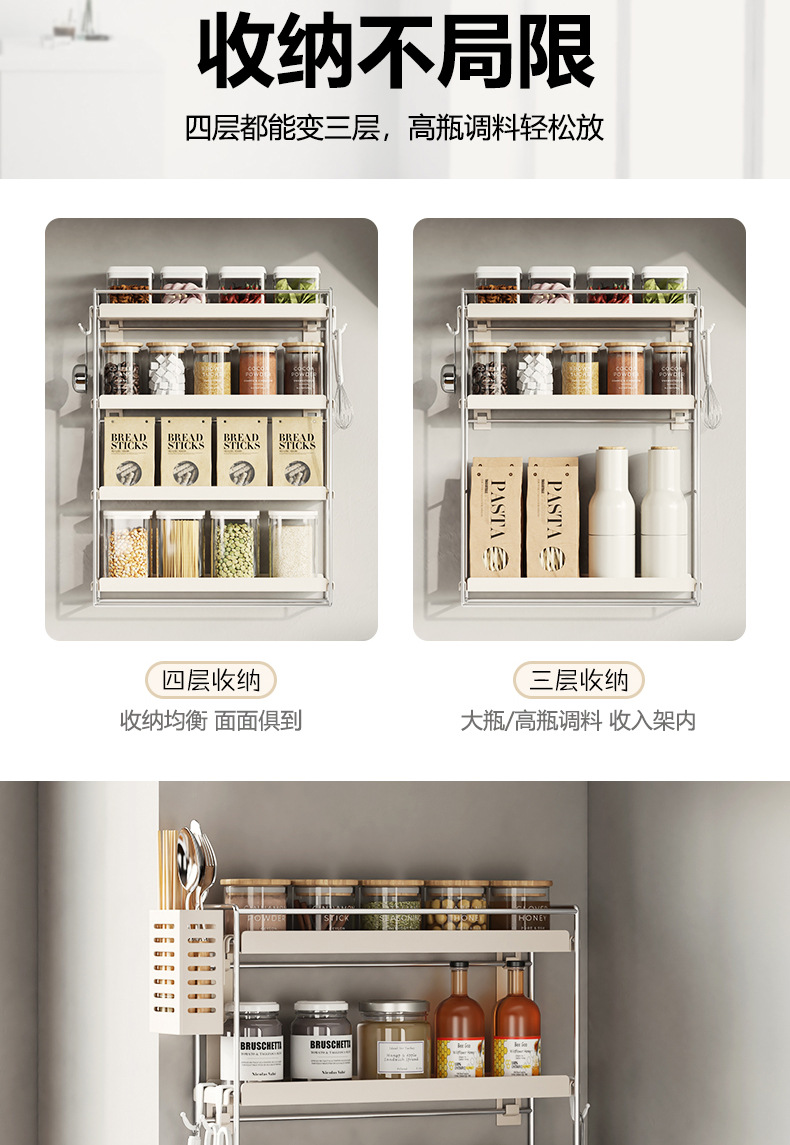 천공되지 않은 벽걸이 형 벽걸이 주방 조정 가능한 냄비 선반 오일, 소금, 소스 및 식초 저장 랙
