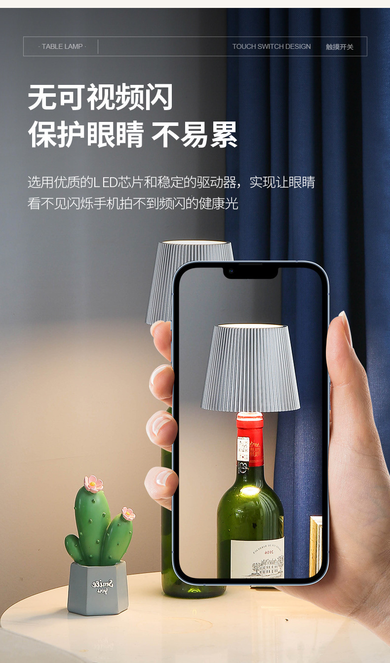 국경 주도 와인 병 책상 램프 RGB 바 깨끗한 바 상감 레스토랑 데스크탑 장식 야간 조명 뾰족한 와인 바 램프