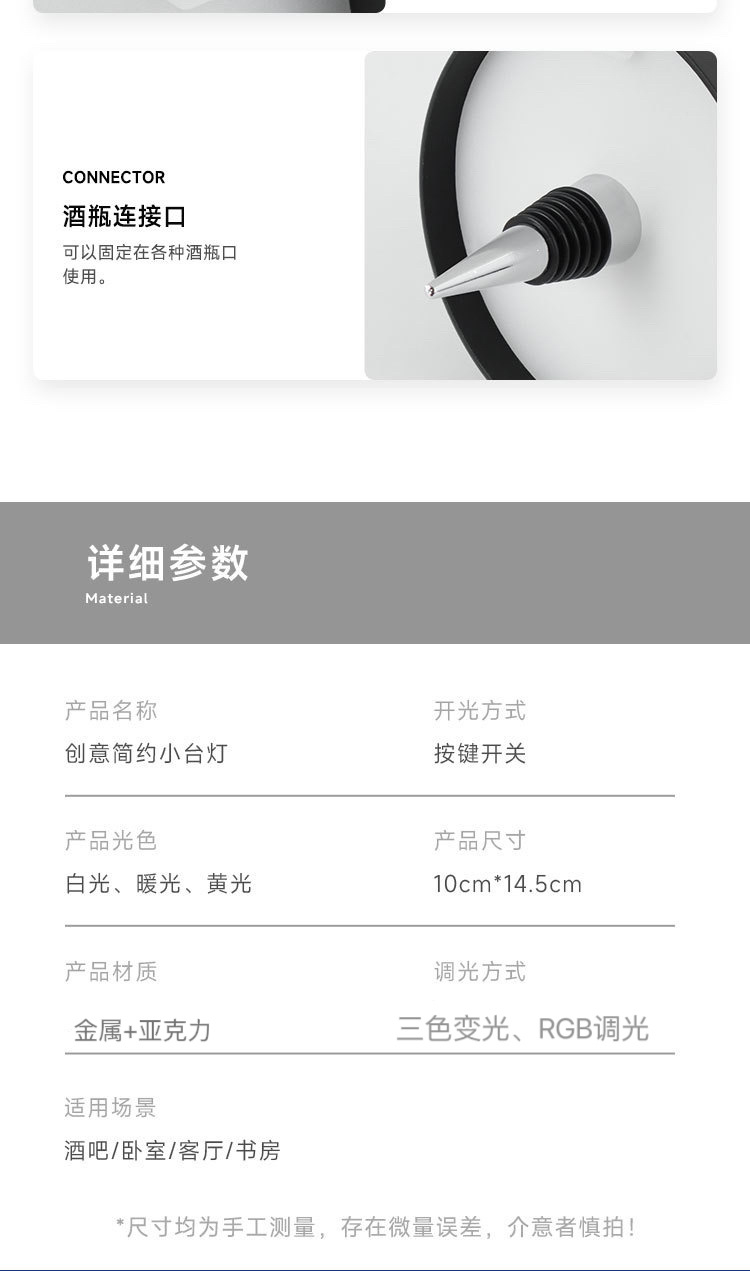 국경 주도 와인 병 책상 램프 RGB 바 깨끗한 바 상감 레스토랑 데스크탑 장식 야간 조명 뾰족한 와인 바 램프스토어 가기
