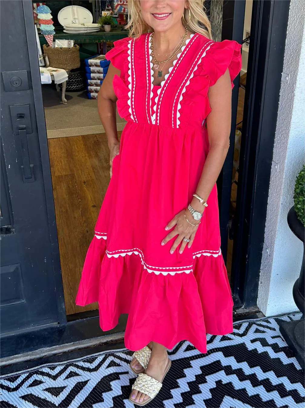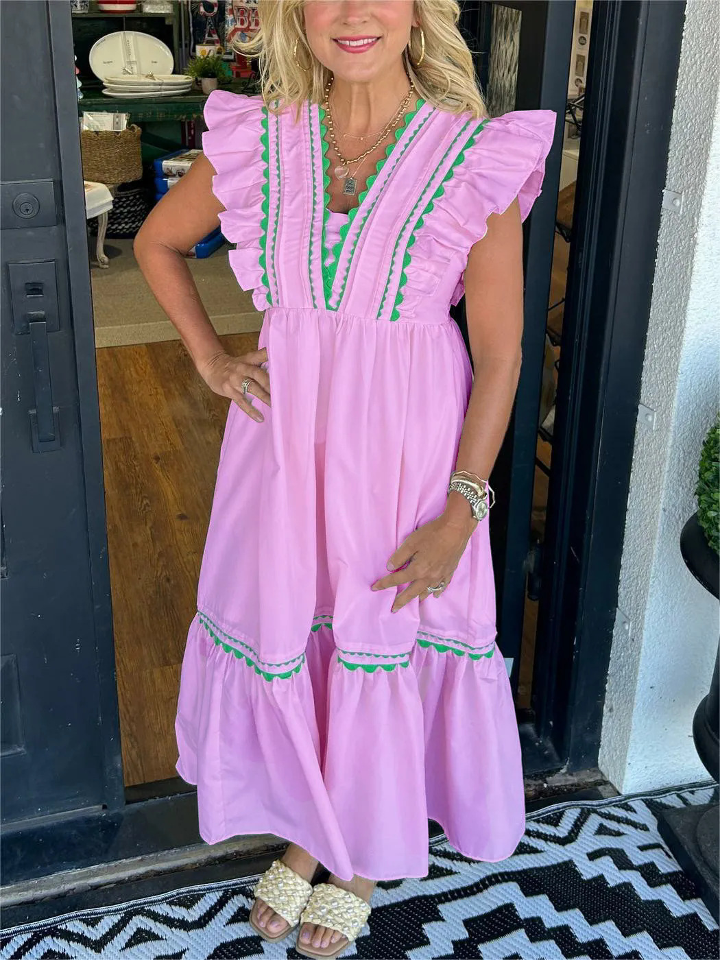 2024 유럽과 미국의 레이스 스티칭 러플 원피스 긴 원피스