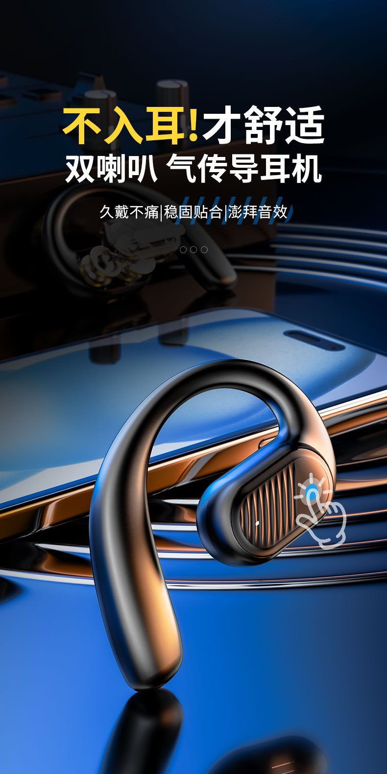 일방적 듀얼 스피커 귀 장착형 블루투스 헤드셋, 비인이어, 고화질 통화, 비즈니스 스포츠 블루투스 헤드셋, 대용량스토어 가기